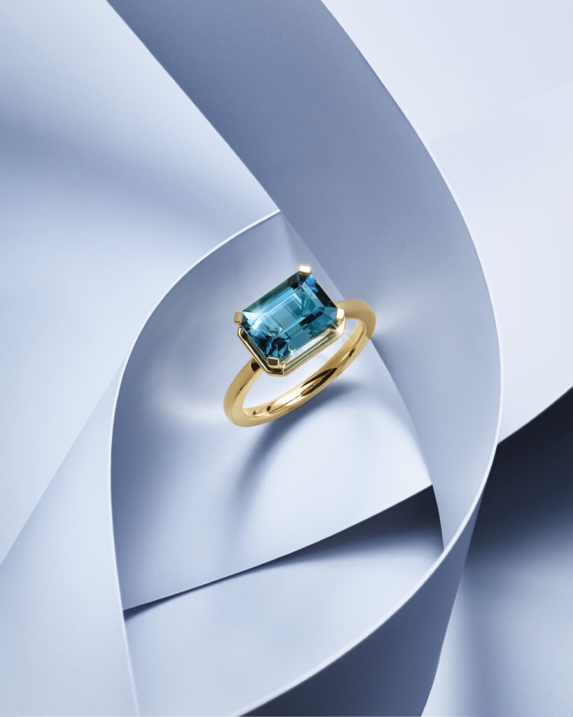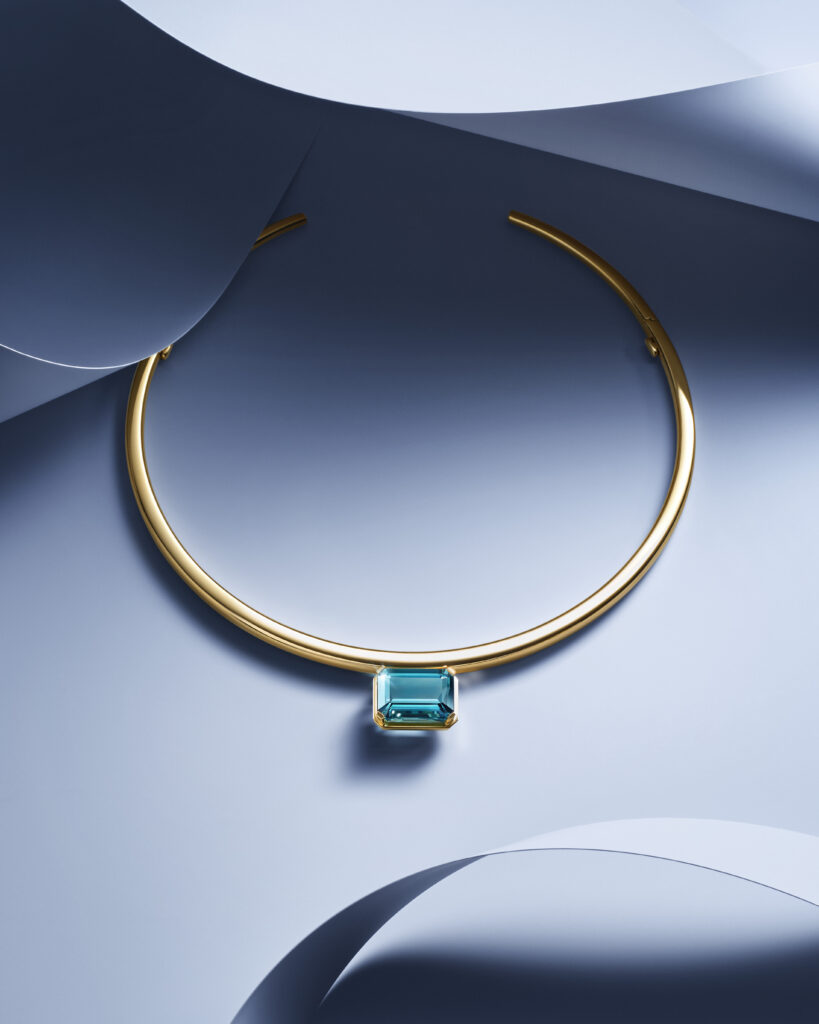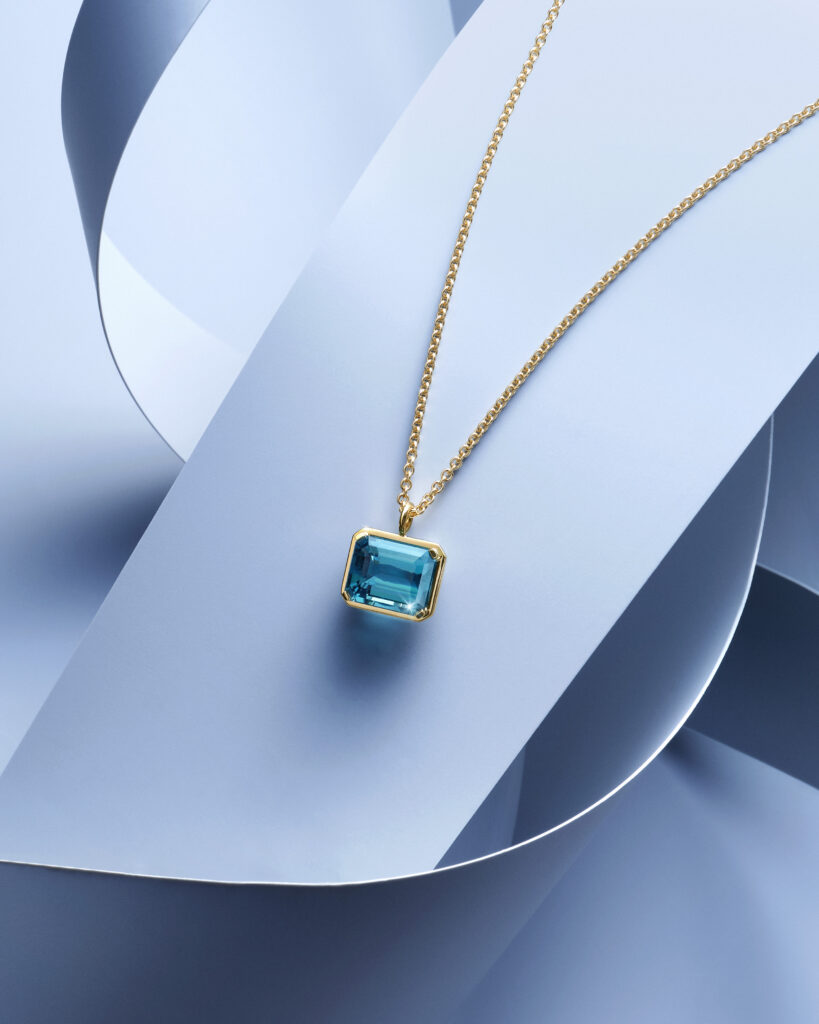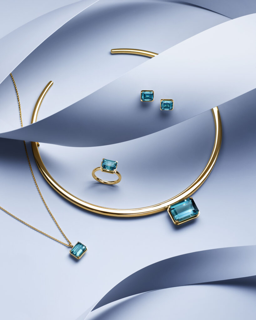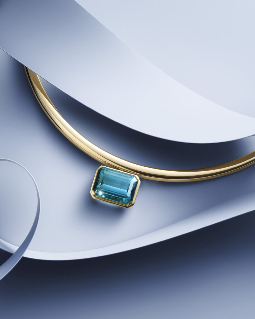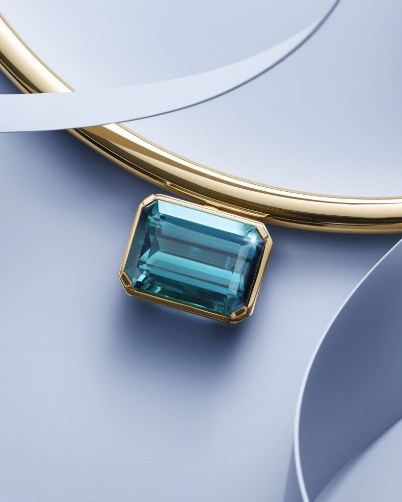 La collection The Blue Path se distingue par un design épuré, fidèle à l’esthétique signature de Bucherer Fine Jewellery. Qu’il s’agisse de boucles d’oreilles, d’une bague, d’un collier pendentif ou d’un collier unique, chaque création met en lumière une indicolite taillée en émeraude, montée sur de l’or jaune recyclé 18 carats. Ce mariage subtil entre la pierre précieuse et la monture dorée souligne la modernité intemporelle des bijoux tout en leur conférant un éclat raffiné. La pièce maîtresse de la collection est un collier orné d’une indicolite unique de 16,29 carats, un chef-d’œuvre de simplicité et d’élégance, qui capture l’essence même de cette pierre captivante.
