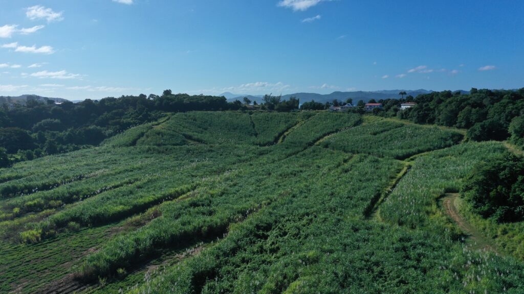 Sur les hauteurs de Fond Basile, en bord de mer, la chaleur intense et l’exposition aux vents favorisent la culture de cannes concentrées en arômes. Le rhum blanc issu de cette parcelle se distingue par sa douceur éclatante, une véritable signature du terroir aride.
