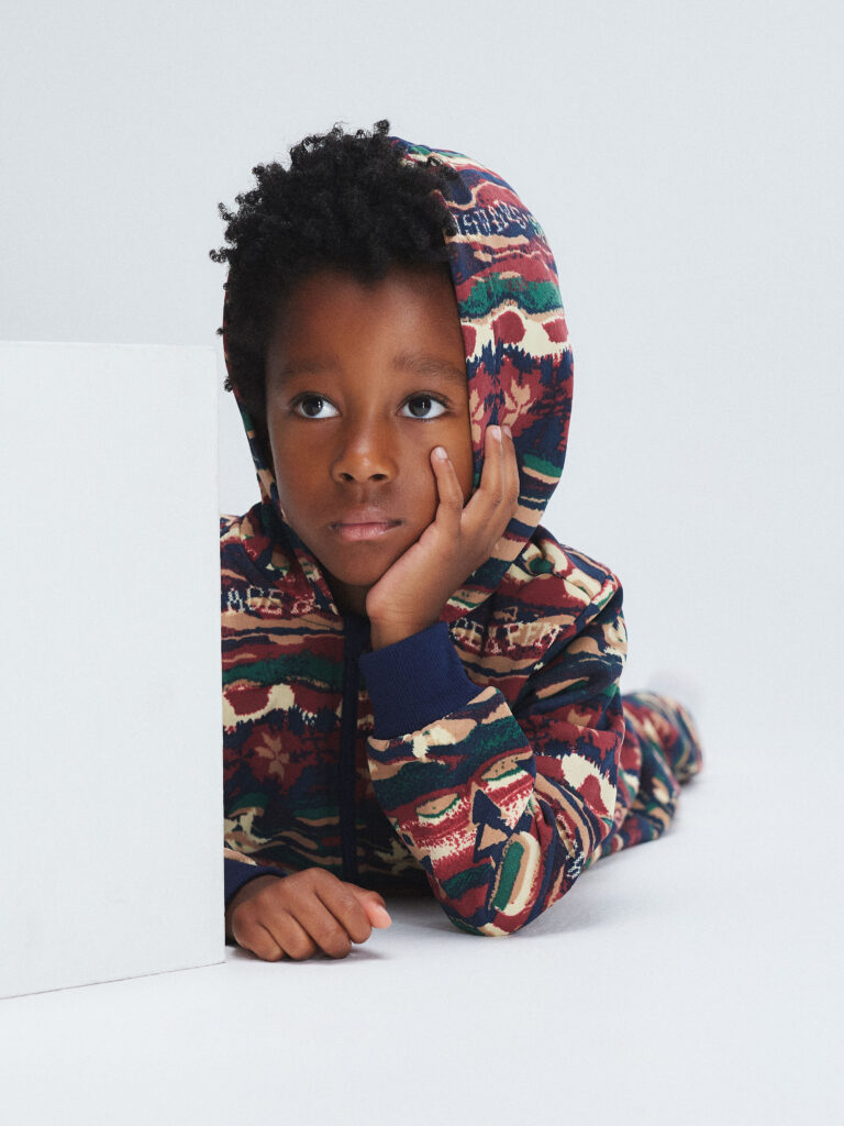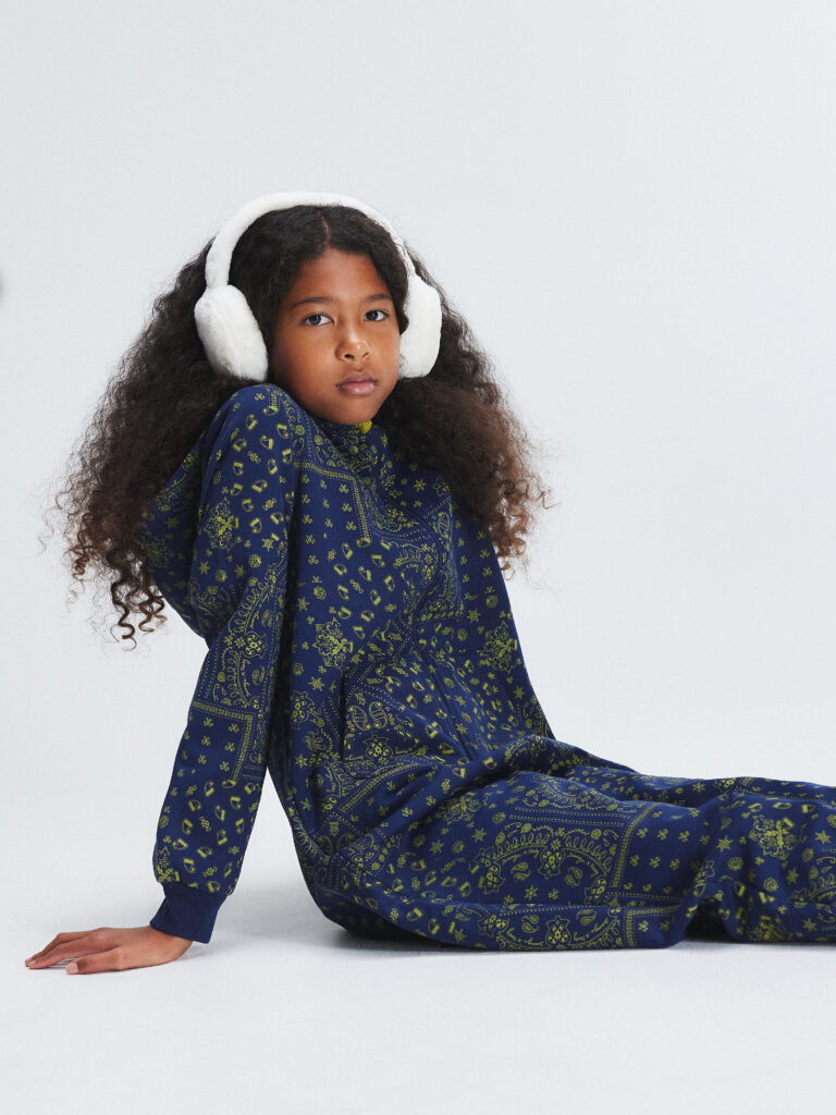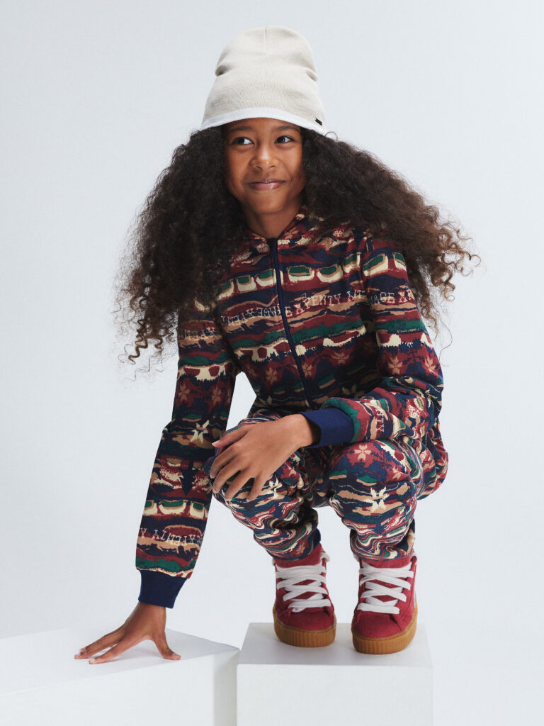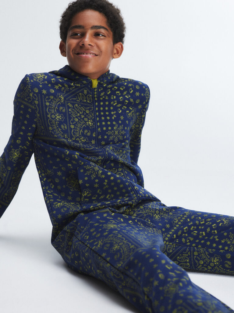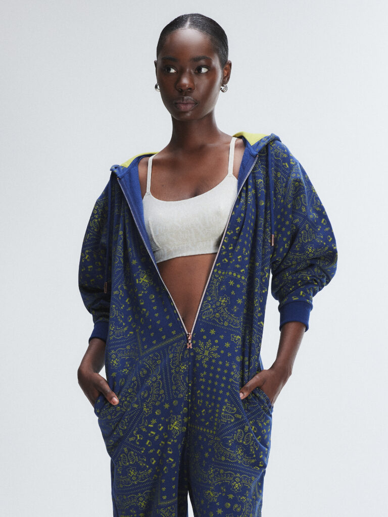 Pour la première fois, Savage X Fenty lance une collection de onesies familiaux Forever Savage, disponibles dans des imprimés festifs inspirés des fêtes. Les tailles incluent des options pour les parents, les enfants, les bébés et les tout-petits. Rihanna elle-même a été photographiée portant le Forever Savage Hooded Onesie en imprimé Navy Blue/Sage Day Green Holly Daze, avec RZA et Riot dans les versions pour enfants et bébés.