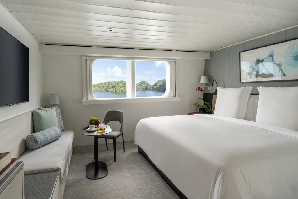 Outre les activités marines, le Four Seasons Explorer permet des excursions sur les îles, telles que des randonnées dans la jungle, l’observation d’oiseaux rares, ou encore des visites culturelles riches en histoire. Les clients peuvent se rendre à Peleliu, une île marquée par la Seconde Guerre mondiale, et découvrir les monolithes de Badrulchau, mystérieux piliers de basalte datant de plus de 2 000 ans. Ces lieux historiques et naturels témoignent de la richesse culturelle de Palau, habitée depuis 4 000 ans.