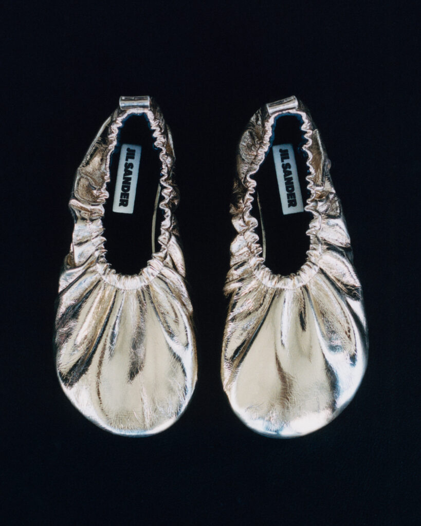 La collection Holiday met en lumière des essentiels intemporels tels que le pull léger en cachemire à col en V, décliné dans une palette de couleurs subtiles et universelles. Du côté des chaussures, les baskets Moon en noir et blanc apportent une touche de modernité discrète, tandis que les mules en maille métallisée et les ballerines plates en cuir métallisé capturent un esprit festif sans ostentation. Ces modèles reflètent l’équilibre parfait entre fonctionnalité et allure, idéal pour les fêtes.