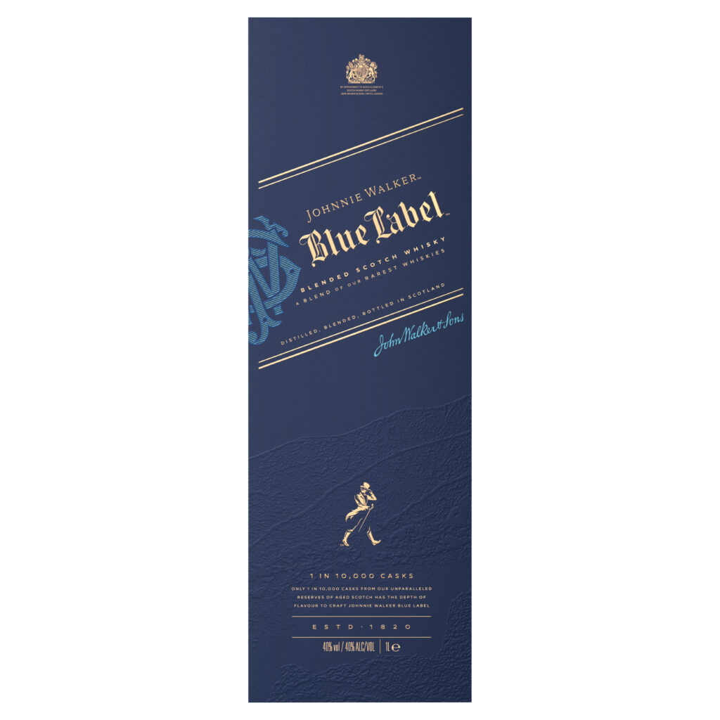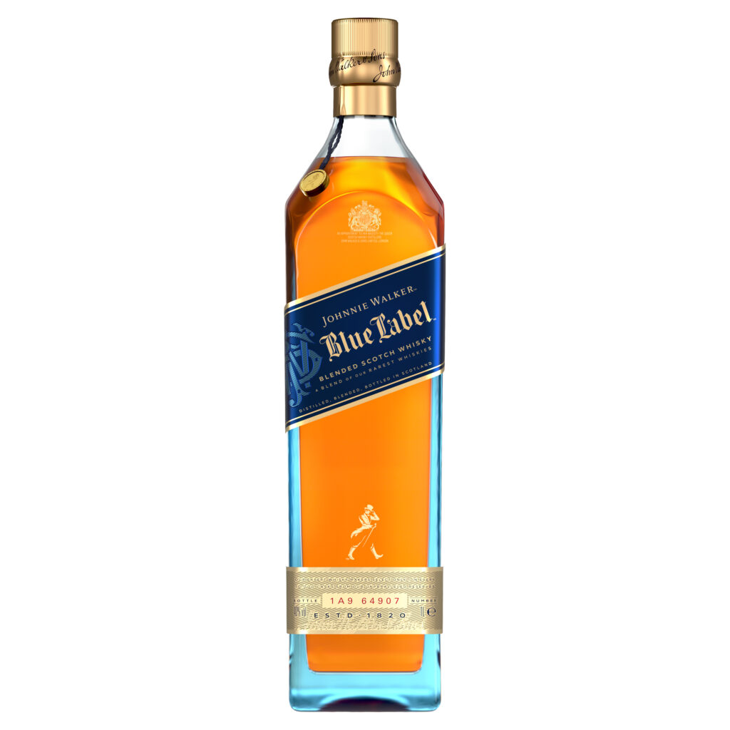 Chaque bouteille de Blue Label, numérotée, est nichée dans un flacon de verre bleu-vert emblématique, signe de la rareté et de l’exclusivité de ce whisky d’exception.