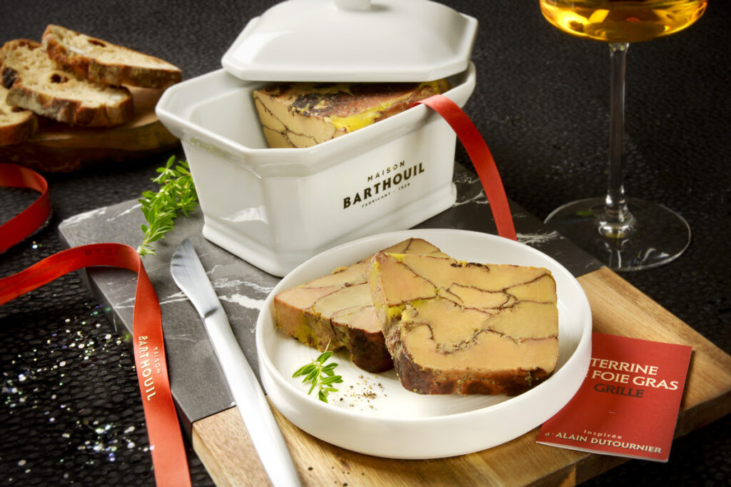 - Terrine de foie gras grillé inspirée d’Alain Dutournier : Conçue en collaboration avec le chef étoilé Alain Dutournier, cette terrine associe des arômes de fruits secs et de noisettes grillées. Disponible en terrine de 350 g à 122€, elle est le choix idéal pour les tables d’exception.