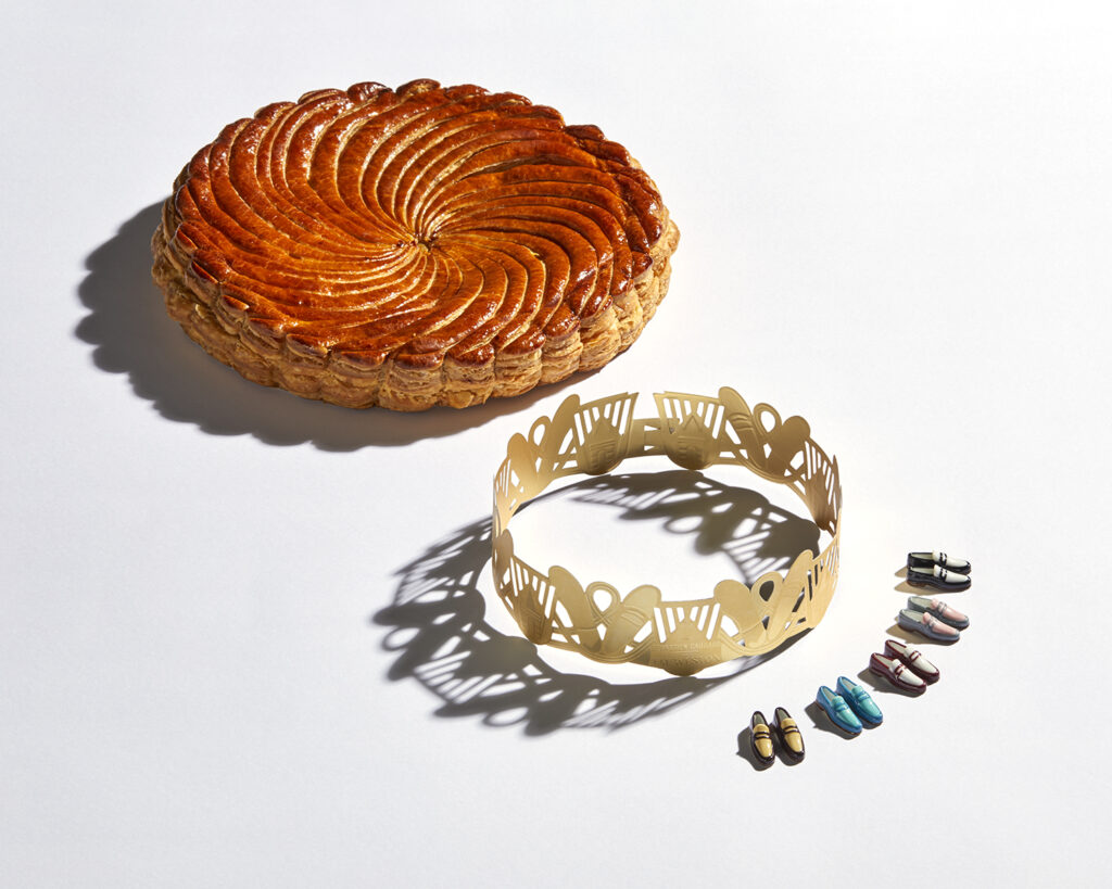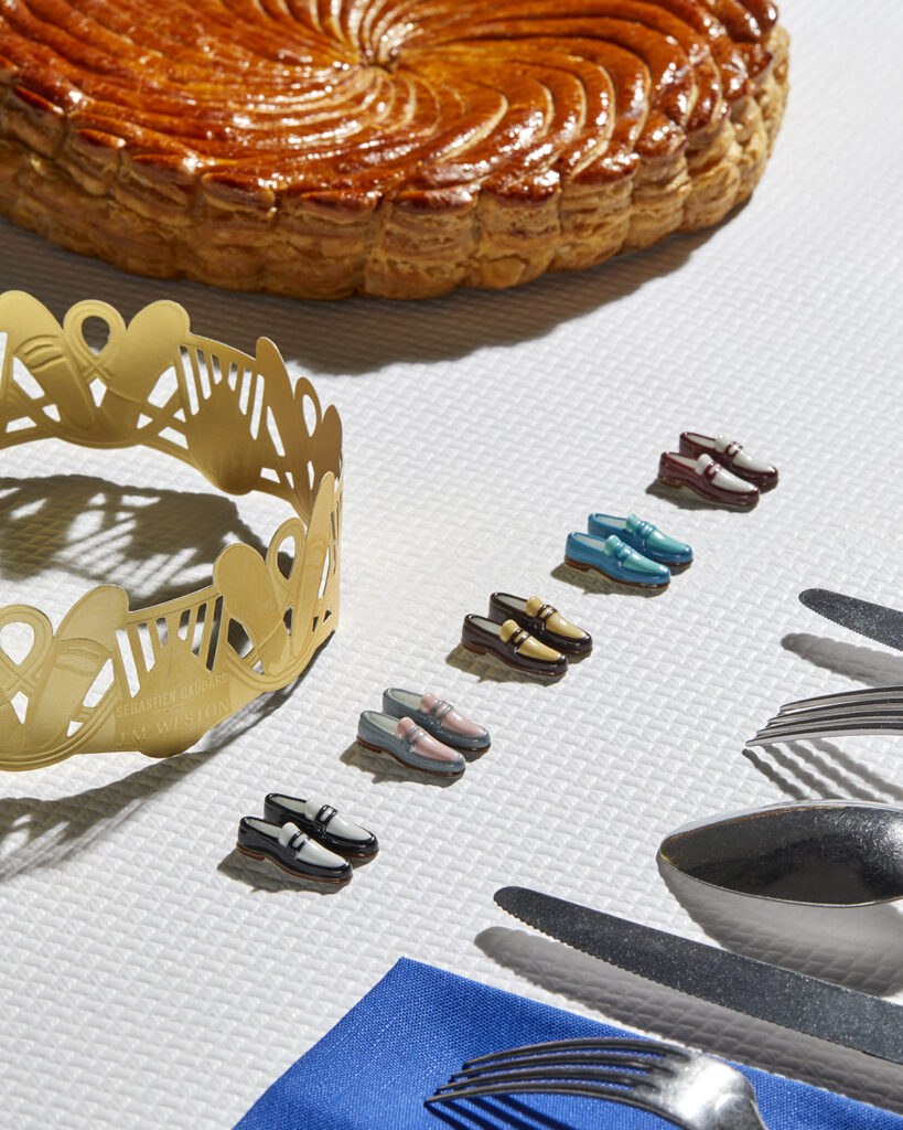Dans la galette de cette année se cache une fève exclusive à l’effigie du mocassin 180. Référence absolue du savoir-faire Weston, ce mocassin, fabriqué en 180 étapes de précision, devient pour l’occasion un précieux trésor à découvrir dans la galette. En hommage à ce partenariat, Sébastien Gaudard a également conçu une couronne inspirée des symboles de J.M. Weston, arborant l’Arc de Triomphe et le fameux mocassin 180. Cette couronne dorée transforme chaque dégustation en un moment royal pour les heureux gourmands.