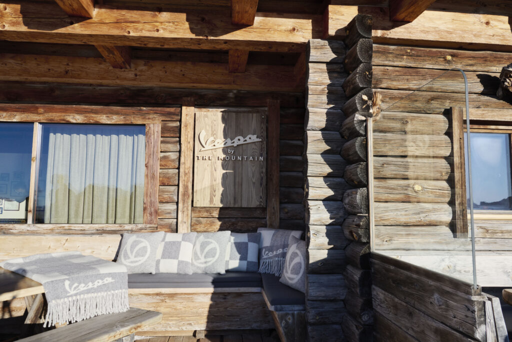 Pour l’occasion, le chalet arbore un nouveau look hivernal inspiré de l’univers Vespa, avec des touches exclusives : couvertures, coussins, et même une enseigne artisanale en bois. Ces éléments, disponibles en ligne, célèbrent le mariage du style alpin et de l’élégance italienne.
