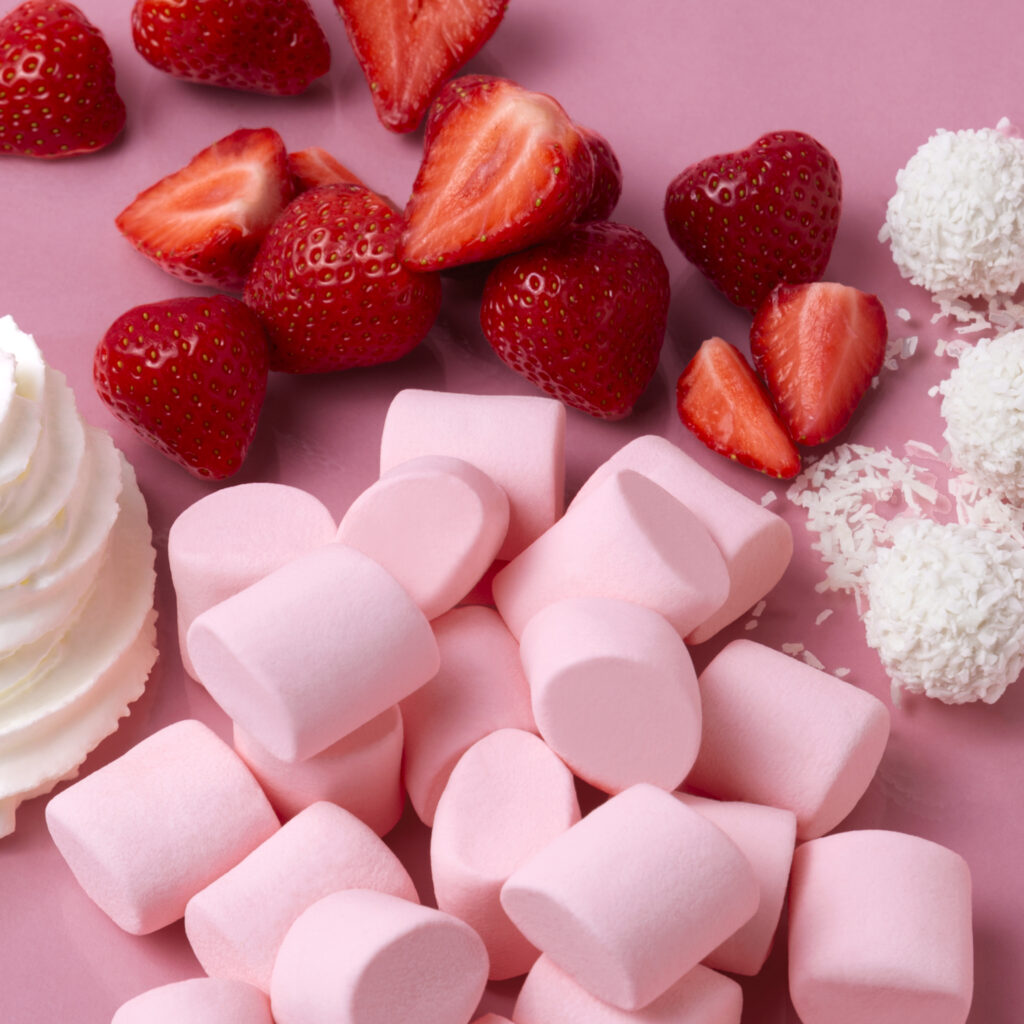 - Notes de cœur : Eau de fleur d’oranger, guimauve rose, fraise, flocons de noix de coco.