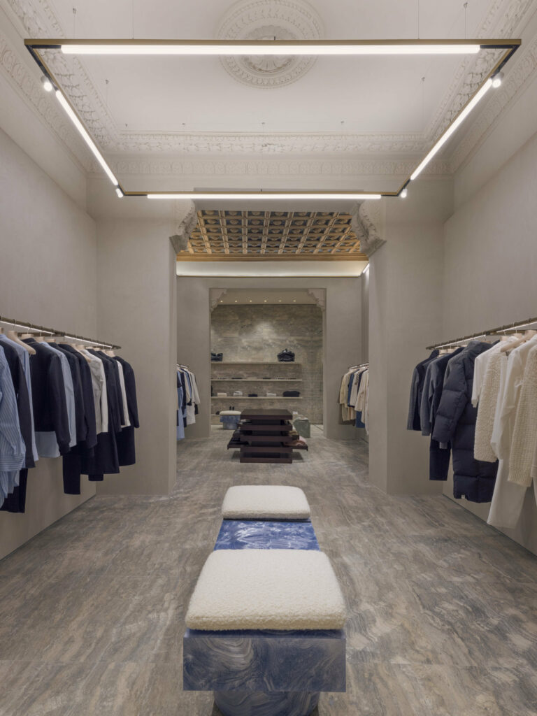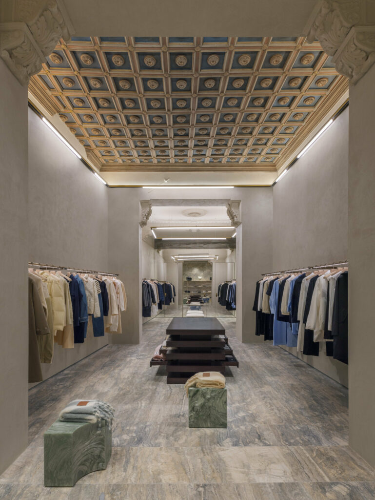 Dans un jeu subtil de contrastes et d’harmonies, Jil Sander dévoile son nouvel écrin florentin au cœur de la prestigieuse Via de’ Tornabuoni. Situé au 47R/49R, ce magasin incarne une vision où l’artisanat contemporain rencontre le faste de l’histoire, sous la direction créative de Lucie et Luke Meier. À travers ce lieu, le duo de créateurs offre une expérience immersive, intime et minutieuse, invitant les amateurs de la maison à redécouvrir l’esthétique Jil Sander.