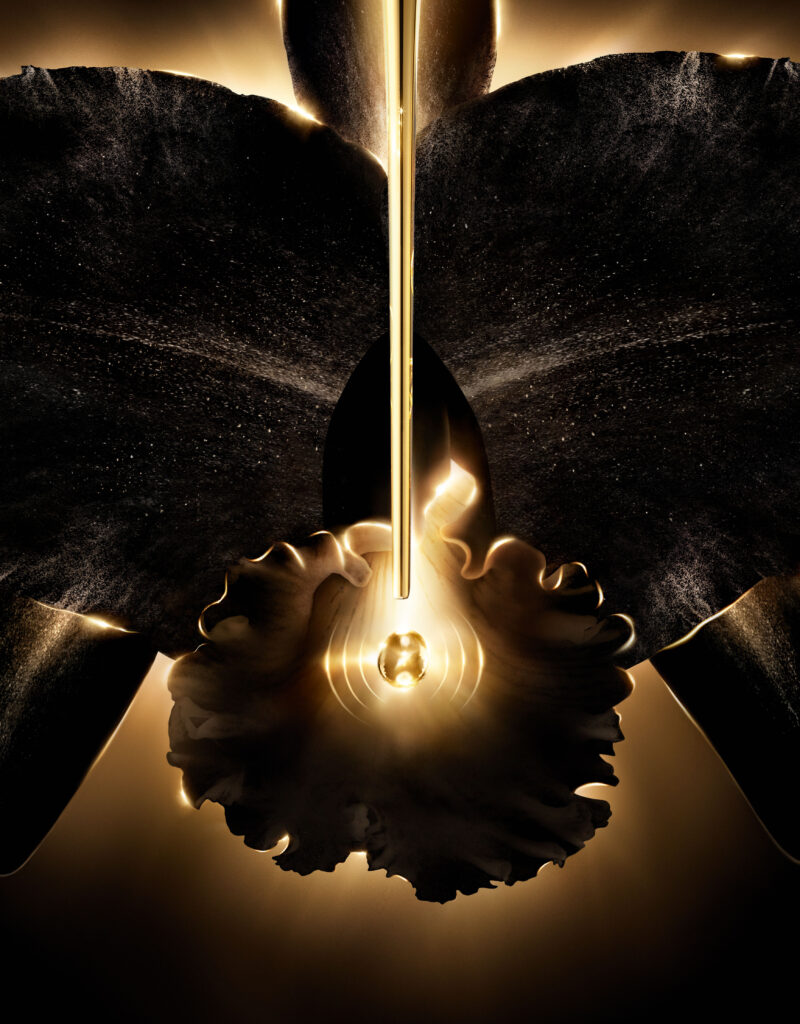 Originaire des Andes péruviennes, l’orchidée noire est une espèce d’une rareté extrême, représentant seulement 0,1 % des orchidées existantes. Elle prospère dans des conditions uniques, entre ombre et lumière, dans des zones humides et élevées. Avec ses pétales ébène et sa vitalité exceptionnelle, la Black Orchid incarne l’évolution et la survie. Ses adaptations extraordinaires lui permettent de florir sans nécessiter une abondante lumière, une rareté précieuse qui a inspiré Guerlain à consacrer un centre de recherche dédié : l’Orchidarium®.