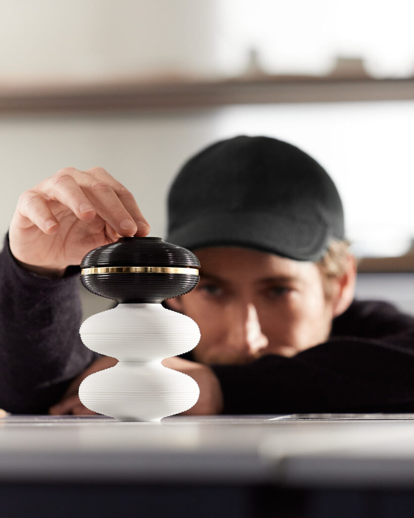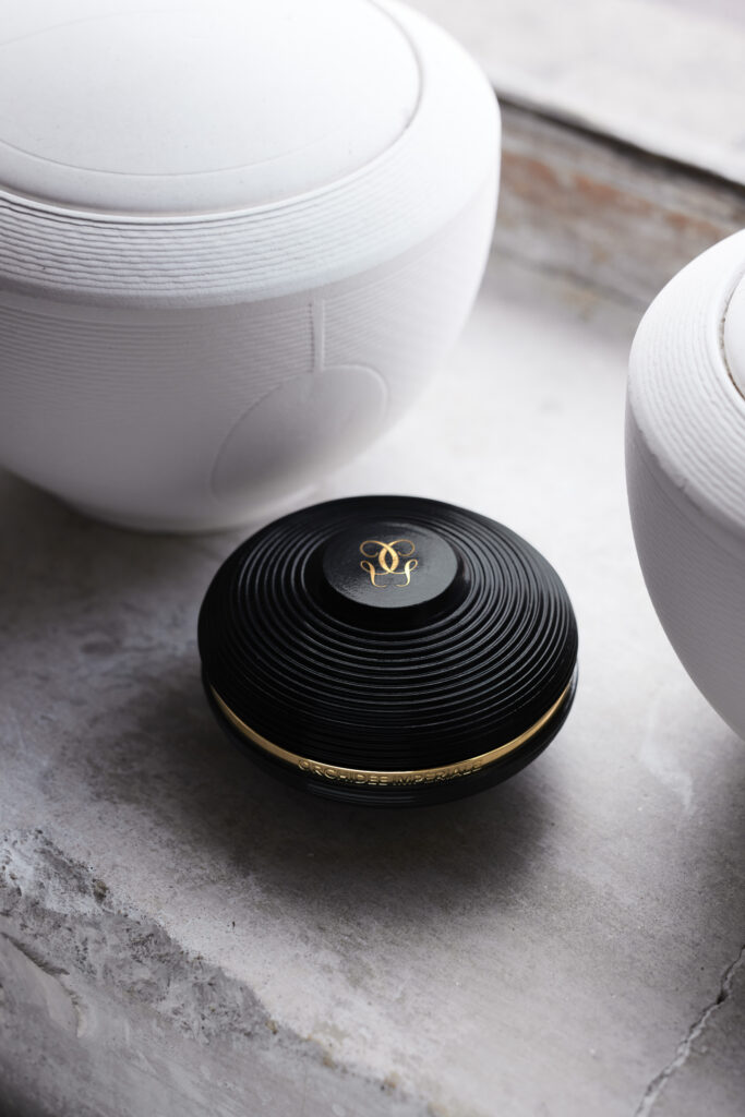 Pour incarner cette alliance d’art et de science, la Maison Guerlain a fait appel à Ora Ïto, designer visionnaire, qui a réinventé le pot emblématique d’Orchidée Impériale Black. Inspiré par la forme et la longévité de l’orchidée noire, le pot de cette édition spéciale arbore des lignes en relief, sublimées par une laque noire mate. En collaboration avec la Maison Bernardaud, chaque pot est façonné en porcelaine, reflétant un savoir-faire artisanal et une technologie avant-gardiste, grâce à des procédés développés spécifiquement pour Guerlain.