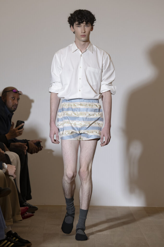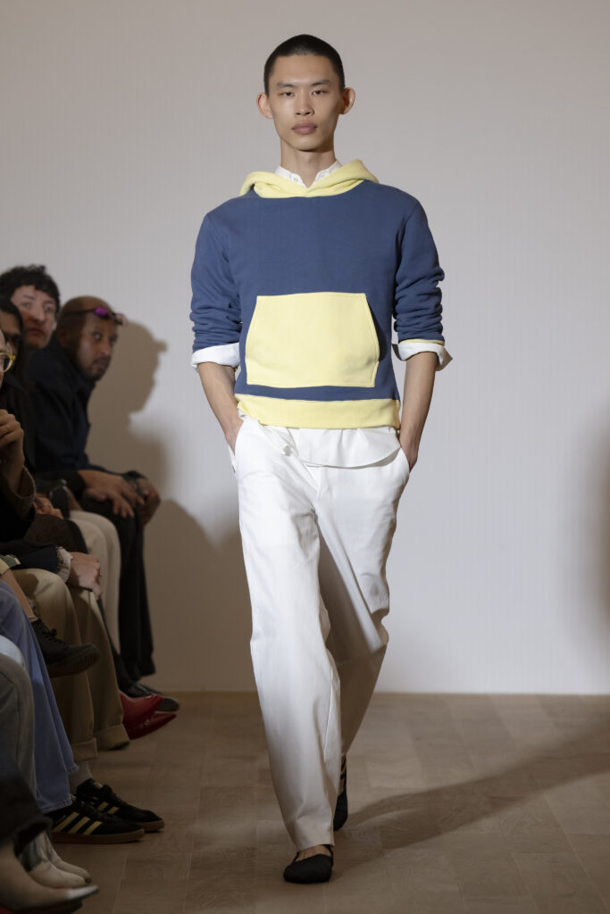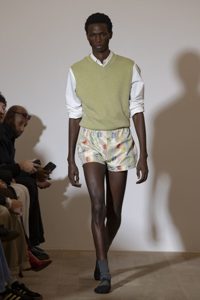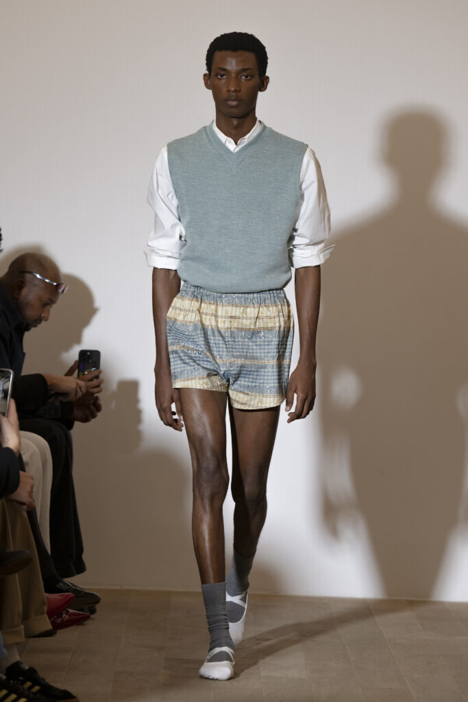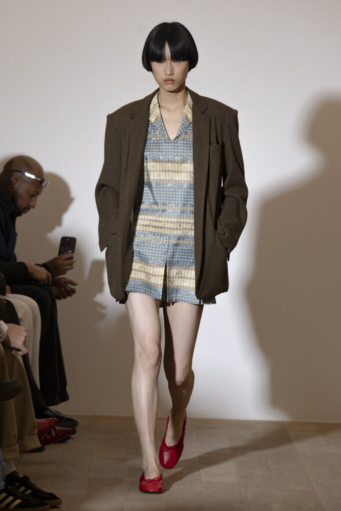 Après plusieurs années d’absence, cette collection marque le premier défilé parisien de Shan Huq depuis 2017. Depuis ses débuts à la New York Fashion Week en 2015, le designer autodidacte, désormais basé à Paris, s’est imposé comme une figure emblématique grâce à sa capacité à combiner spontanéité et sophistication.