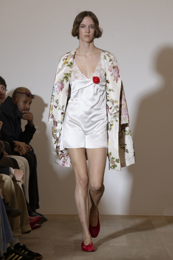 La collection Printemps/Été 2025 de Shan Huq, présentée à Paris, explore l’intersection entre les éléments jugés traditionnellement innocents et la force qu’ils incarnent. Dentelle, pastels, fleurs et lingerie, autant de symboles associés à une esthétique féminine perçue comme fragile, sont ici réinterprétés pour révéler leur puissance intrinsèque. Dans une époque où les codes vestimentaires masculins dominent, Shan Huq propose un regard neuf sur la radicalité d’un style purement féminin.