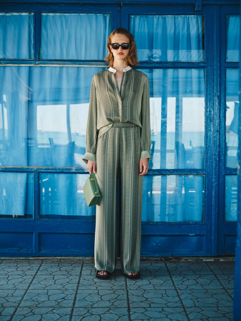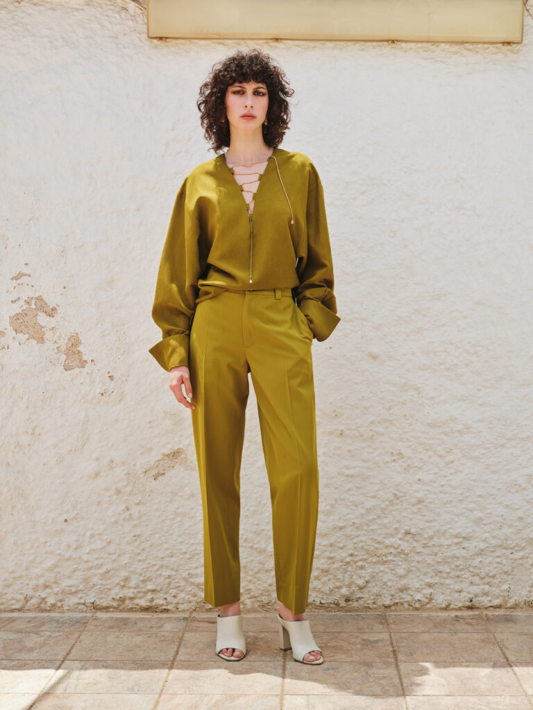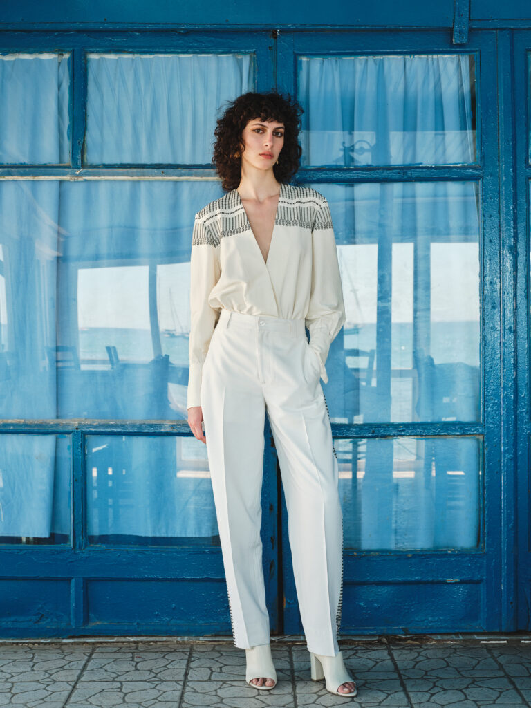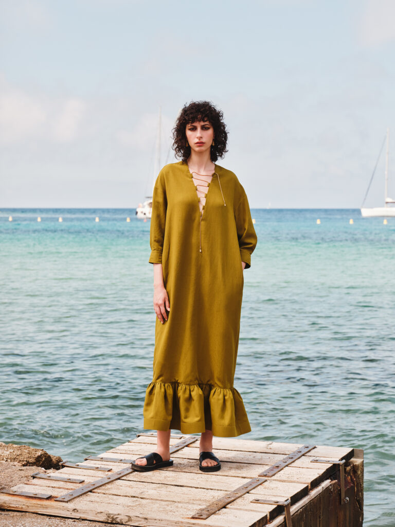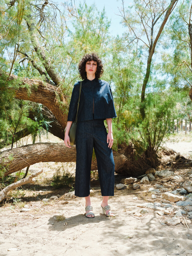 Schwab a conçu des silhouettes qui évoquent l’ombre apaisante des arbres et l’équilibre des jardins méditerranéens. Les coupes fluides et les détails minimalistes reflètent la beauté brute de ces paysages, mêlant tradition et modernité. Cette approche met en avant un style de vie méditerranéen sobre et authentique, où chaque pièce raconte l’histoire d’un lieu où le passé et la nature perdurent.