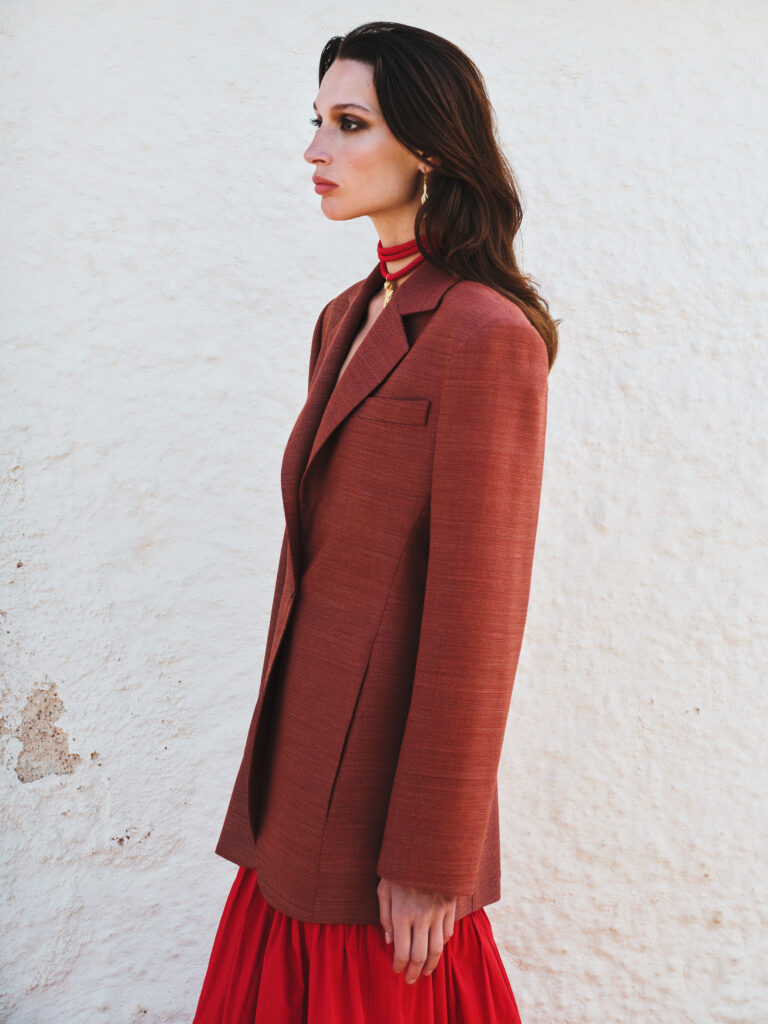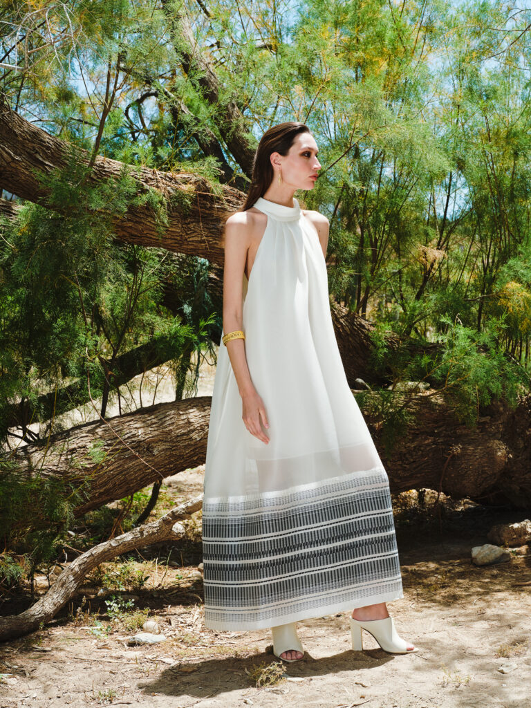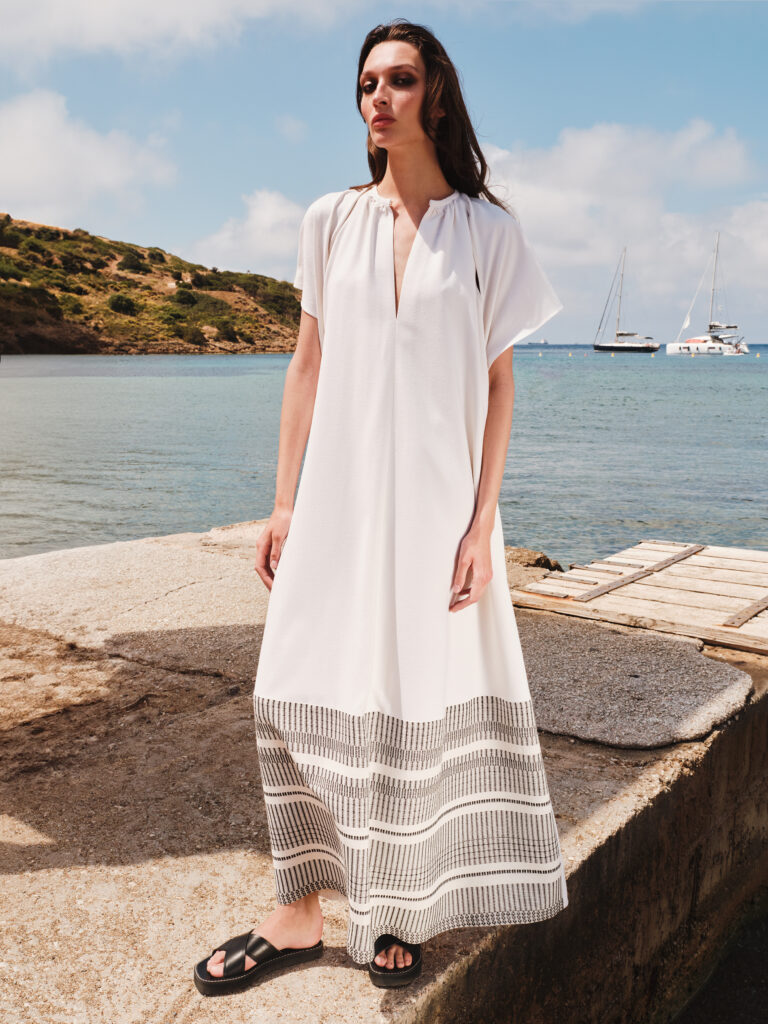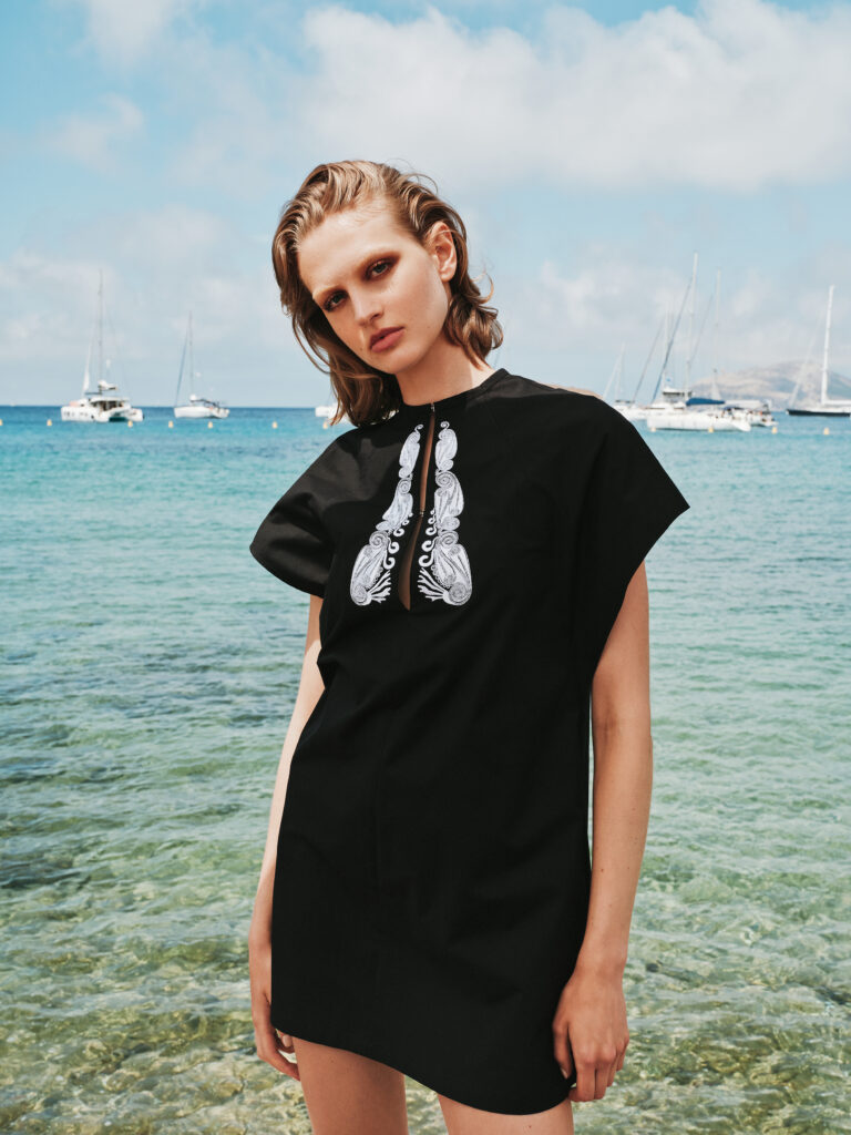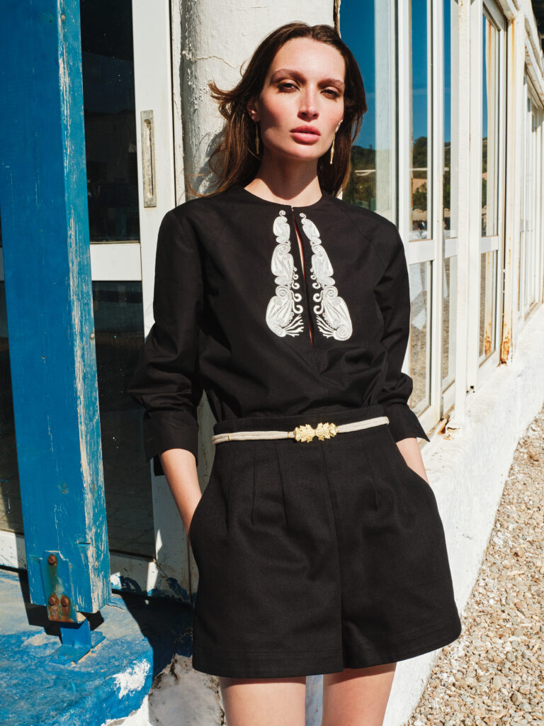 Schwab a conçu des silhouettes qui évoquent l’ombre apaisante des arbres et l’équilibre des jardins méditerranéens. Les coupes fluides et les détails minimalistes reflètent la beauté brute de ces paysages, mêlant tradition et modernité. Cette approche met en avant un style de vie méditerranéen sobre et authentique, où chaque pièce raconte l’histoire d’un lieu où le passé et la nature perdurent.