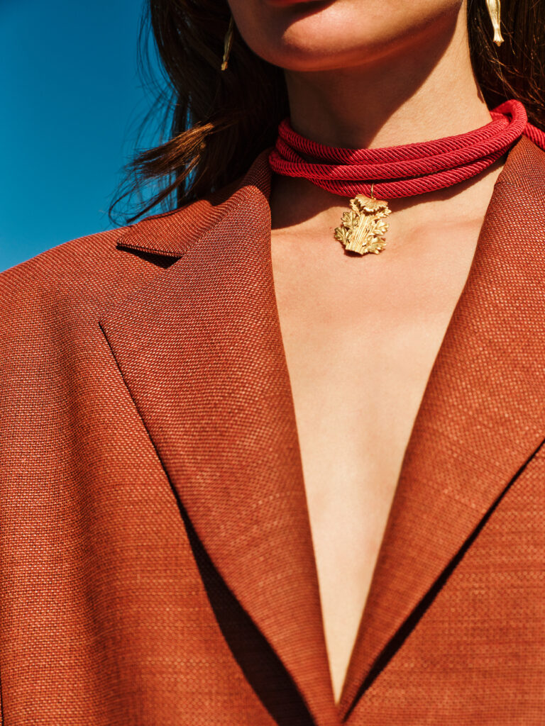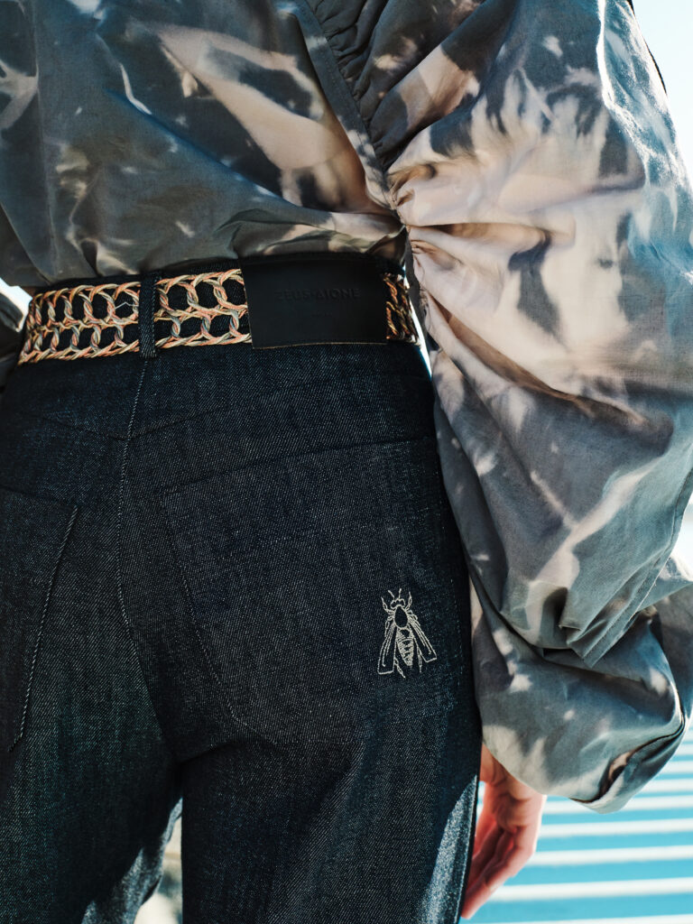 Chaque pièce de « Delphinus » évoque des éléments de la flore méditerranéenne : des arbustes robustes aux fleurs sauvages éphémères, incarnant la résilience et la longévité. Les textures et les teintes rappellent les tons terreux, le vert des feuillages secs et les nuances éclatantes des fleurs printanières. Des matières naturelles et durables sont au cœur de cette collection, symbolisant une élégance intemporelle et un engagement écologique.