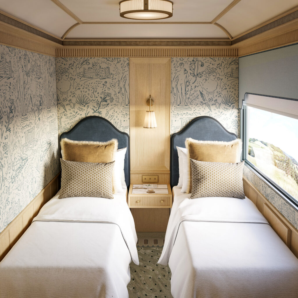 Le studio londonien Albion Nord signe l’aménagement des intérieurs du Britannic Explorer, créant une atmosphère chaleureuse et raffinée, avec une touche de modernité britannique. Les matériaux, les couleurs et les motifs choisis évoquent les paysages naturels du Royaume-Uni, visibles à travers de larges fenêtres panoramiques. Composé de 18 cabines dont trois Grandes Suites, le train associe confort et sophistication, avec des espaces spécialement conçus pour offrir un cadre intime et apaisant.