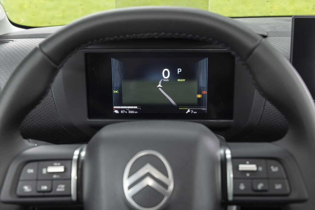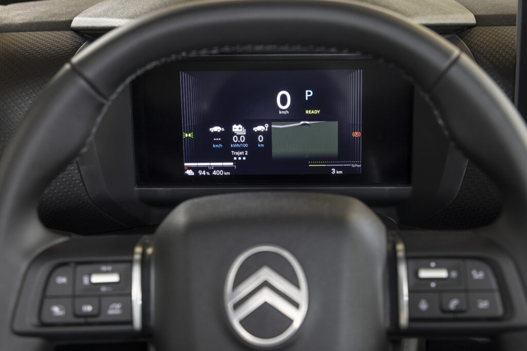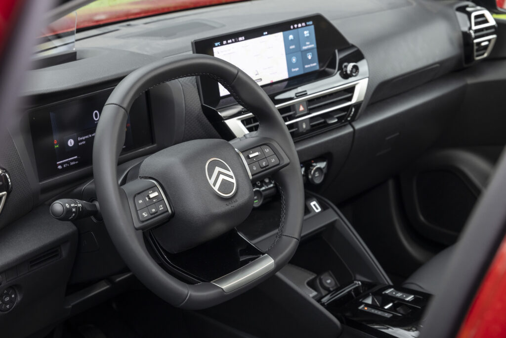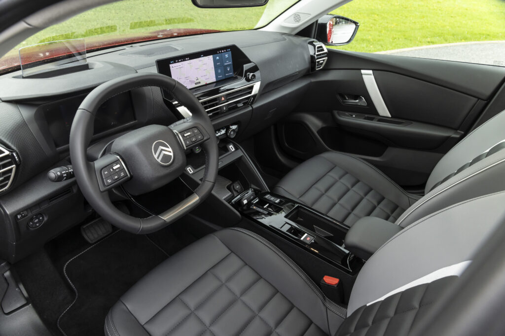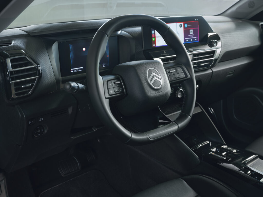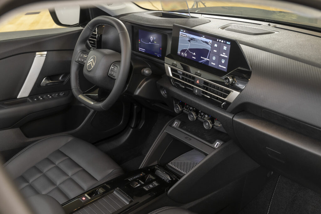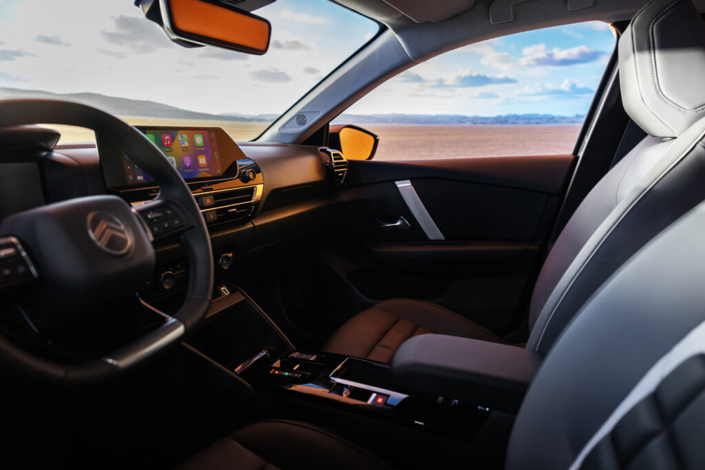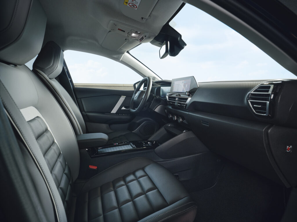 À l’intérieur, le confort est au cœur de l’expérience de conduite avec les sièges Citroën Advanced Comfort® redessinés et les suspensions à butées hydrauliques qui absorbent les imperfections de la route. Un combiné digital 7 pouces, associé à un écran tactile de 10 pouces, offre une interface intuitive et moderne. La vision tête haute couleur et la navigation 3D complètent cet environnement, pour une expérience fluide et immersive.