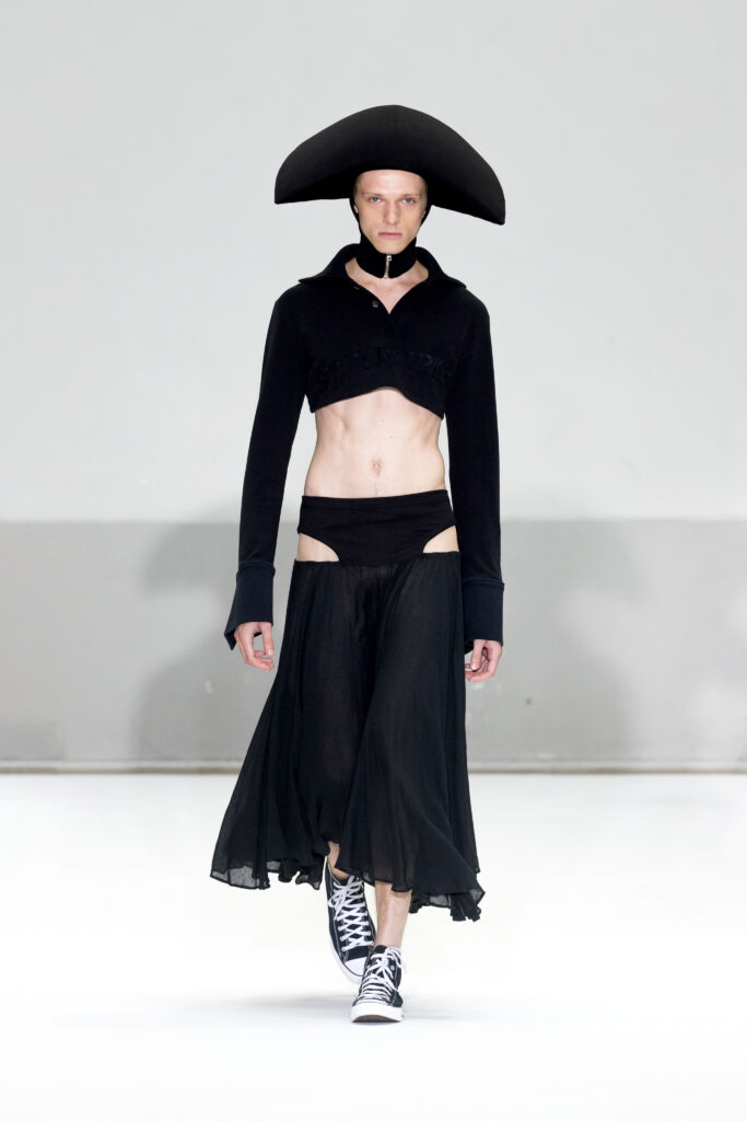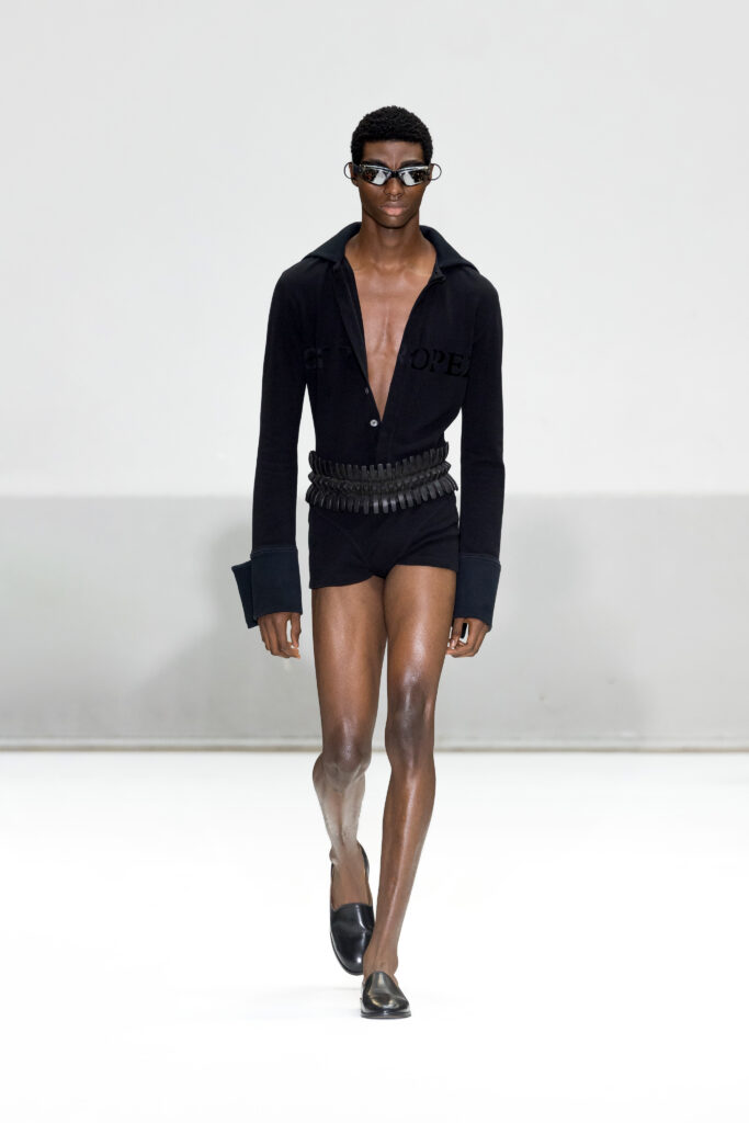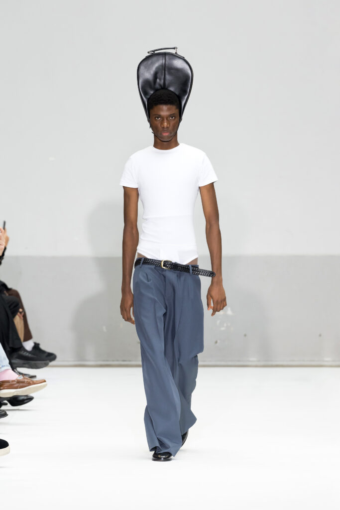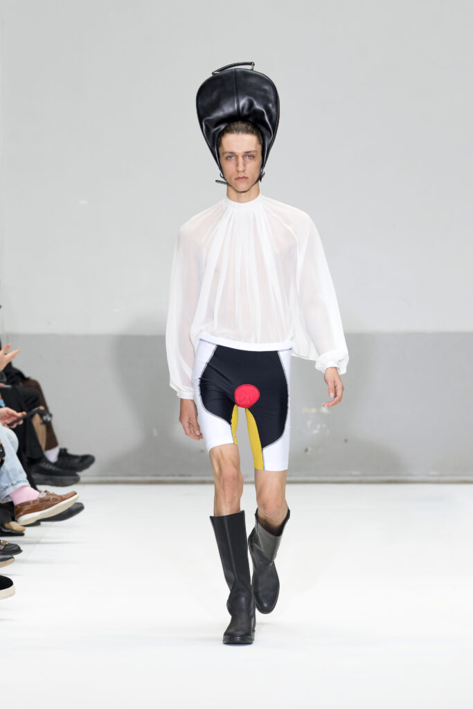 Présentée au cœur du Marais, la collection Printemps/Été 2025 de Duran Lantink s’inscrit dans la continuité d’une année marquée par des succès majeurs, notamment la victoire du prix LVMH Karl Lagerfeld. Avec 46 looks, le designer amstellodamo-parisien a exploré l’art du vêtement comme une rencontre entre formes sculpturales et portabilité, tout en insufflant une touche ludique à chaque création.