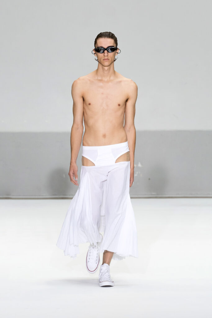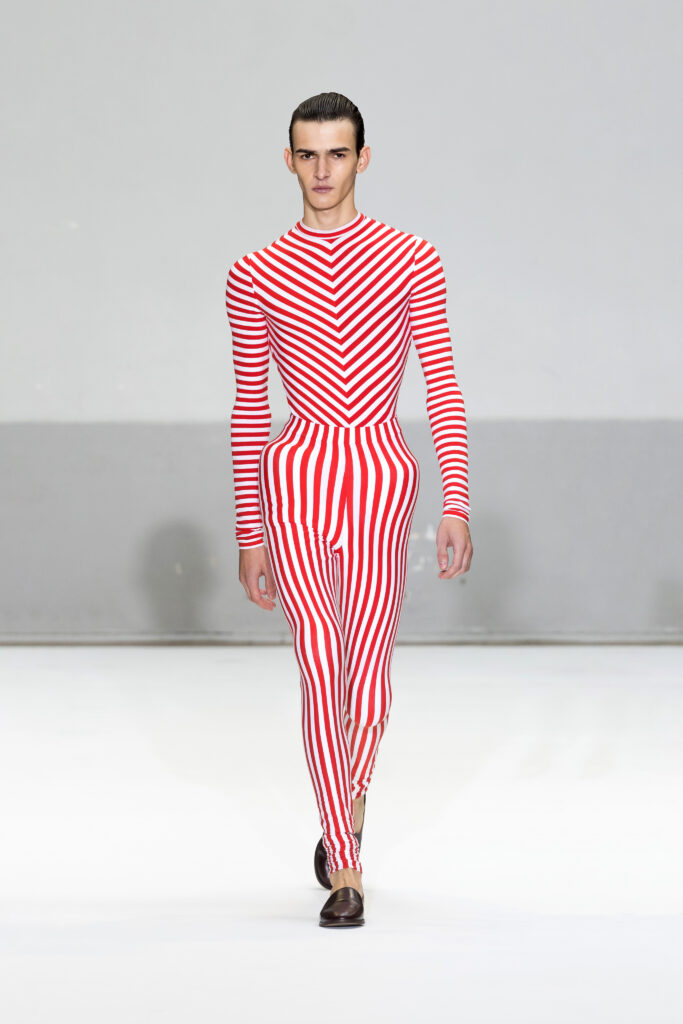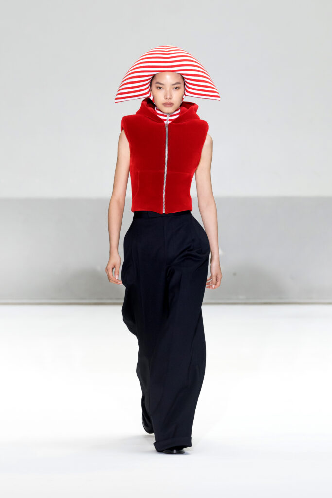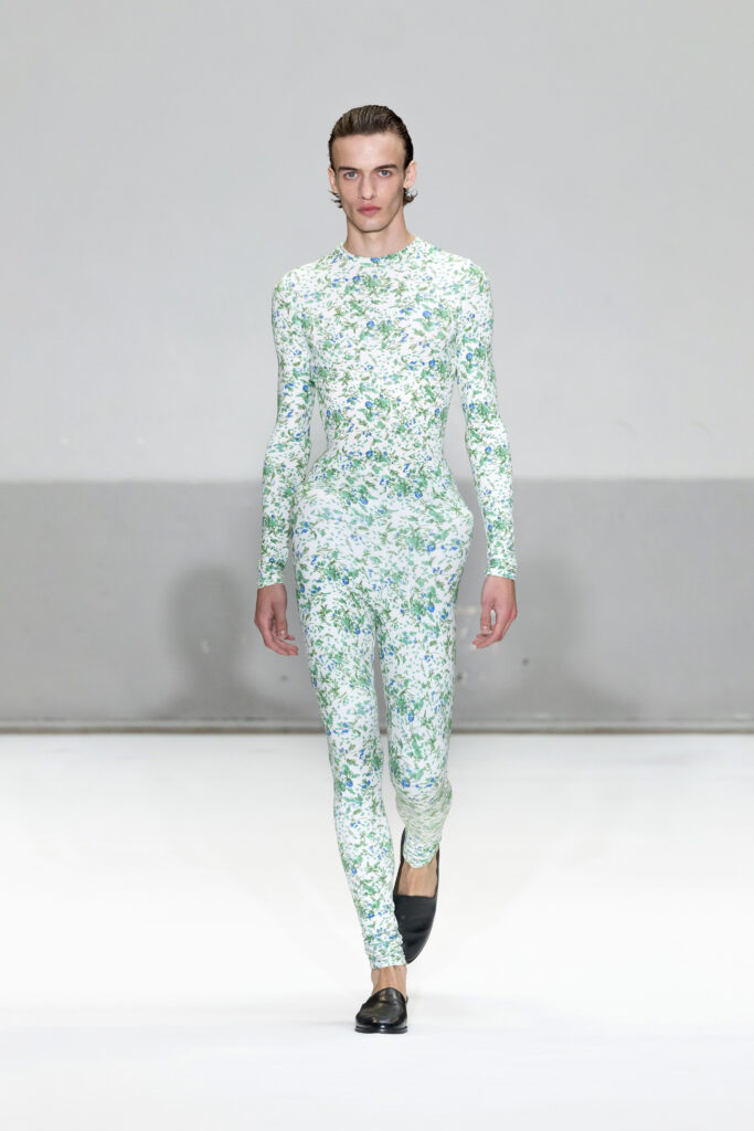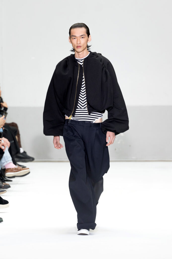 Présentée au cœur du Marais, la collection Printemps/Été 2025 de Duran Lantink s’inscrit dans la continuité d’une année marquée par des succès majeurs, notamment la victoire du prix LVMH Karl Lagerfeld. Avec 46 looks, le designer amstellodamo-parisien a exploré l’art du vêtement comme une rencontre entre formes sculpturales et portabilité, tout en insufflant une touche ludique à chaque création.