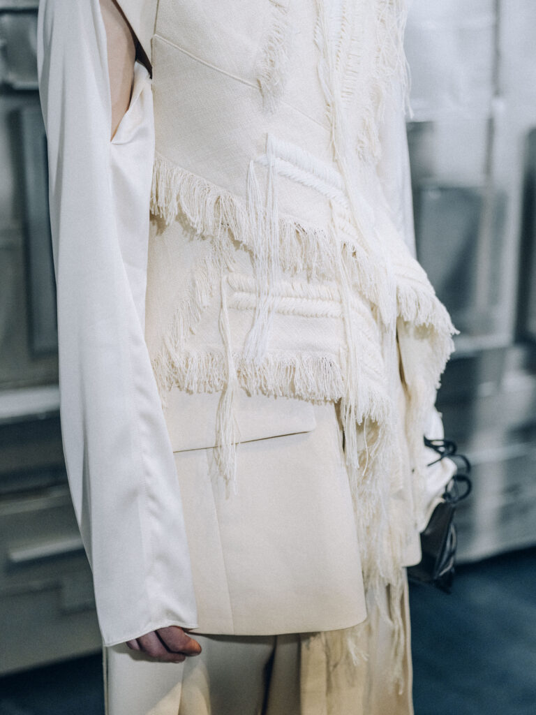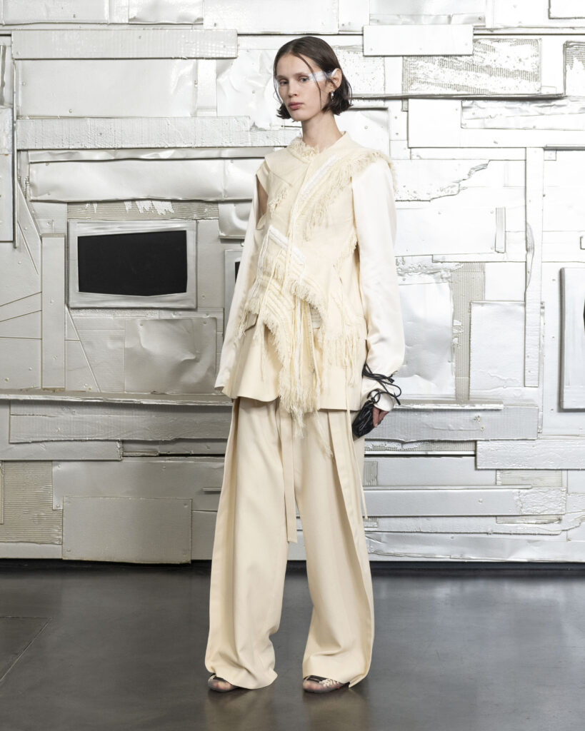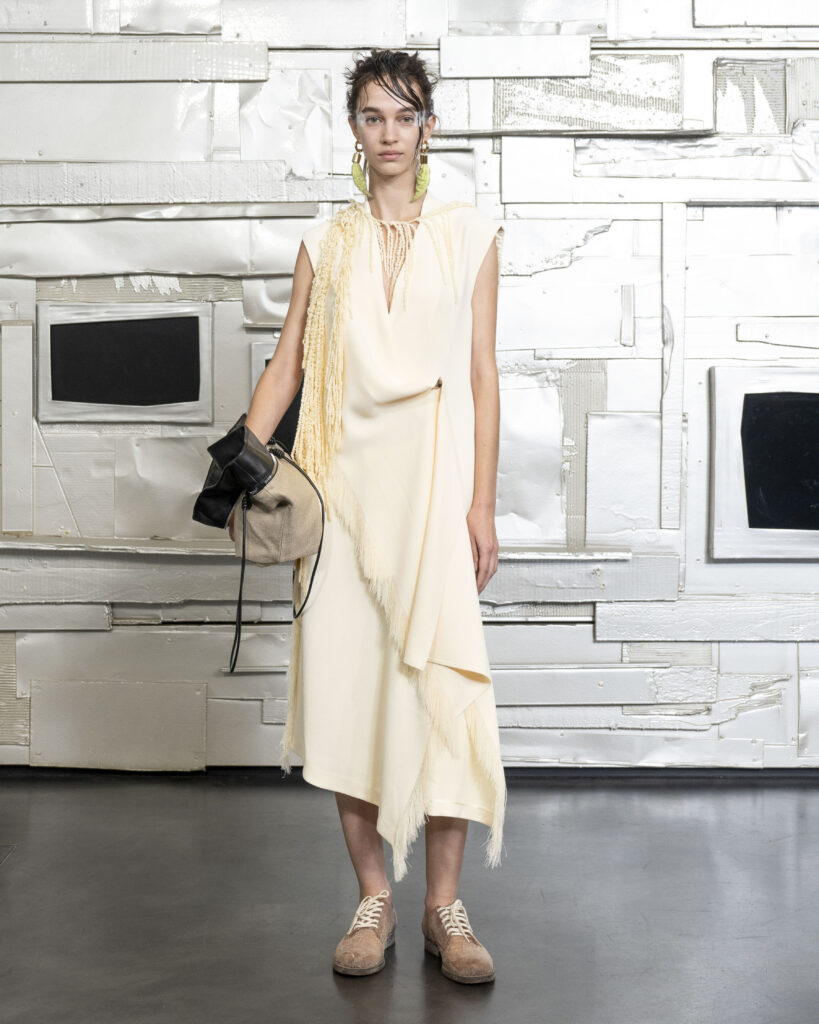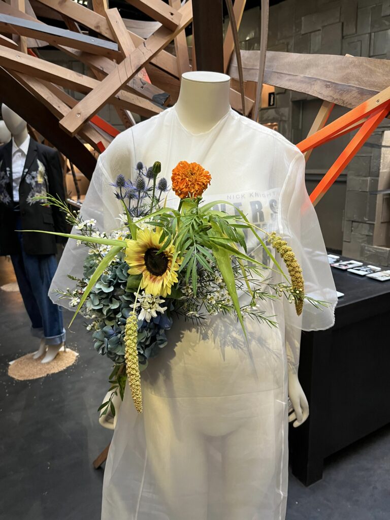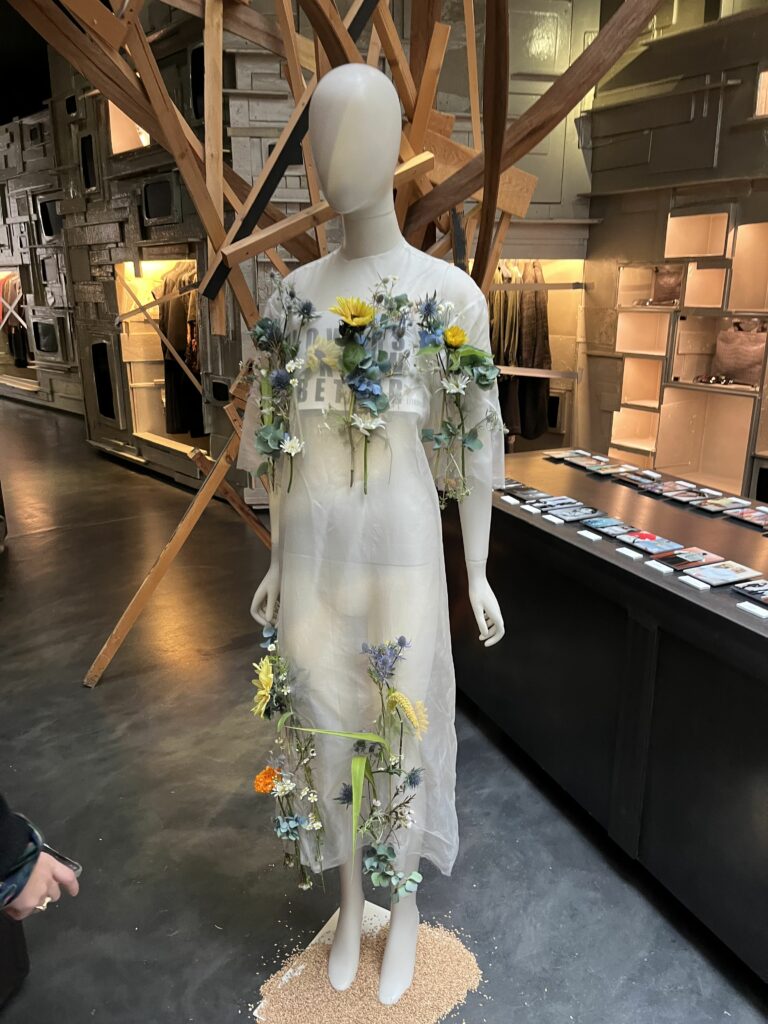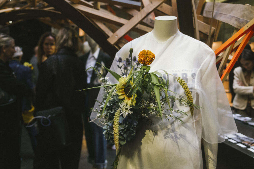 La collection met également à l’honneur une capsule spéciale, Flowers Know Better, en collaboration avec le directeur de SHOWstudio, Nick Knight. Les images florales créées par Knight sont déconstruites, brodées et appliquées sur des vêtements, symbolisant la force et la sagesse de la nature. Tous les bénéfices de cette capsule seront reversés pour soutenir les enfants ukrainiens affectés par la guerre, soulignant l’engagement de la marque envers des causes humanitaires.