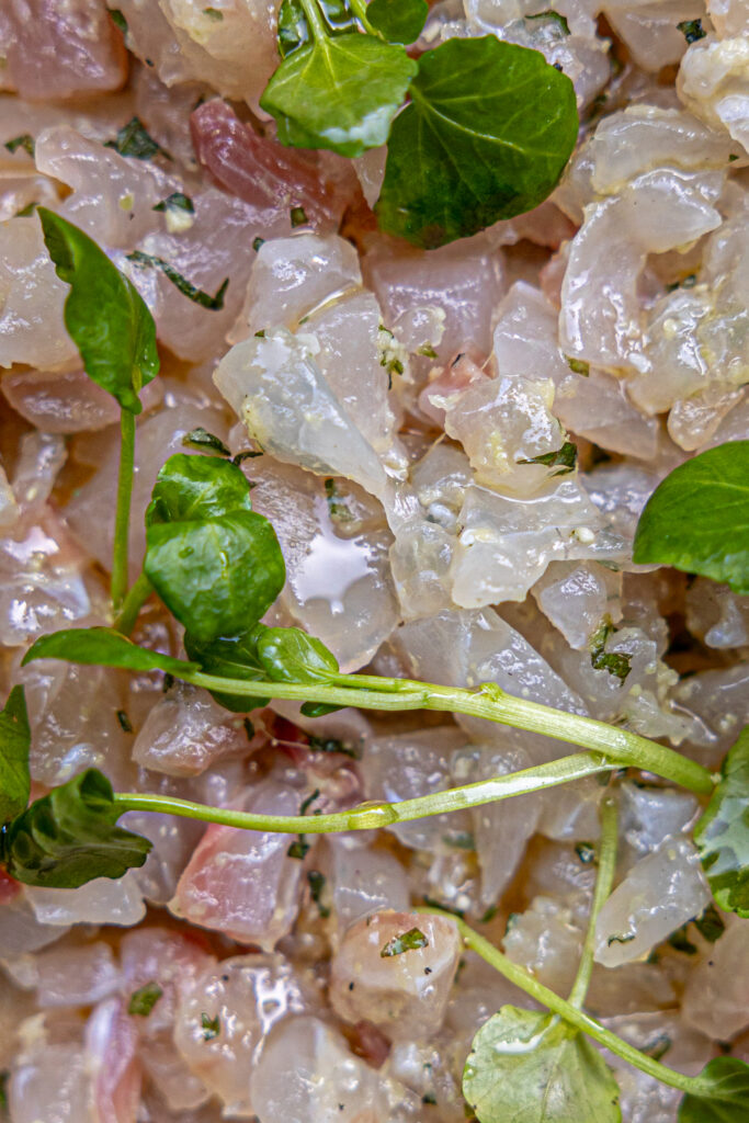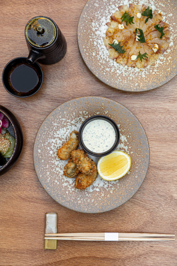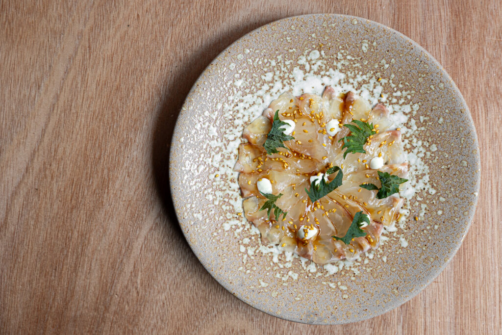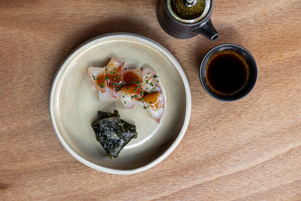 - Sashimis de sériole accompagnés d’une sauce ponzu.