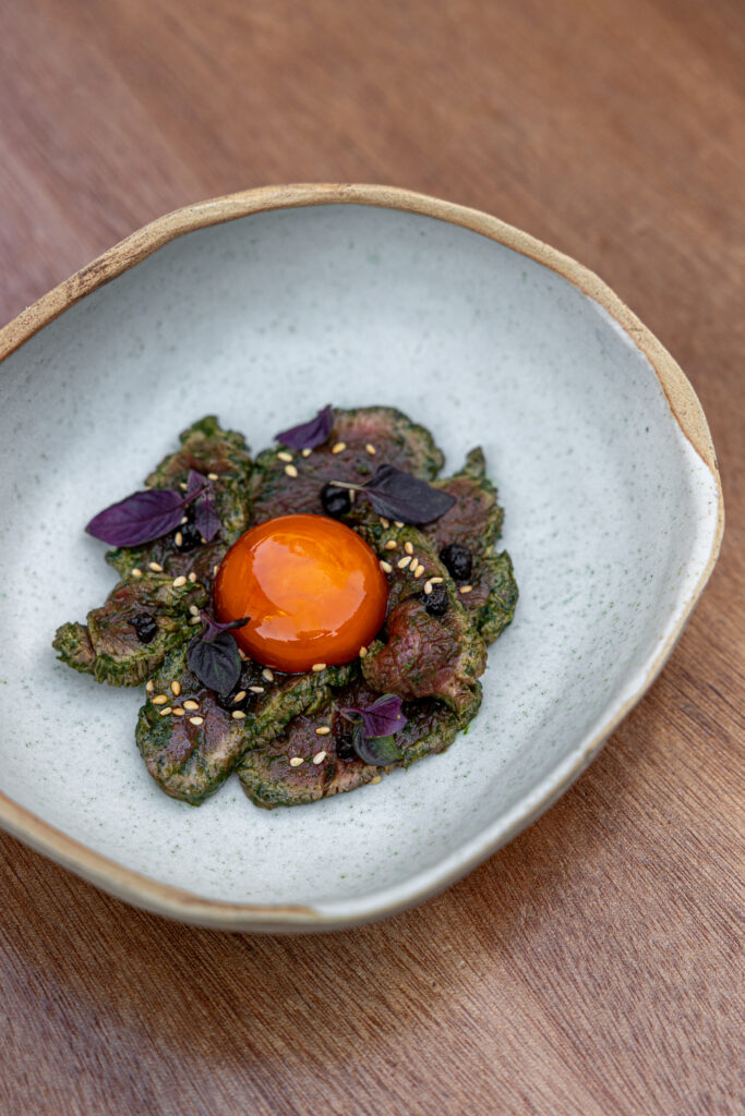 Des découvertes originales figurent également au menu, telles que l’Oyakodon revisité à base de truite et œufs de poisson, ou encore le Tataki de bœuf mi-cuit, relevé au shiso et confit de jaune d’œuf.