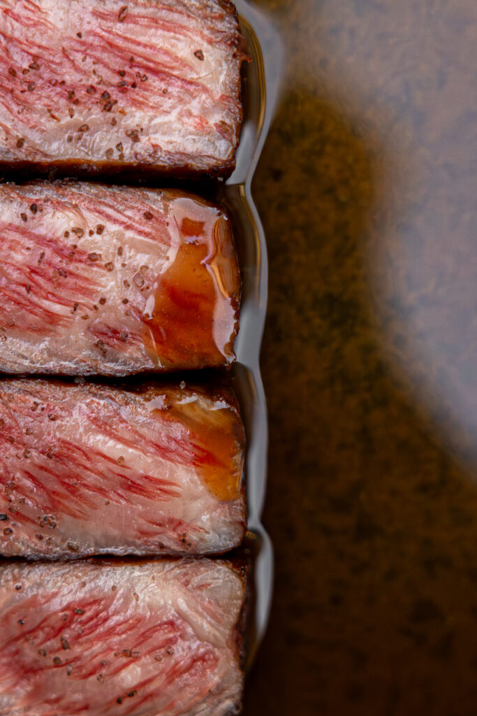 - Et pour les amateurs de viande, un faux-filet de wagyu (85 €) relevé au sel fumé et au wasabi.