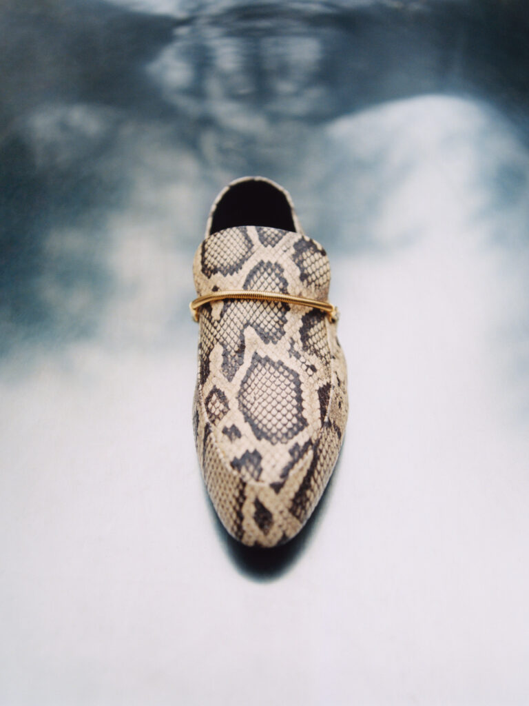 - Les Mocassins Serpent : Ces chaussures se distinguent par des détails métalliques dorés, subtils mais saisissants, qui incarnent le raffinement.
