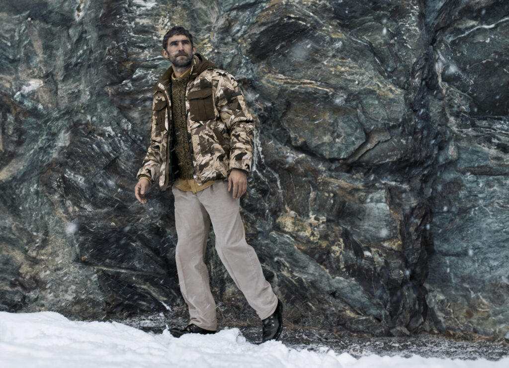 • Un manteau à motif montagneux jacquard, véritable œuvre d’art textile qui incarne l’esprit hivernal.