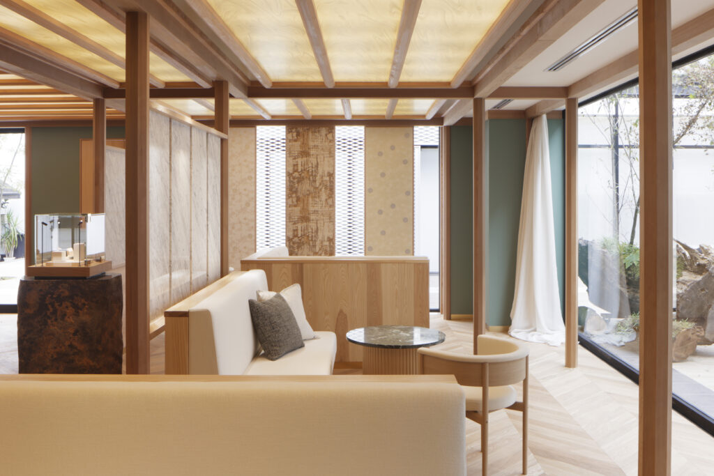 Plus qu’une boutique, cet espace se veut un véritable salon privé. À l’image de la Résidence éphémère de l’hôtel Okura, Gemmyo offre ici une expérience intimiste, où les visiteurs peuvent découvrir les collections emblématiques, essayer des pièces uniques et même passer commande pour des créations sur mesure.