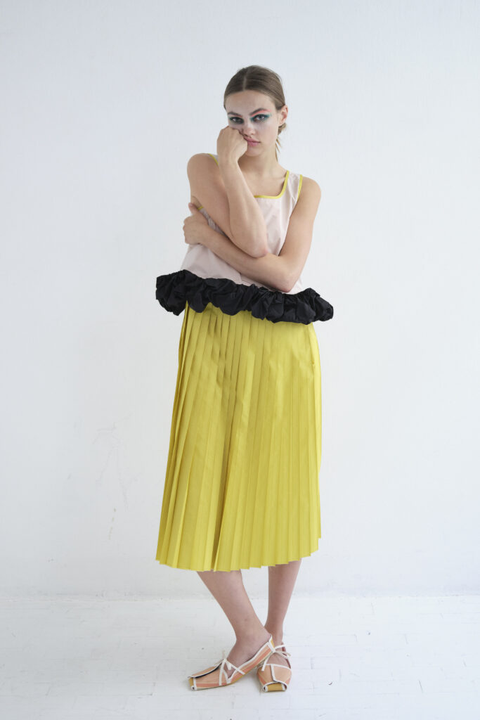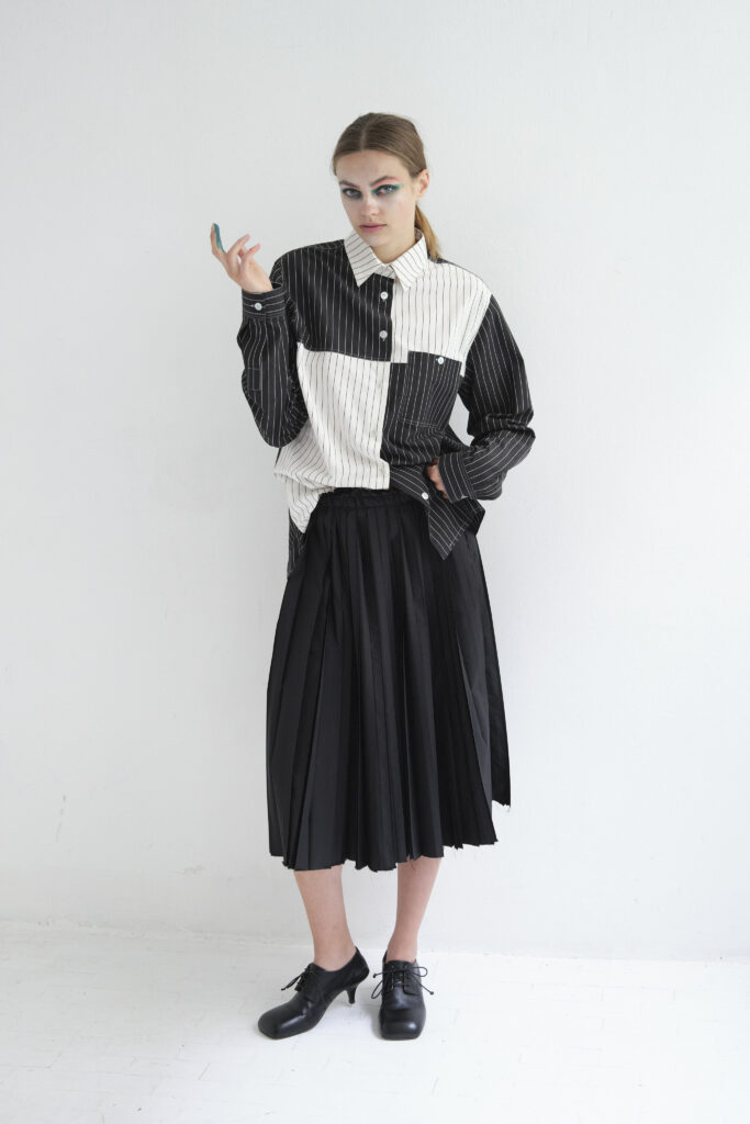 Arthur Arbesser illustre comment une mode réfléchie et minimaliste peut offrir un impact maximal. Sa collection démontre qu’une approche artisanale et expérimentale peut donner naissance à des pièces qui sont à la fois intemporelles et actuelles.