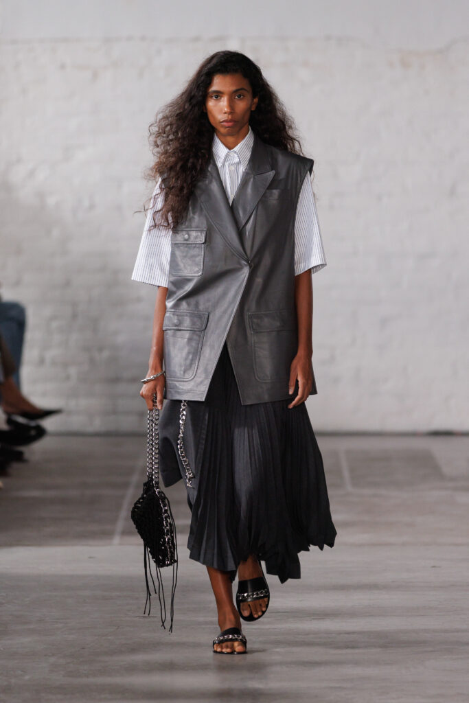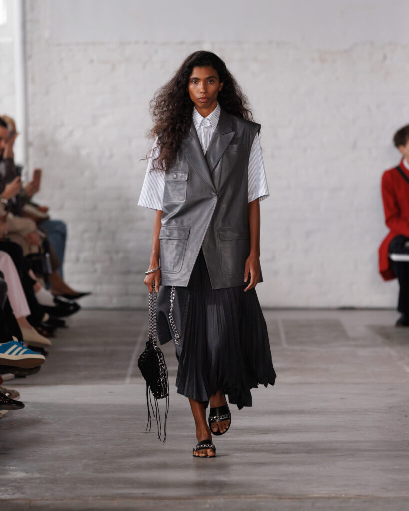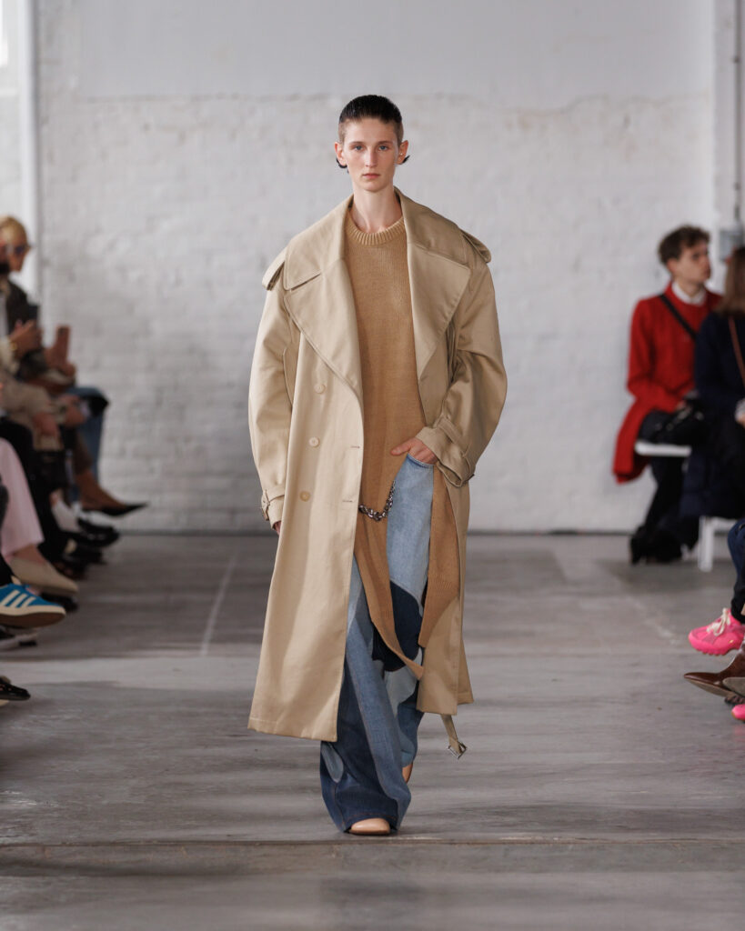 • Masculin-Féminin : Trench-coats oversize et vestes sans manches rencontrent des robes fluides ou des chemises transformées en pièces couture.