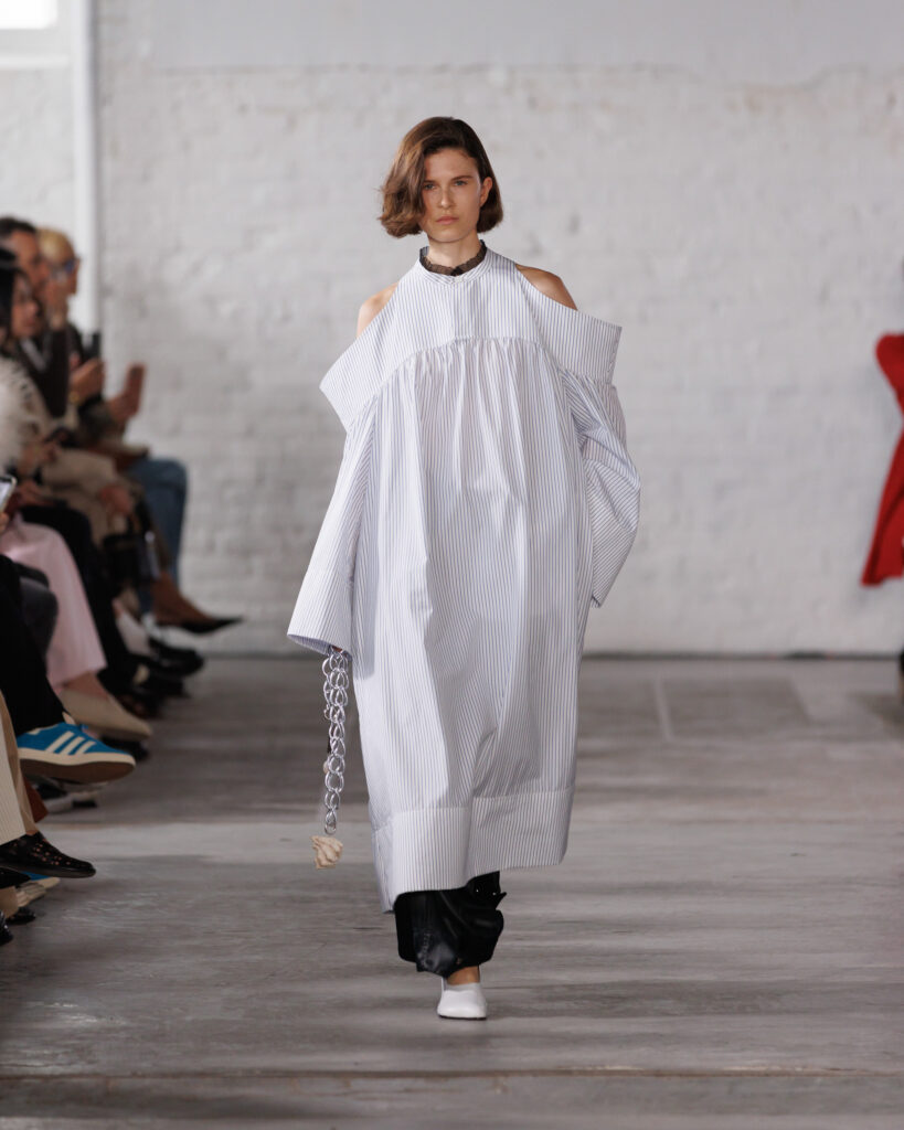Chaque look illustre une tension délicate entre retenue et audace, offrant un équilibre entre élégance classique et créativité effervescente. Avec cette collection, Niccolò Pasqualetti confirme son talent pour magnifier l’ordinaire et réinventer les codes de la mode contemporaine.