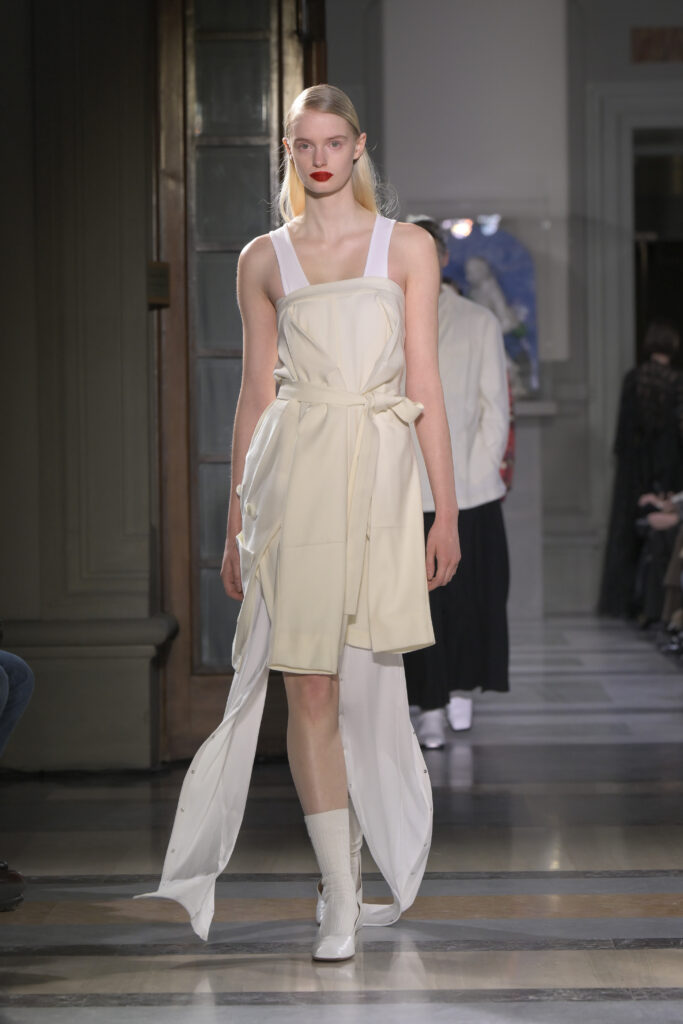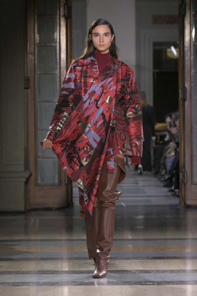 Après le défilé, l’exposition continue avec une installation sur tatamis où 19 cabinets circulaires dévoilent les inspirations variées de Setchu, de la pêche à l’art du pliage appliqué aux gants ou aux serviettes. Cette scénographie rappelle des haïkus, illuminant la rencontre entre l’Est et l’Ouest au cœur de la marque.