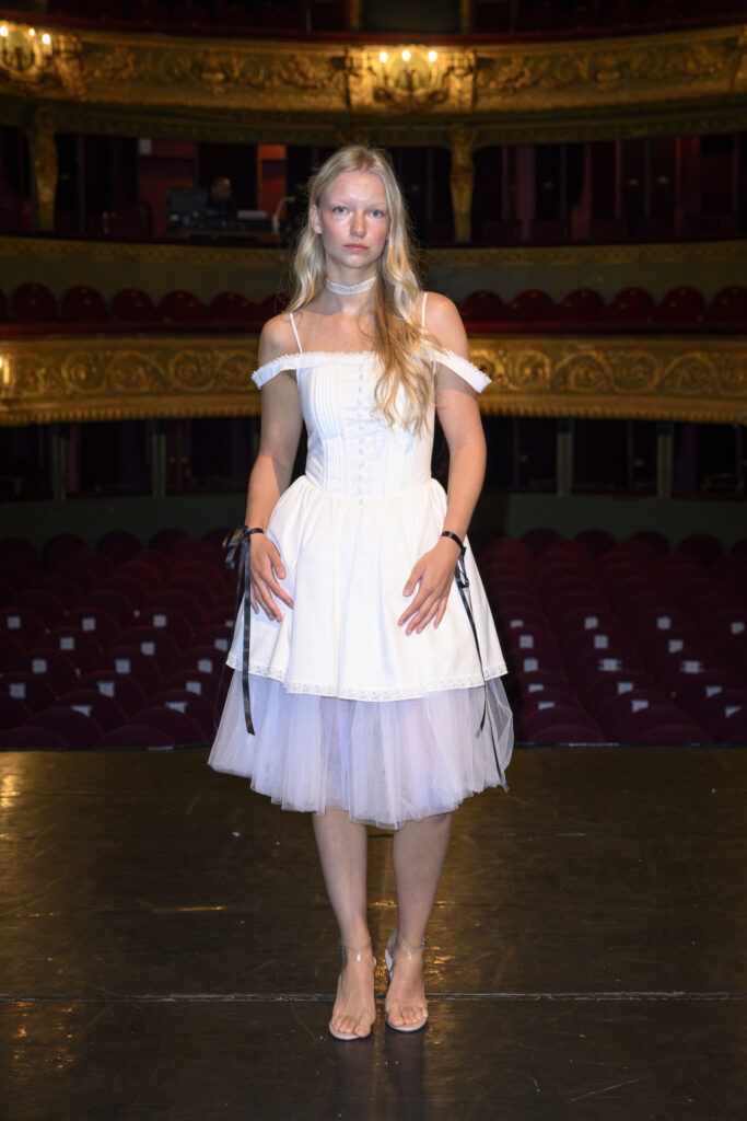 Chaque pièce témoigne d’un artisanat minutieux et d’une recherche textile visant à refléter la grâce et la fluidité des mouvements de ballet.