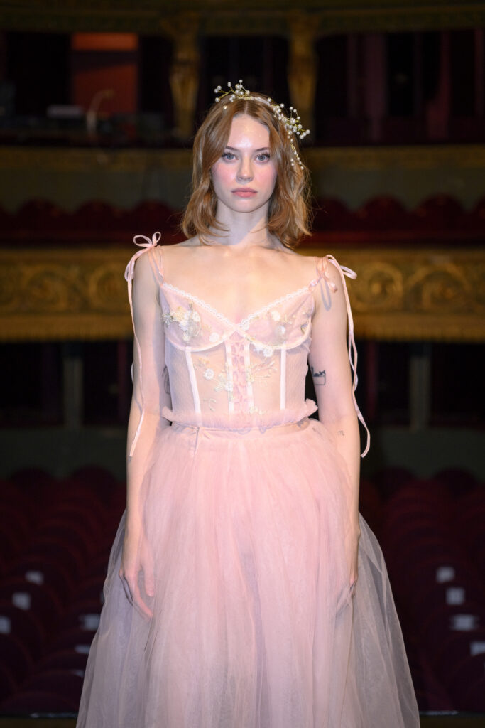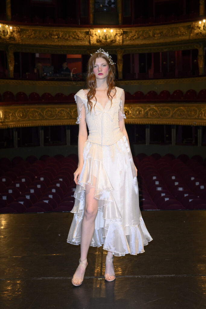 Wild Rose & Sparrow s’impose comme un modèle de mode responsable. Le choix de matériaux éthiques et la mise en avant de techniques traditionnelles sont en parfaite cohérence avec la philosophie de la marque. La mise en scène, intégrant une performance de l’Académie Danse Paris, plonge les invités dans une expérience immersive, exaltant la puissance expressive de la danse et de la mode.