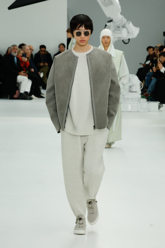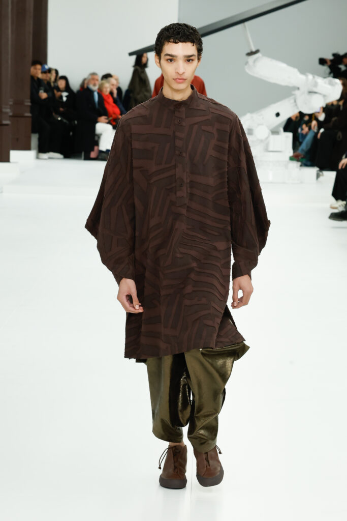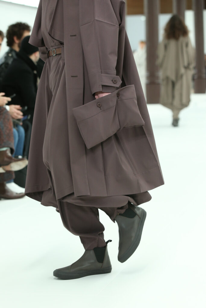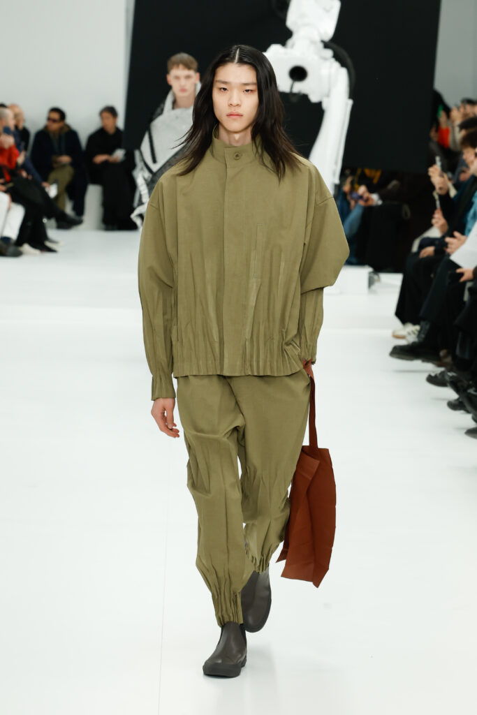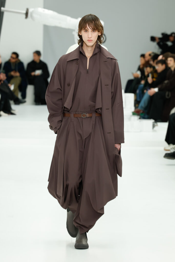 Pour la saison Automne/Hiver 2025/26, IM MEN, sous la direction artistique Sen Kawahara, Yuki Itakura et Nobutaka Kobayashi poursuit son exploration des interactions entre forme et fluidité. La collection met en avant une esthétique minimaliste, enrichie d’une réflexion sur la structure et le mouvement, deux éléments qui se croisent harmonieusement dans chaque silhouette.
