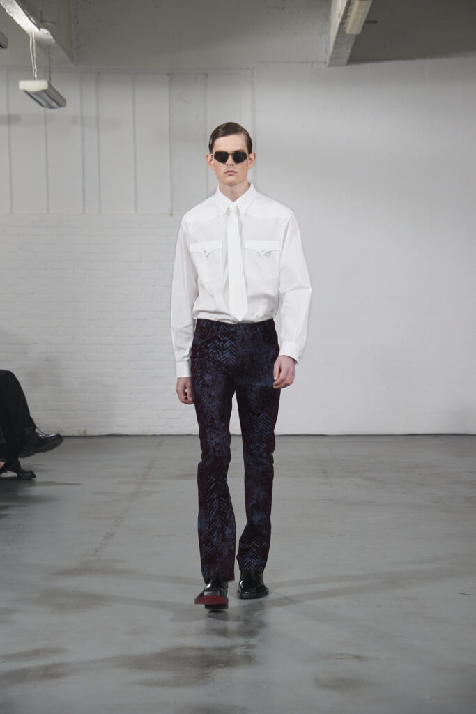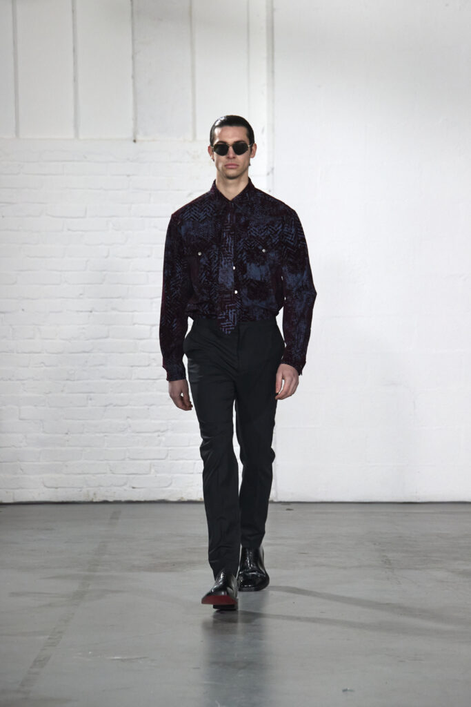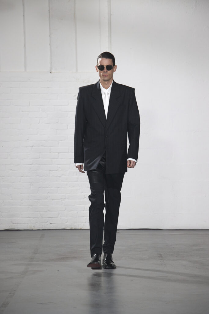 L’esprit du Berlin des années 70, hanté par un David Bowie androgyne et la fureur du mouvement cold wave, plane sur la nouvelle collection de Valette Studio. Pierre-François Valette, créateur de la marque, nous plonge dans une atmosphère nocturne et électrique, où l’élégance se teint d’une pointe de rébellion.