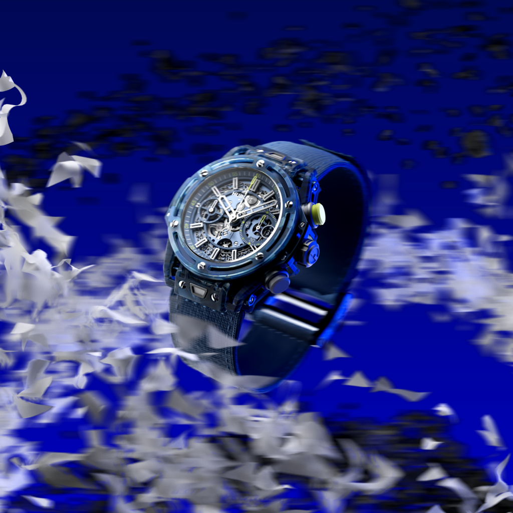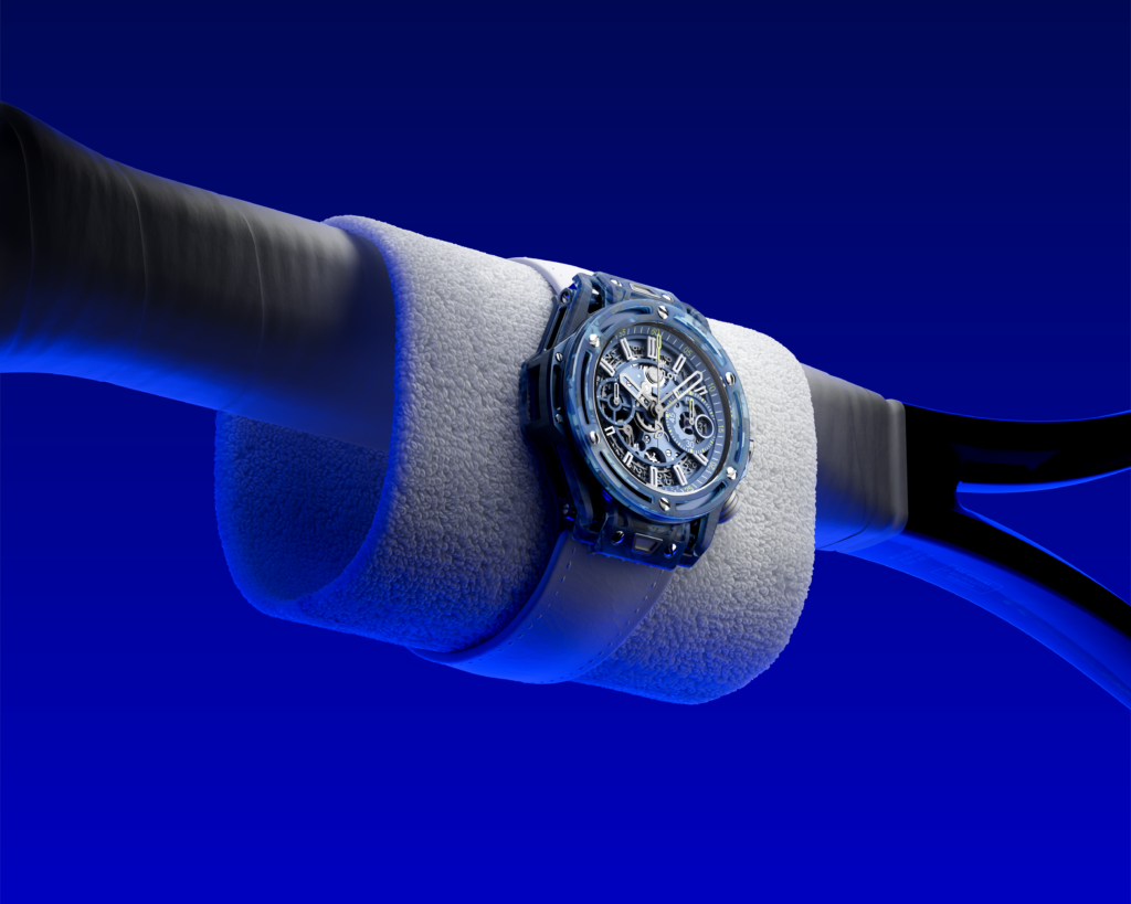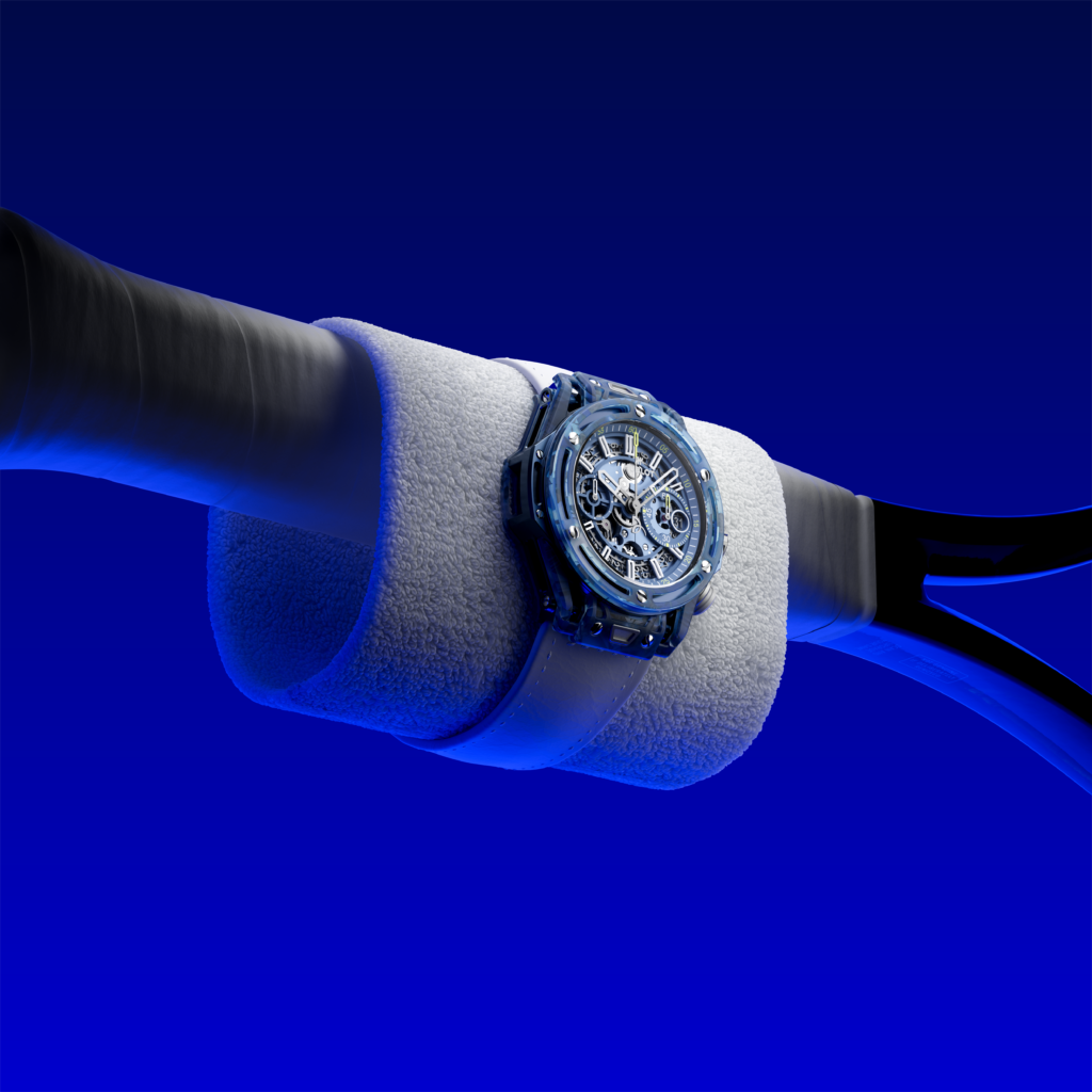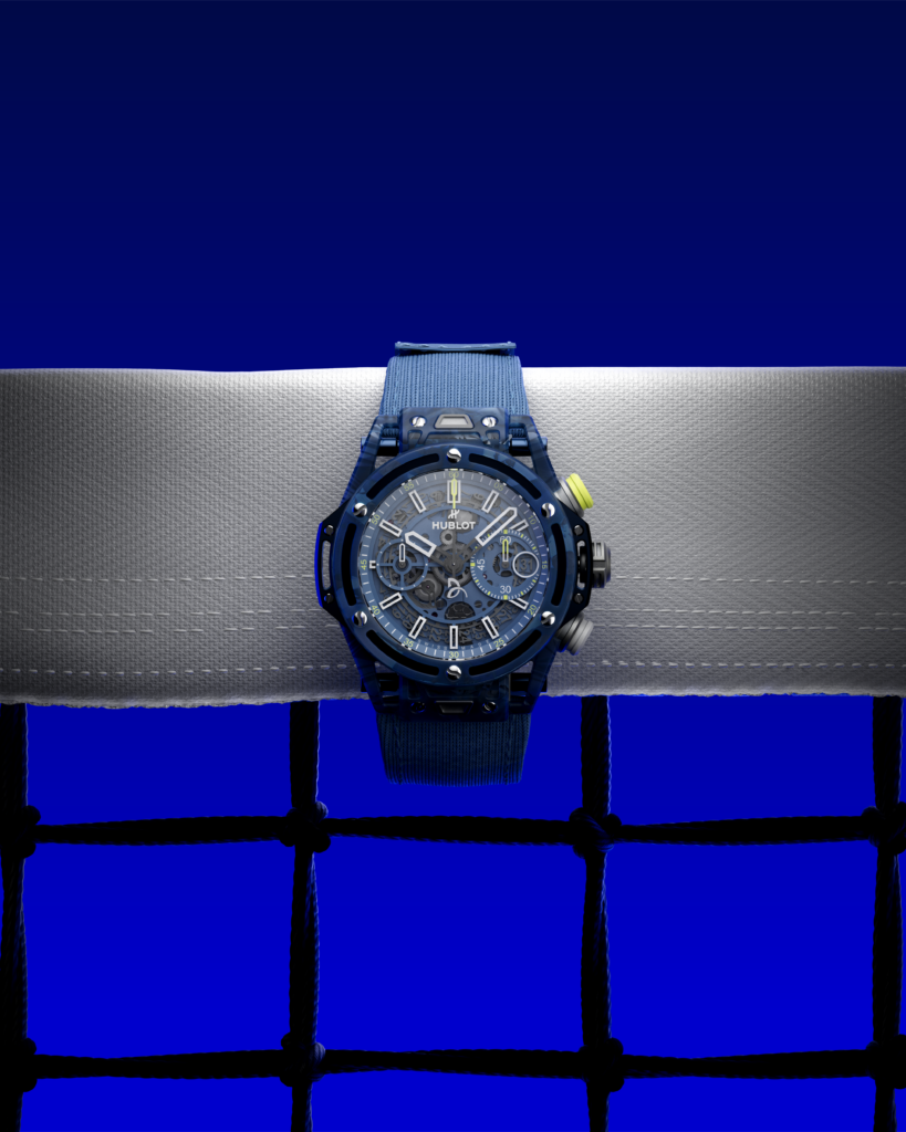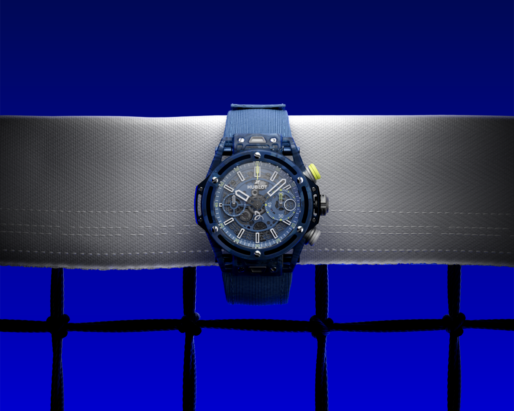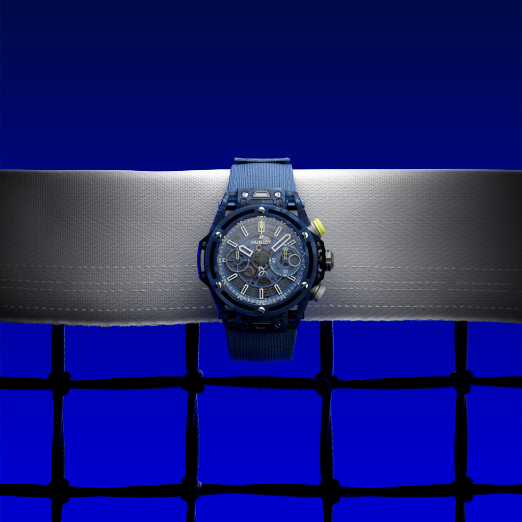 Fabriquée à partir de matériaux symboliques ayant appartenu à Djokovic — notamment ses raquettes HEAD et ses polos Lacoste, utilisés lors de sa saison triomphale en 2023 — la Big Bang Unico reflète l’esprit de détermination et d’excellence du champion. Ces éléments recyclés ont été transformés en un composite bleu mat, intégré dans le boîtier et la lunette, créant une esthétique camouflage bleue qui évoque la concentration et la persévérance de l’athlète.