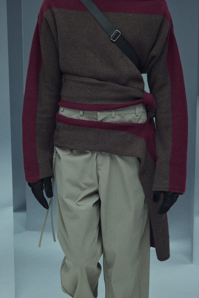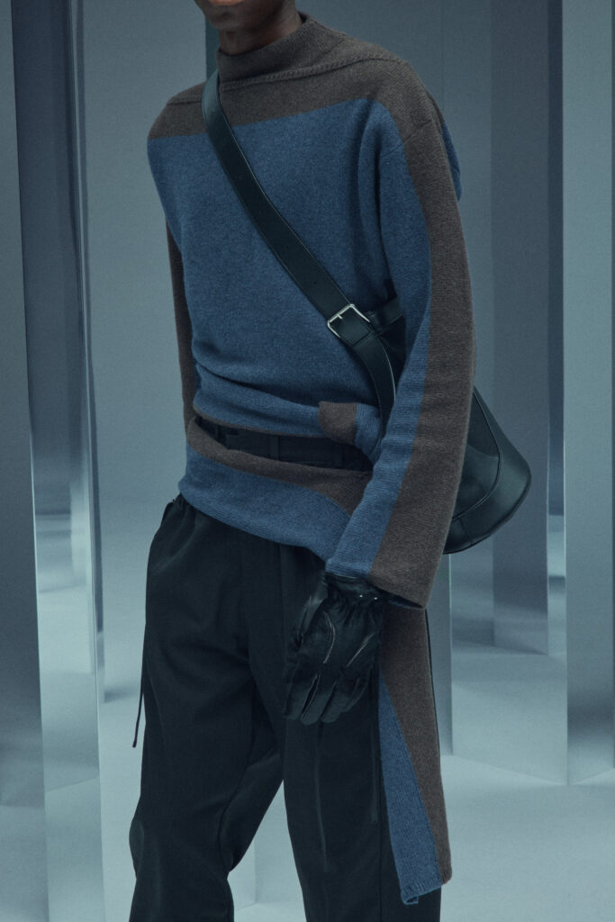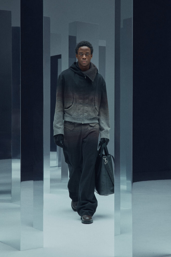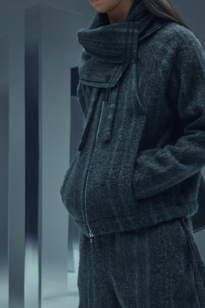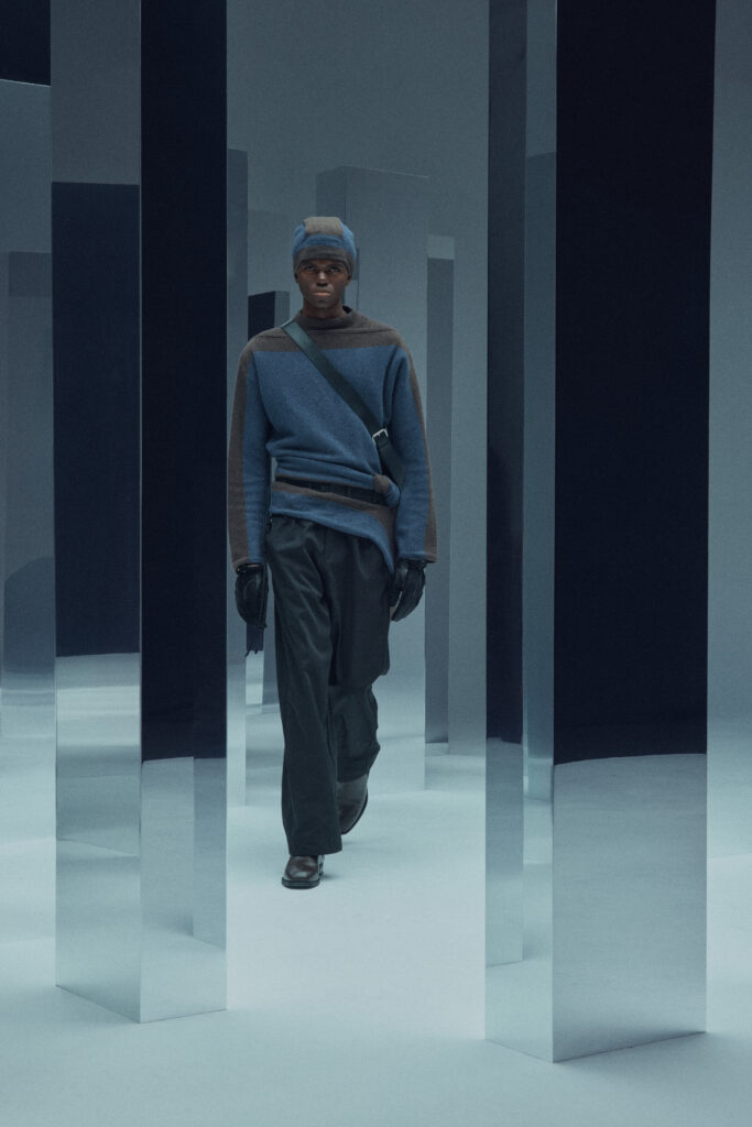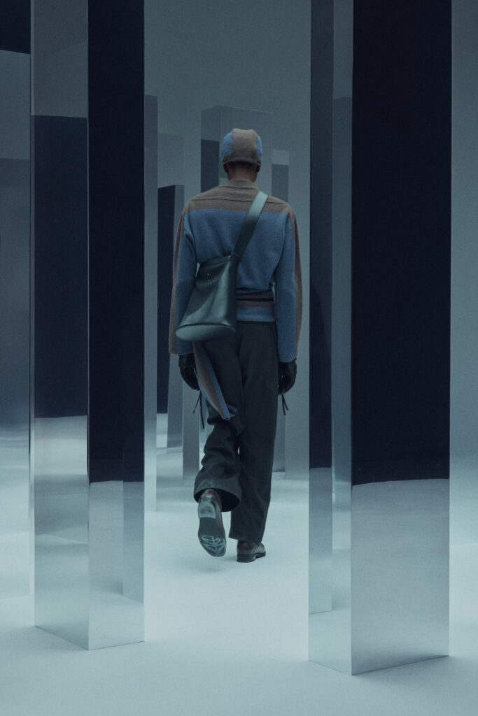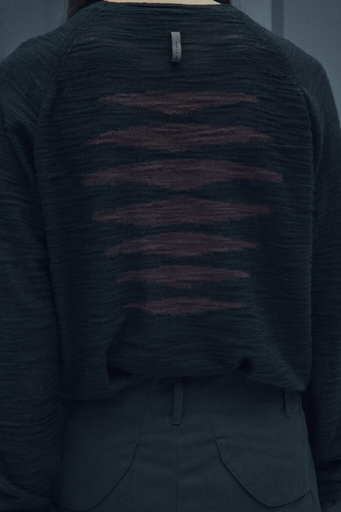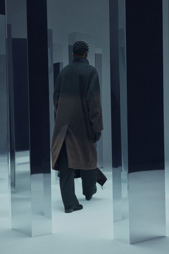 La collection met en lumière une laine dégradée unique, créée en partenariat avec Manteco, un filateur italien reconnu. Chaque pièce est fabriquée avec une précision extrême, minimisant les déchets tout en offrant des transitions tonales subtiles.