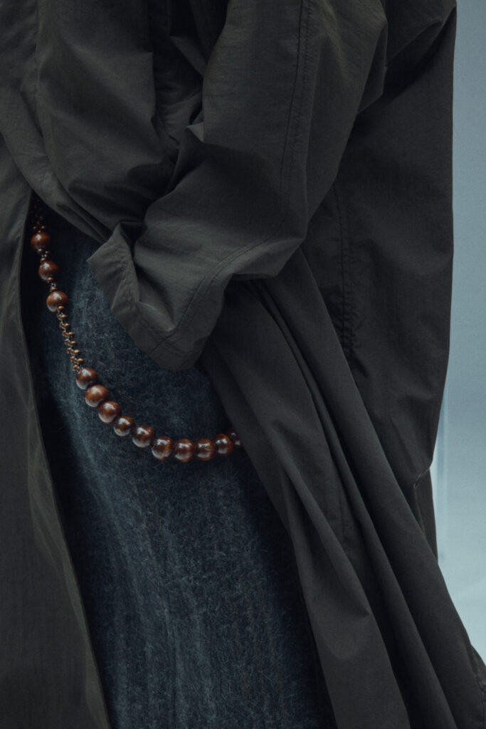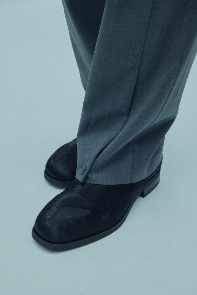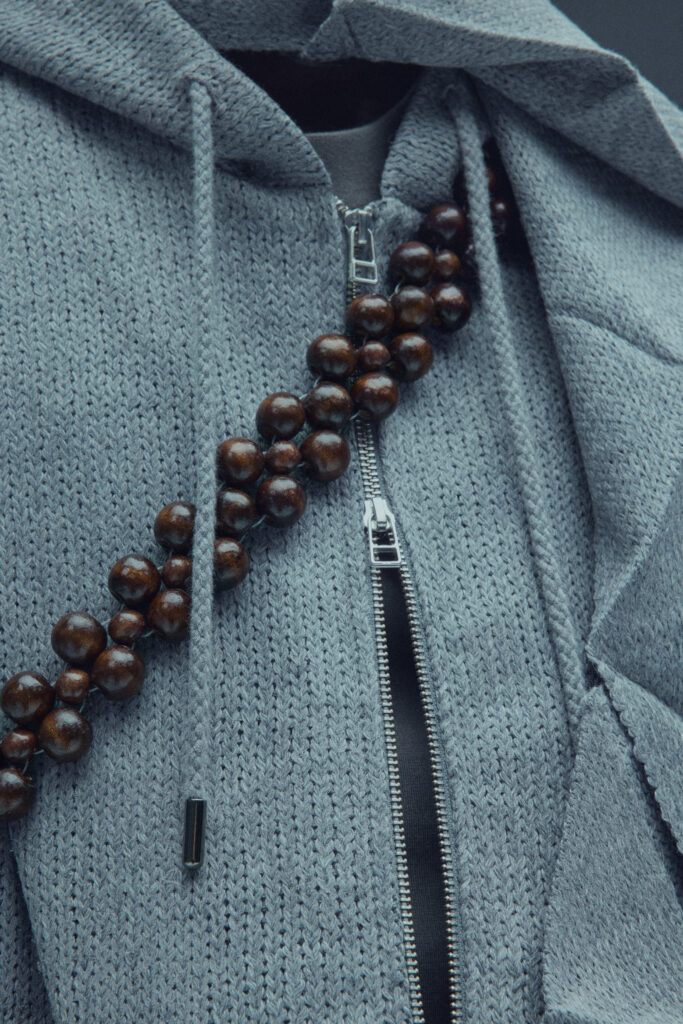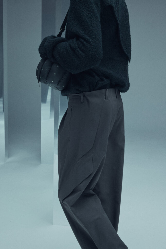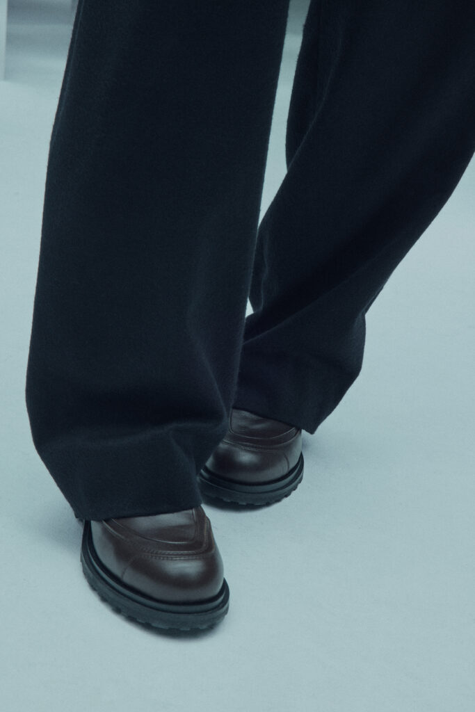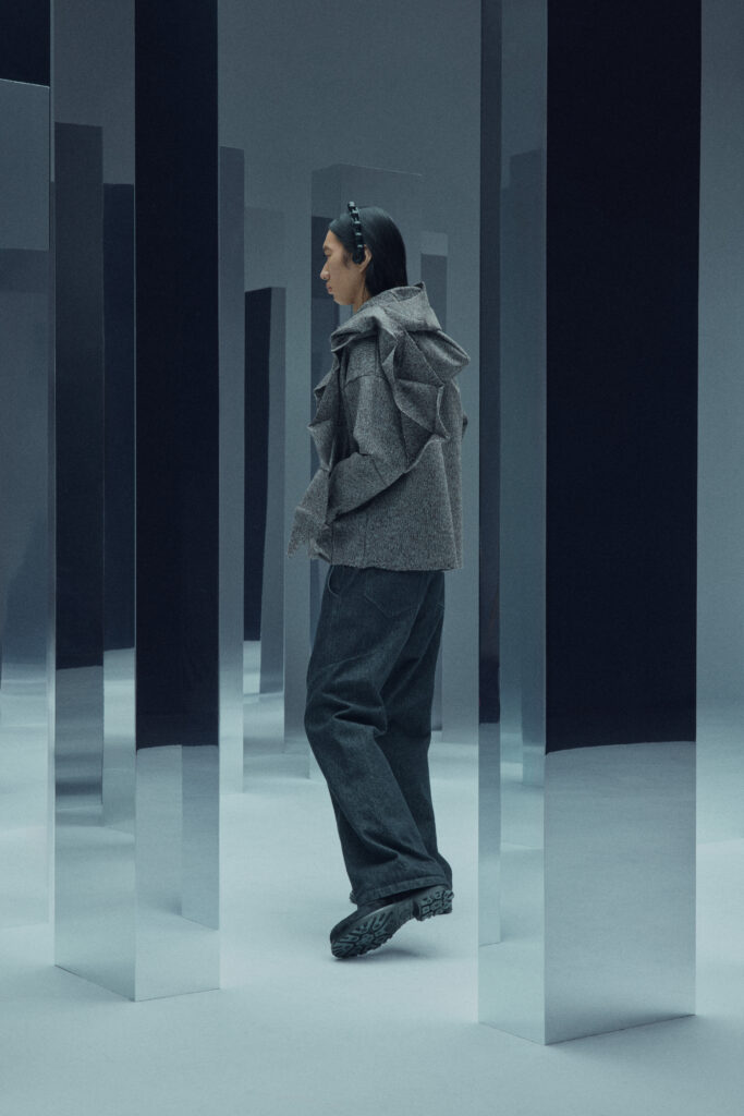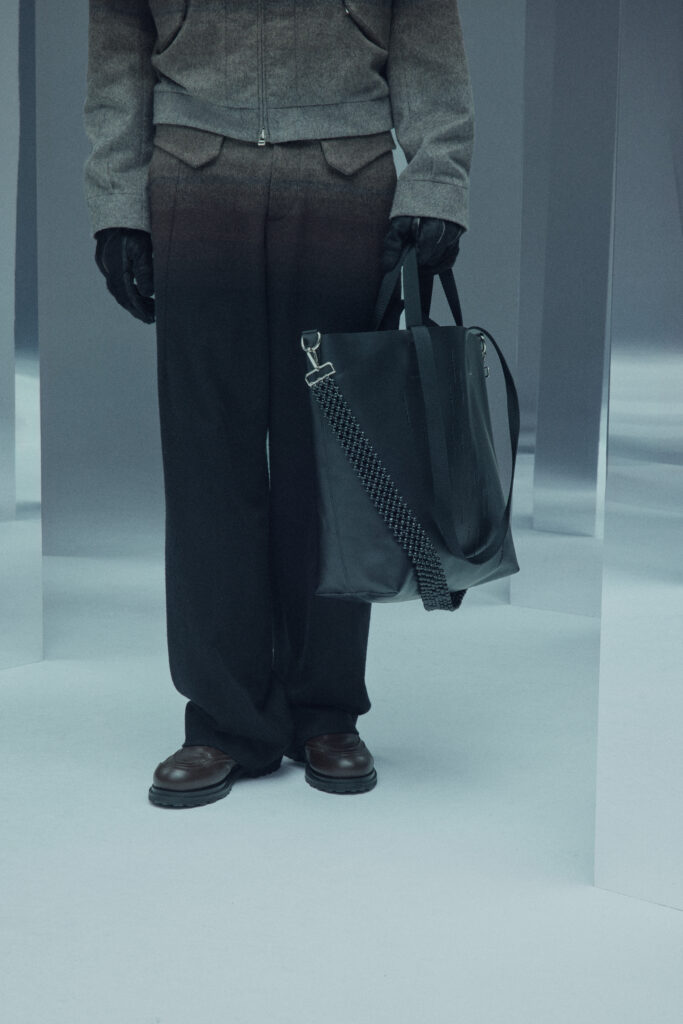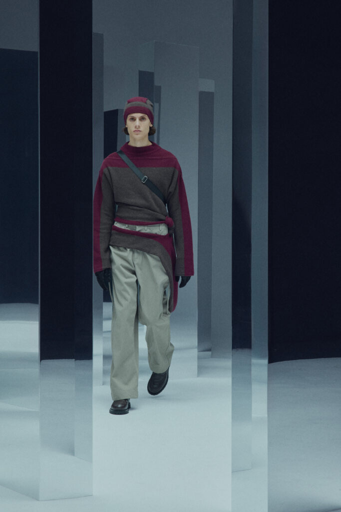 La collection met en lumière une laine dégradée unique, créée en partenariat avec Manteco, un filateur italien reconnu. Chaque pièce est fabriquée avec une précision extrême, minimisant les déchets tout en offrant des transitions tonales subtiles.