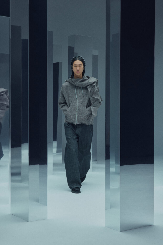 Lors de la Fashion Week de Paris, la collection a été présentée dans une galerie onirique, jouant sur les reflets et les illusions. Les silhouettes y semblaient suspendues dans un espace en constante mutation, brouillant les frontières entre réalité et mirage.