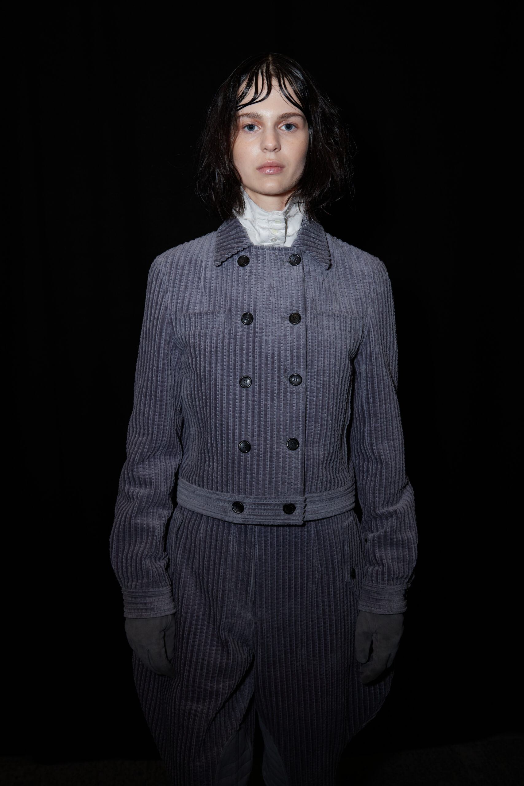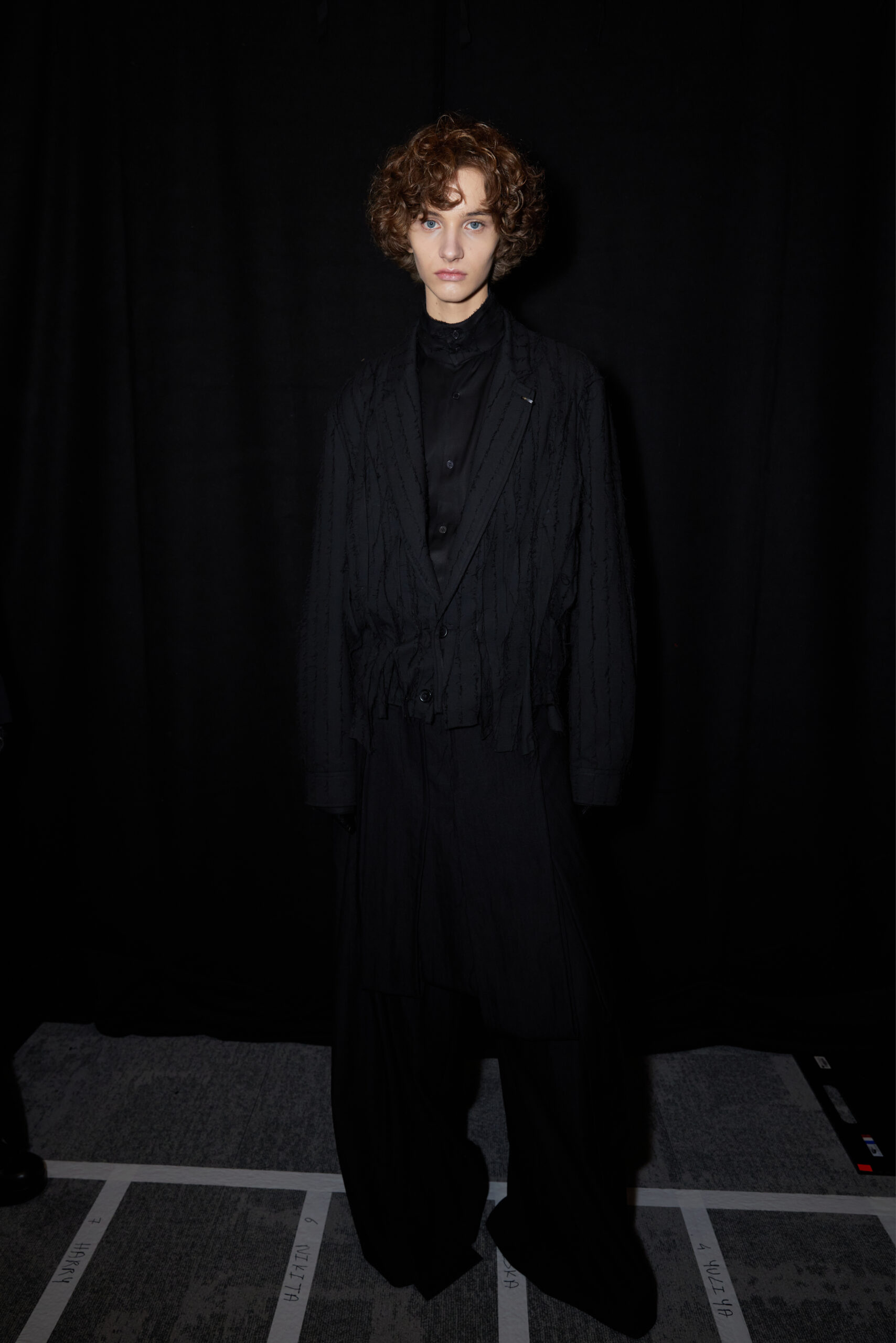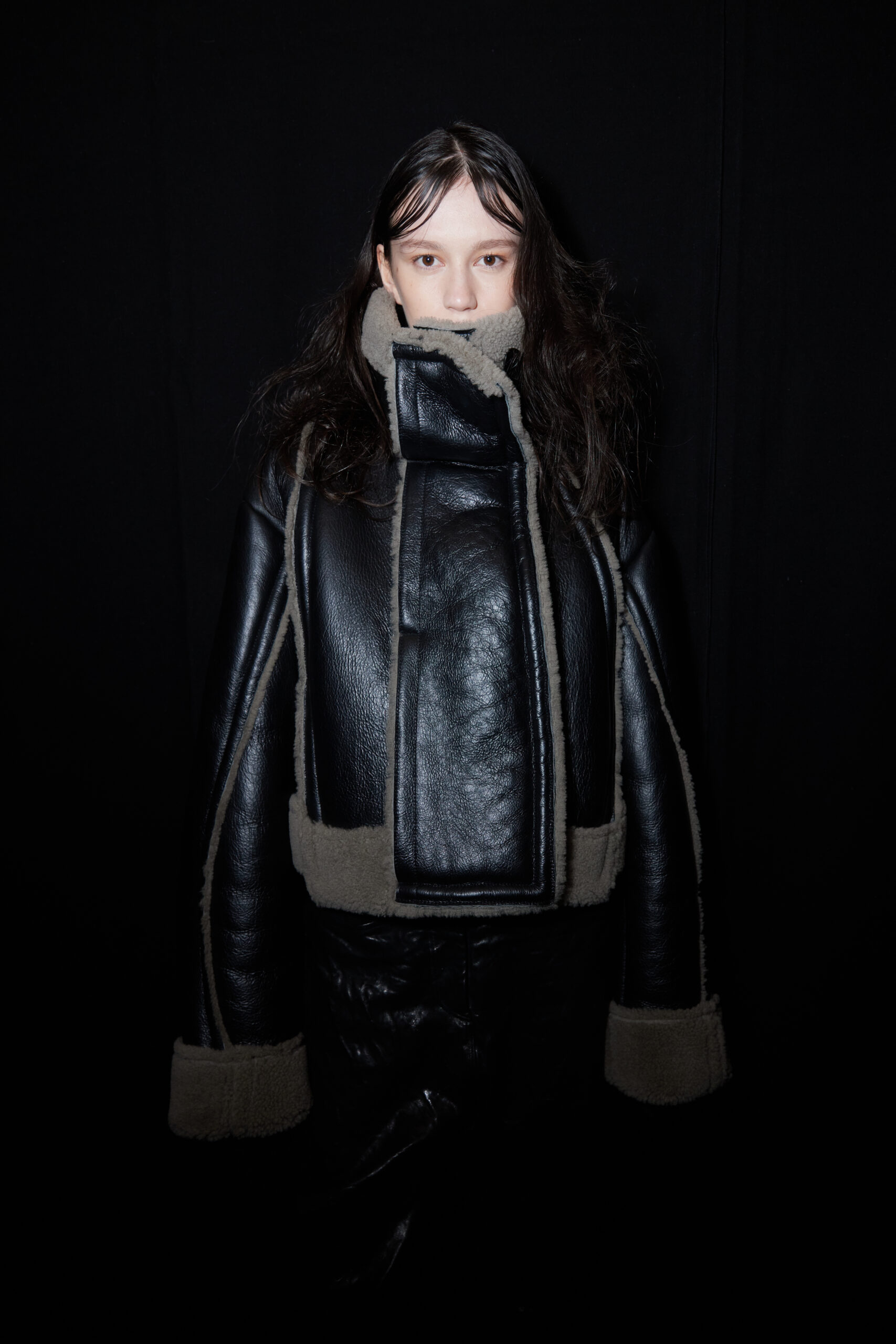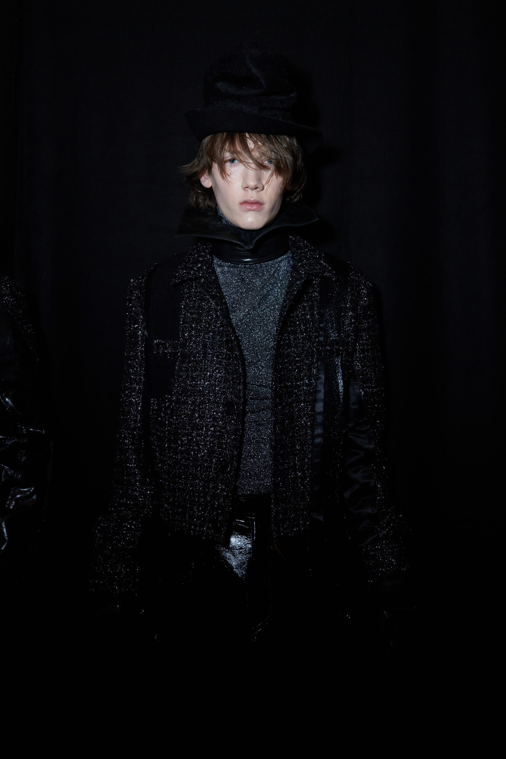 La présentation de la collection s’est accompagnée d’une performance sonore radicale, orchestrée par Joon Kwak, Max Frimout et Binkbeats, mêlant synthétiseurs modulaires et percussions en métal industriel. Cette bande-son immersive accentue le contraste entre structure et chaos, en écho à l’esthétique de la collection.