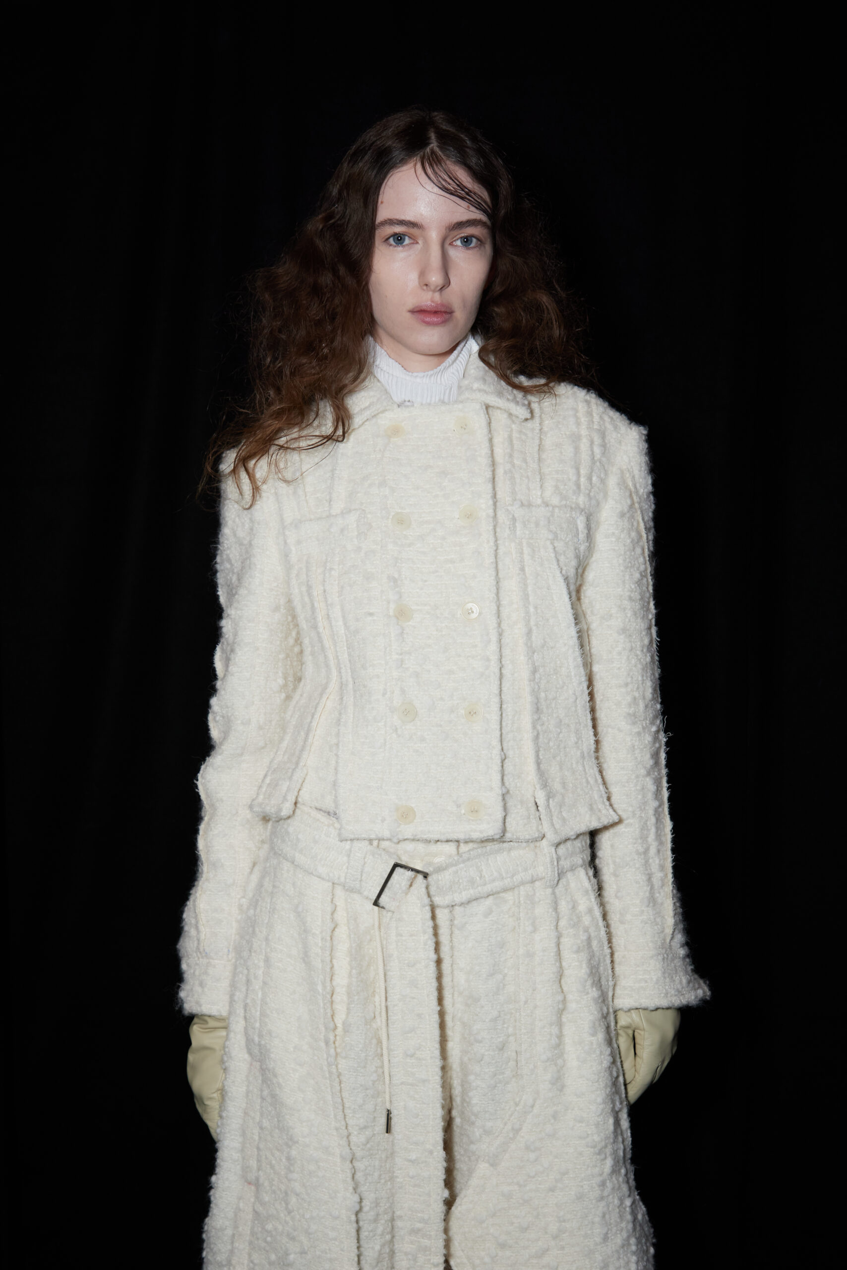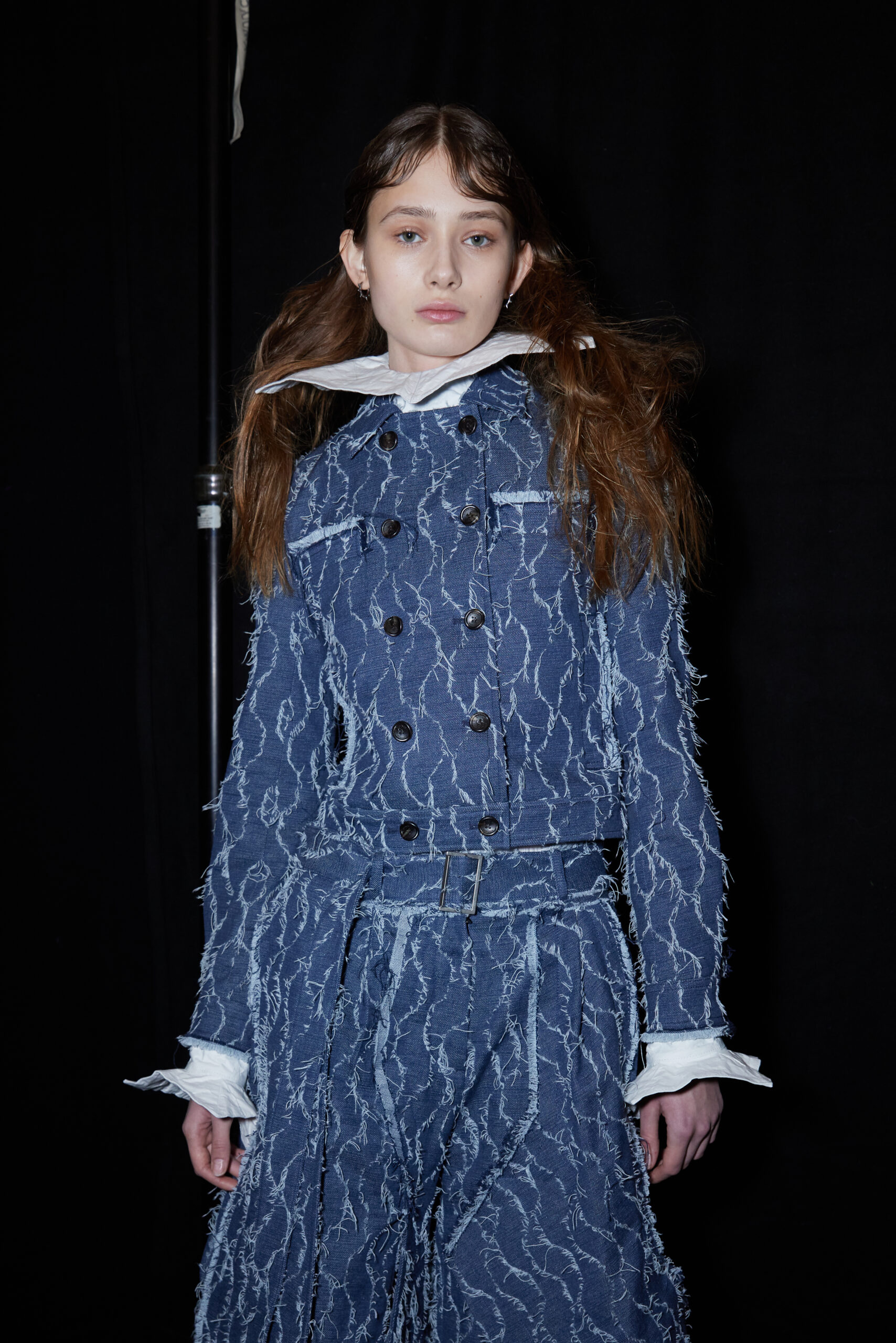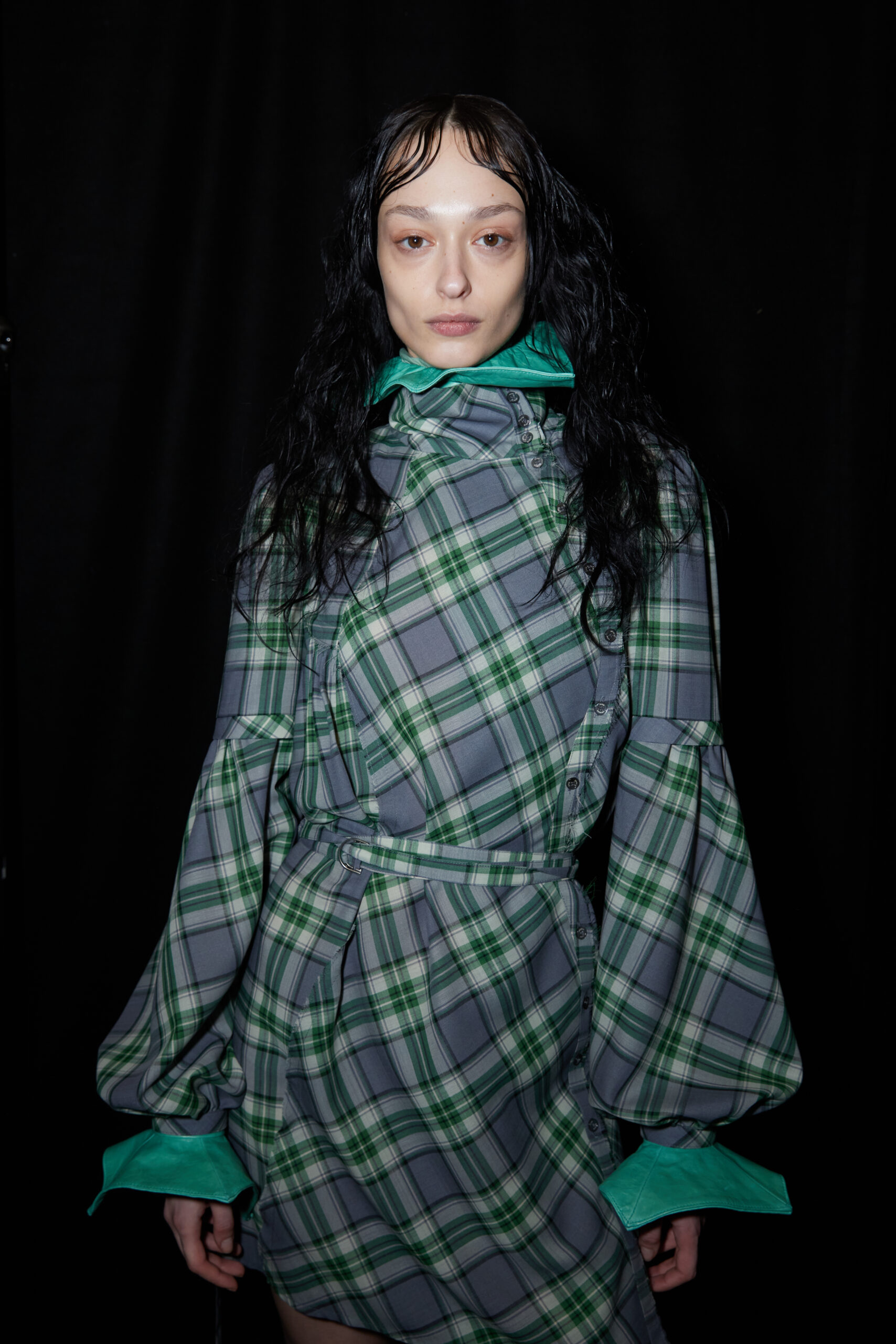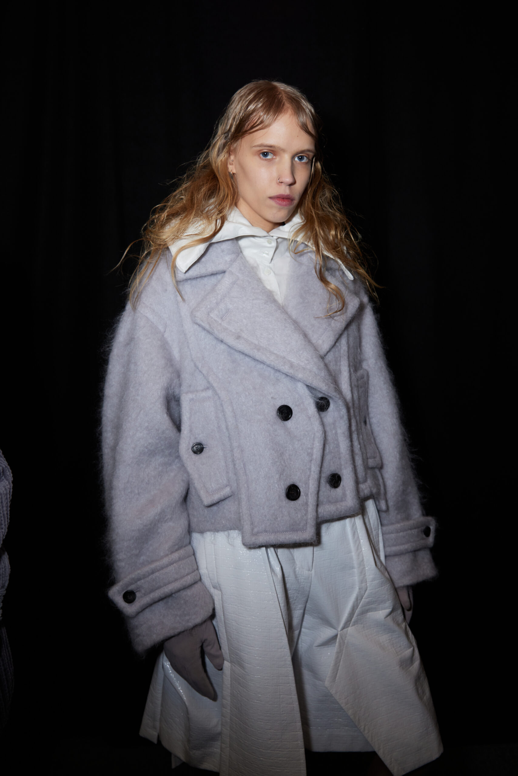 La présentation de la collection s’est accompagnée d’une performance sonore radicale, orchestrée par Joon Kwak, Max Frimout et Binkbeats, mêlant synthétiseurs modulaires et percussions en métal industriel. Cette bande-son immersive accentue le contraste entre structure et chaos, en écho à l’esthétique de la collection.