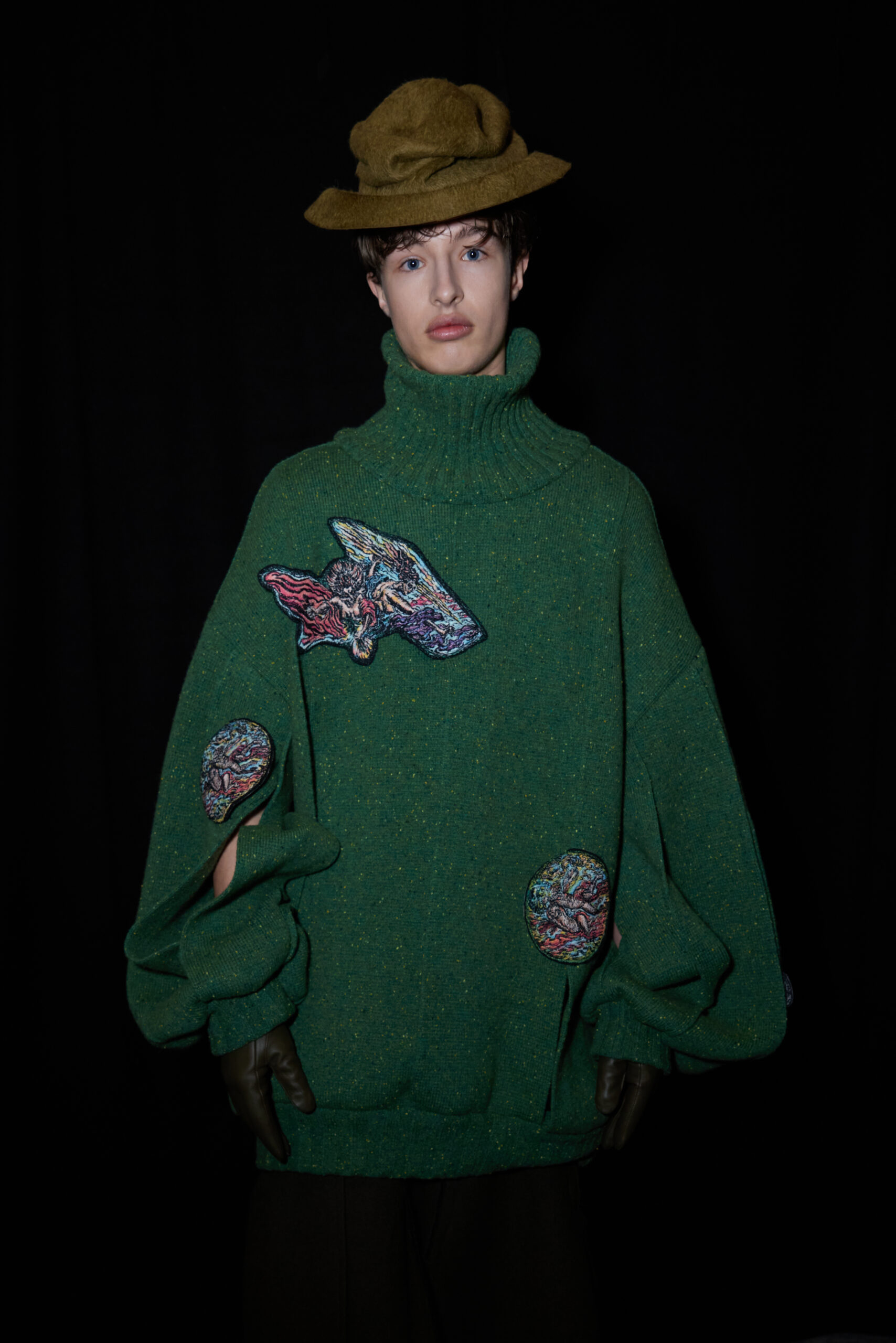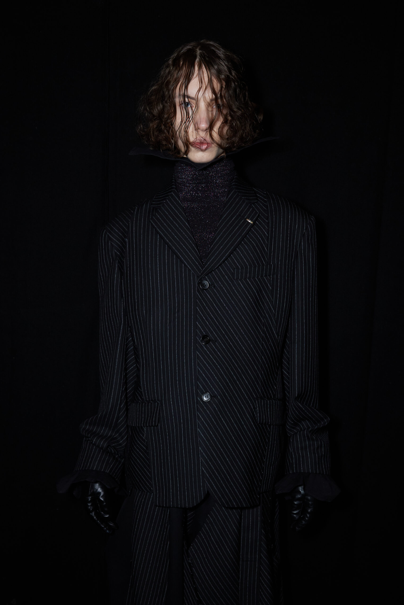 Le Piccadill, à l’origine représentation de luxe et de privilège, est transformé en une icône rebelle, évoquant la complexité psychologique et émotionnelle de celui qui le porte. Les silhouettes dramatiques, les superpositions riches et les coupes asymétriques soulignent cette dualité entre opulence maîtrisée et liberté brute.