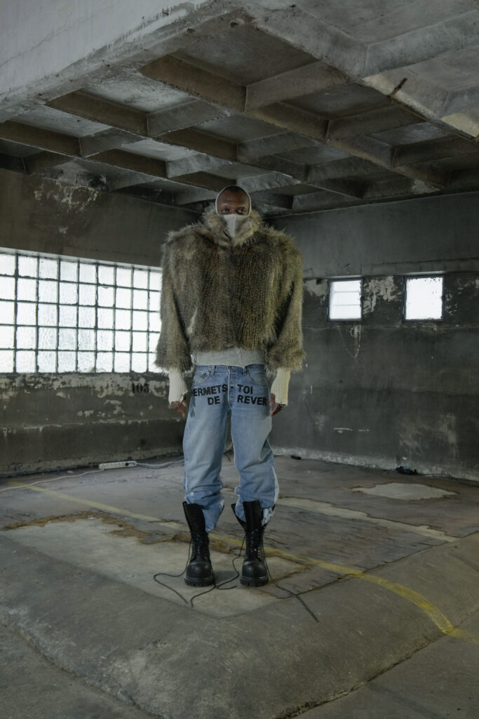 La collection s’accompagne d’une mixtape à paraître, dont certains morceaux ont été dévoilés lors d’une session d’écoute privée. Dans un décor évoquant des inspirations militaires, les mannequins étaient alignés sur une jeep d’époque, ajoutant une puissance visuelle brute et théâtrale.