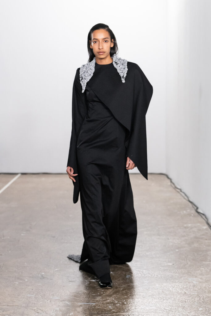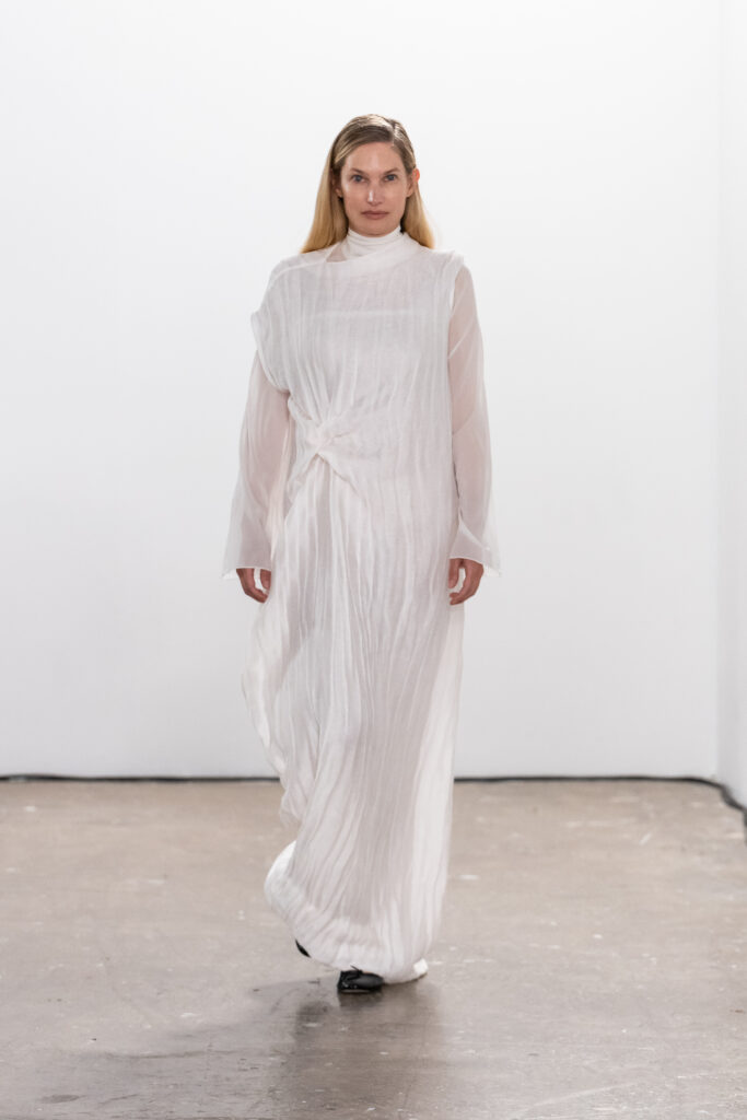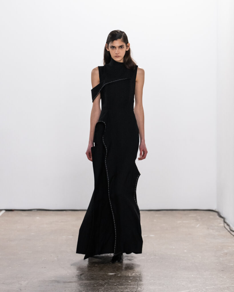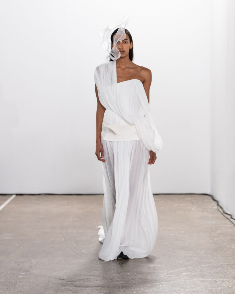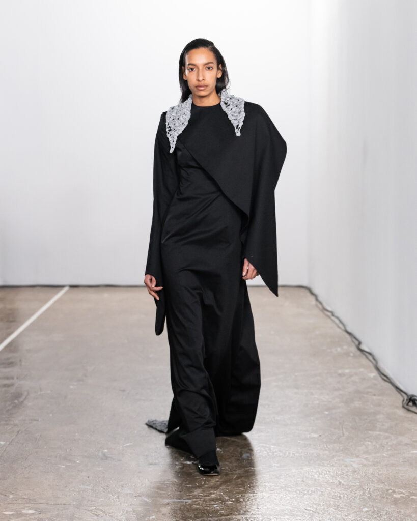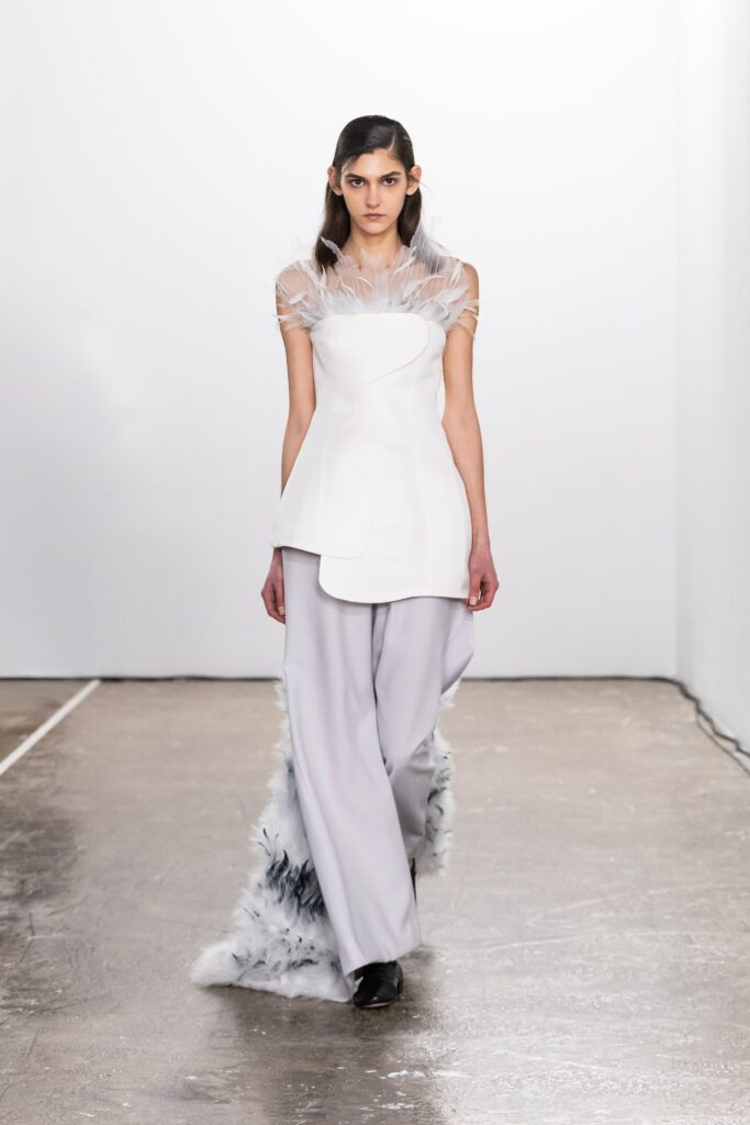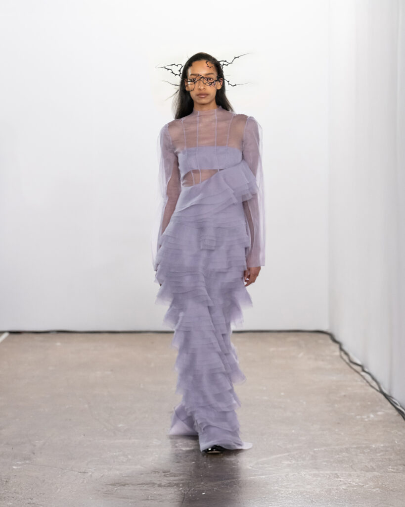 Des lignes structurées rencontrent des drapés romantiques, des textures superposées côtoient des coupes asymétriques, et des détails cachés révèlent une beauté faite d’imperfections. Ce dialogue stylistique illustre les tensions entre la vulnérabilité et la force, le romantisme et la résistance. « Cette collection célèbre les espaces de transition, là où la croissance prend racine », explique le créateur.