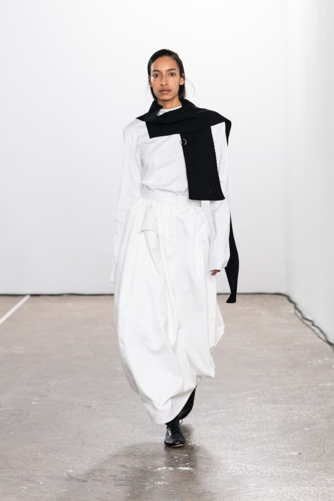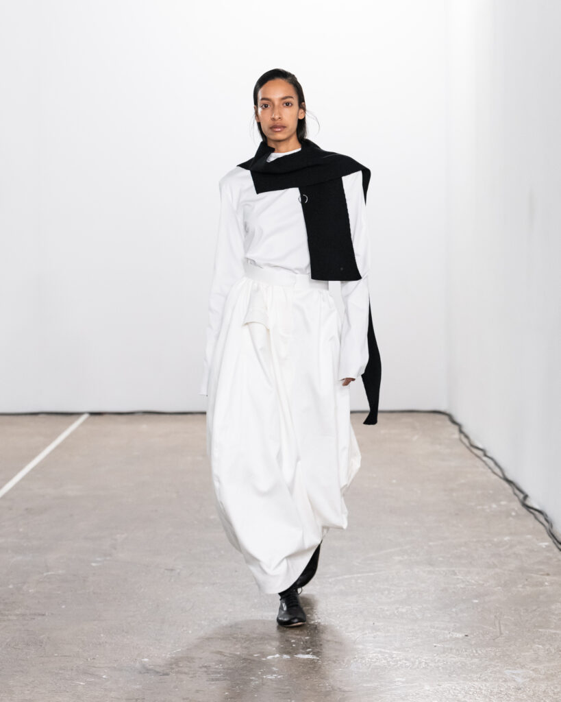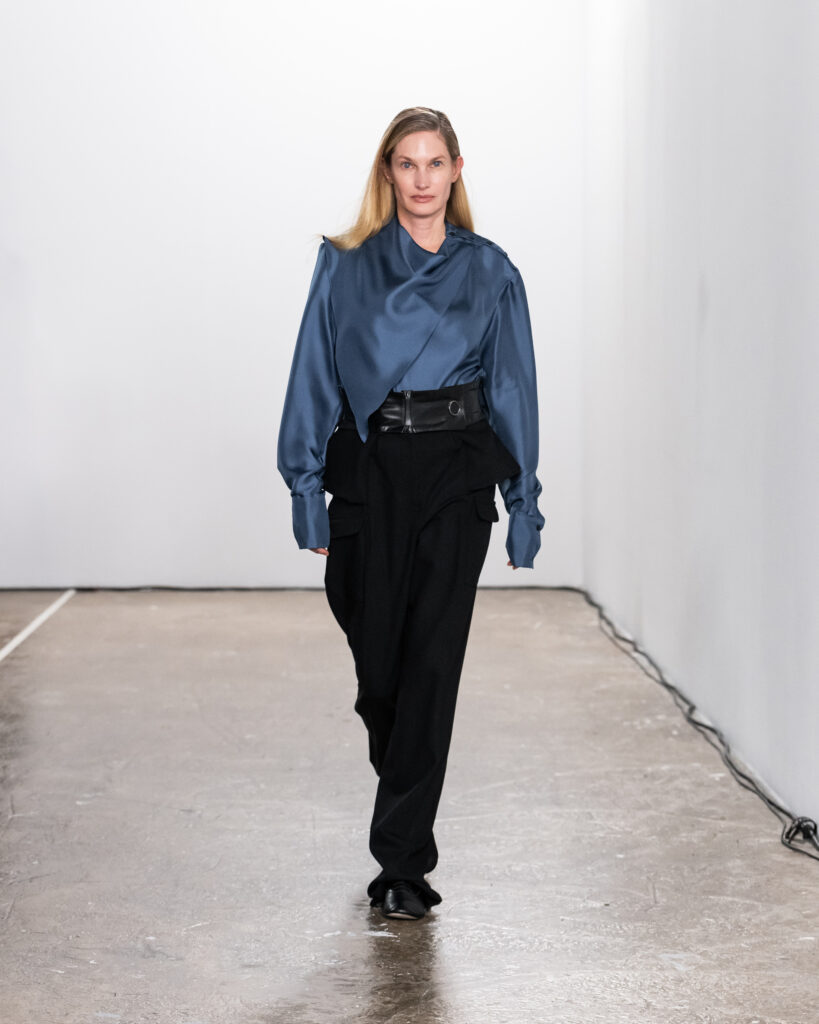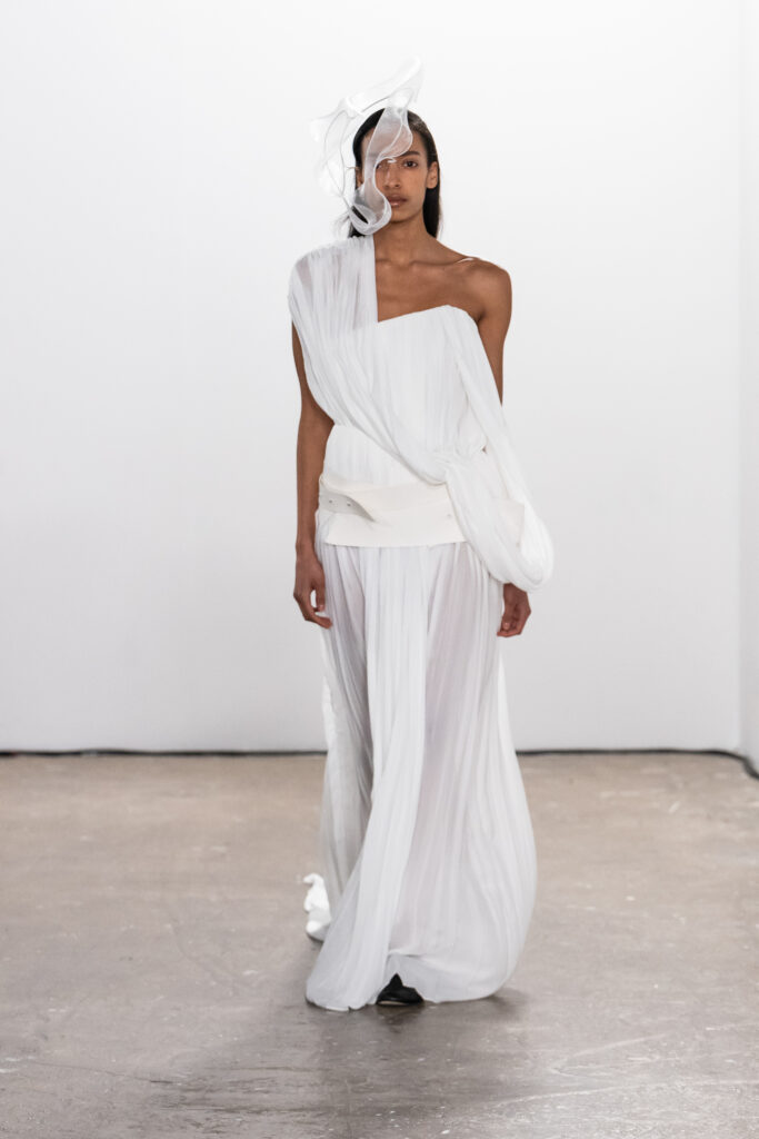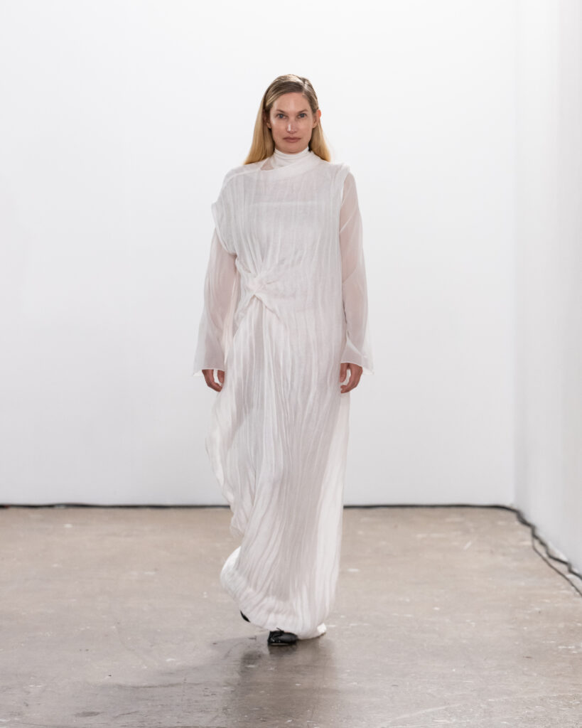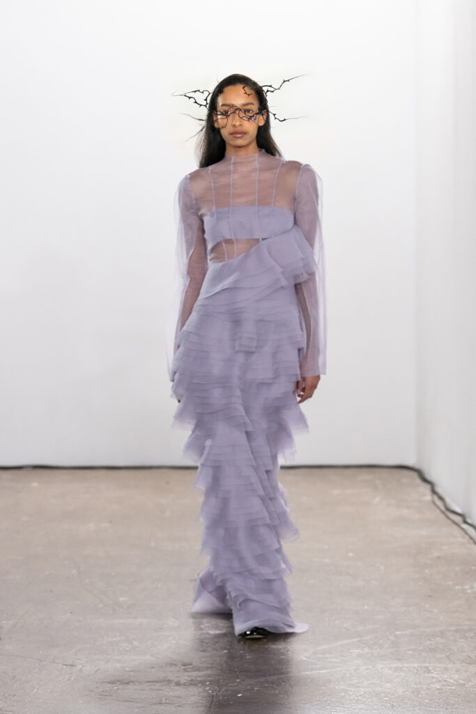 Des lignes structurées rencontrent des drapés romantiques, des textures superposées côtoient des coupes asymétriques, et des détails cachés révèlent une beauté faite d’imperfections. Ce dialogue stylistique illustre les tensions entre la vulnérabilité et la force, le romantisme et la résistance. « Cette collection célèbre les espaces de transition, là où la croissance prend racine », explique le créateur.
