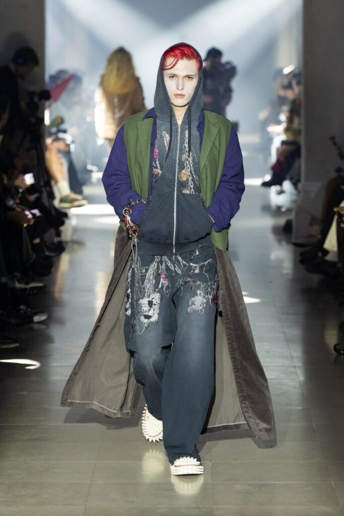 La collection Automne-Hiver 2025-26 de Doublet, baptisée « Villain », s’inscrit dans une réflexion fascinante sur la beauté des imperfections et leur potentiel pour redéfinir les normes. Cette vision, à la fois esthétique et philosophique, trouve son origine dans un simple constat : une feuille de plastique pliée révèle des fissures, jugées comme des « défauts » dans les standards industriels. Pourtant, ces défauts deviennent ici le cœur d’une innovation.