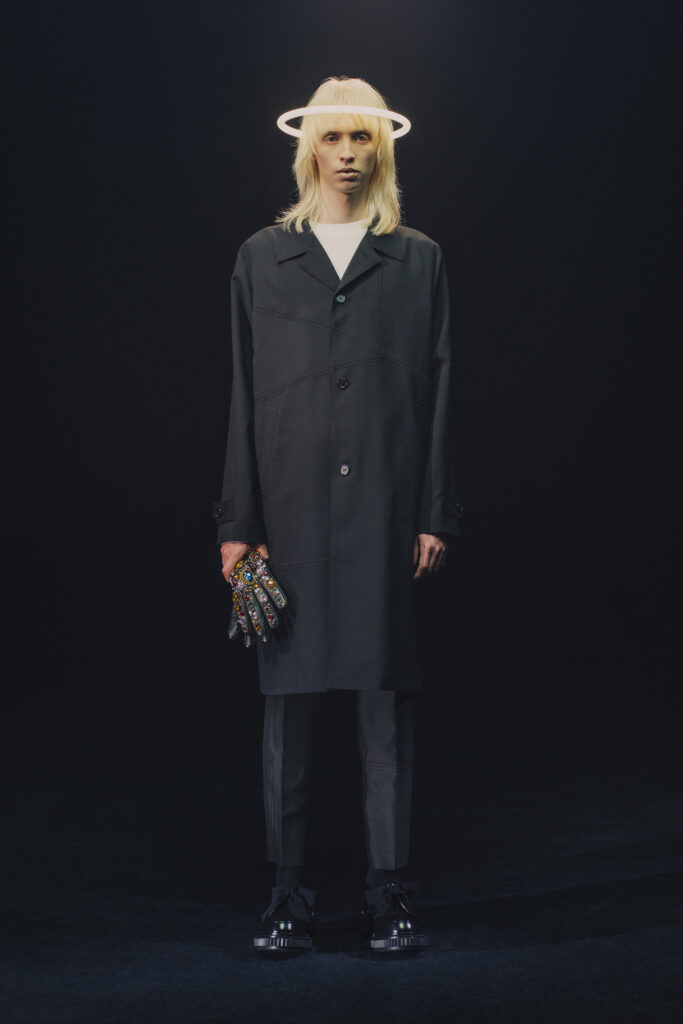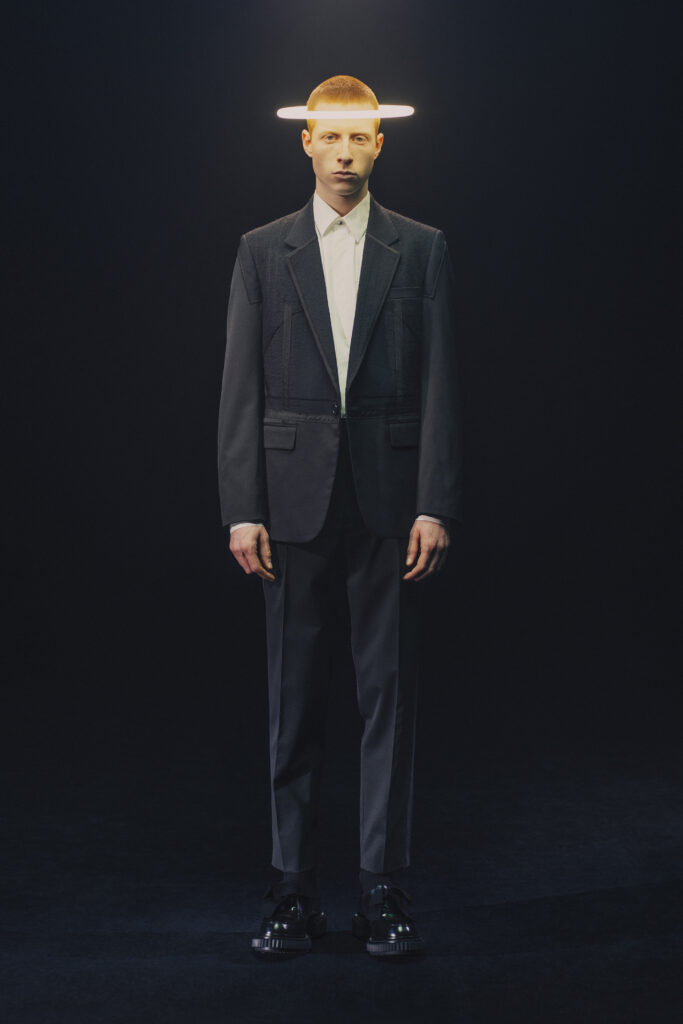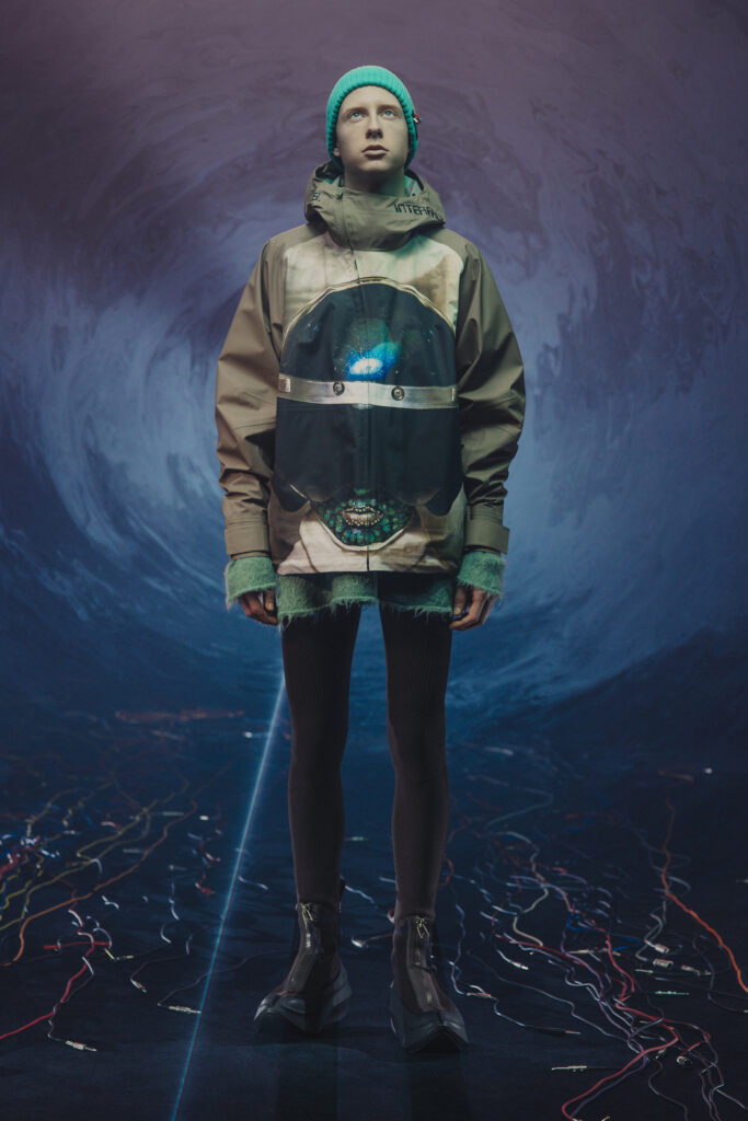 La mise en scène, intitulée « Interface », explore les dialogues entre passé et futur, humain et machine, art et technologie. Chaque look est une ode à la dualité, entre précision contemporaine et esprit rebelle.
