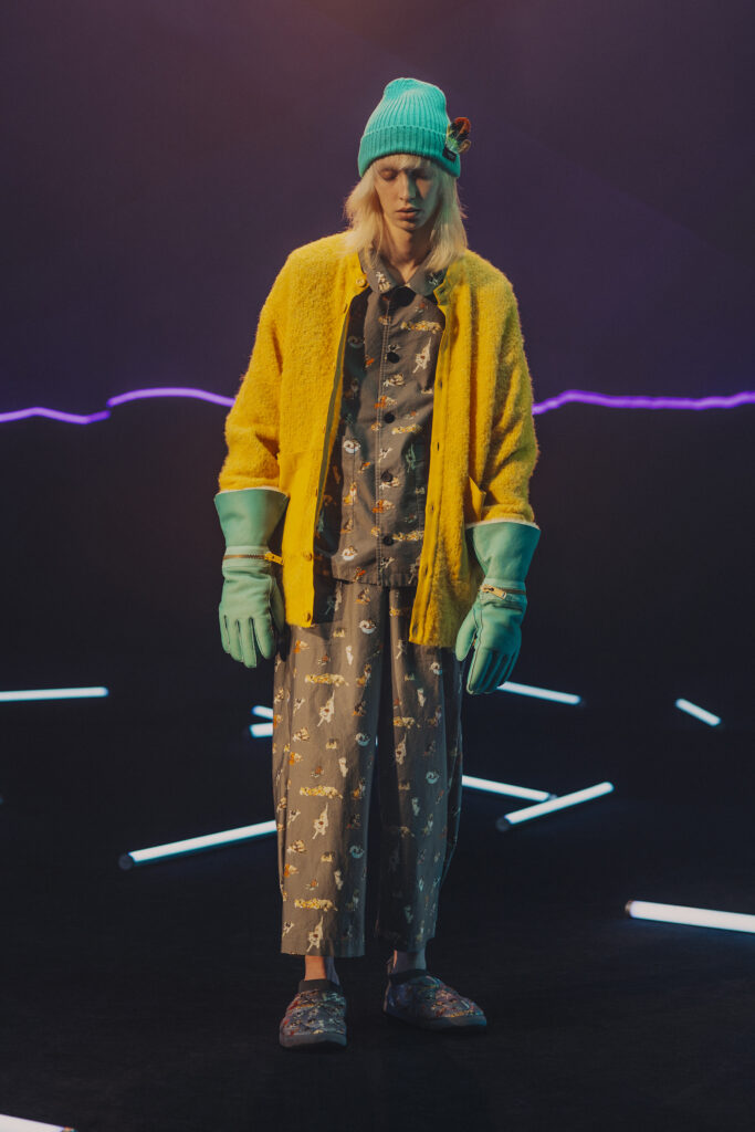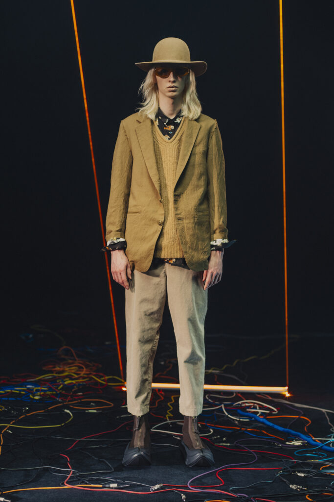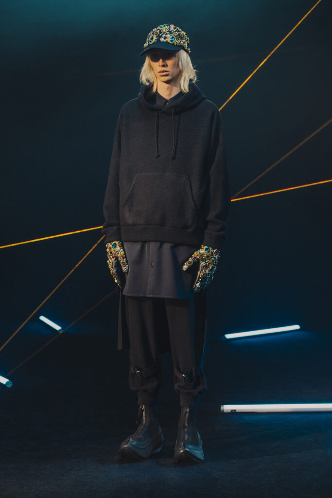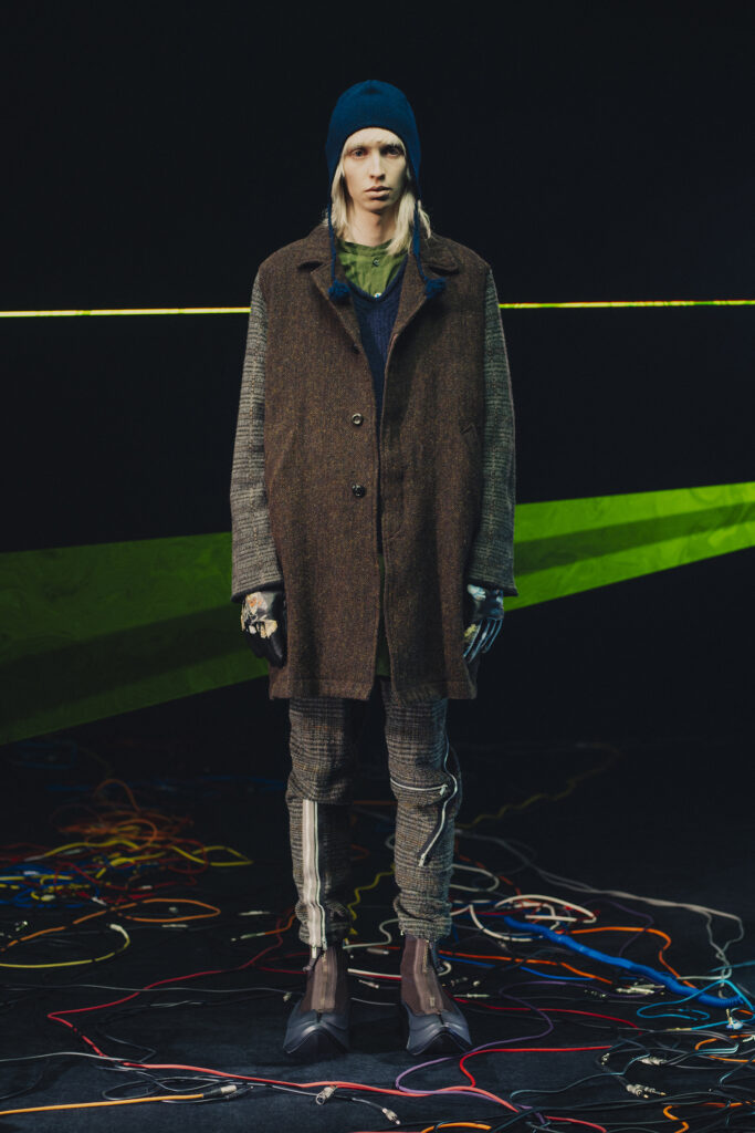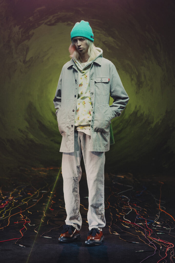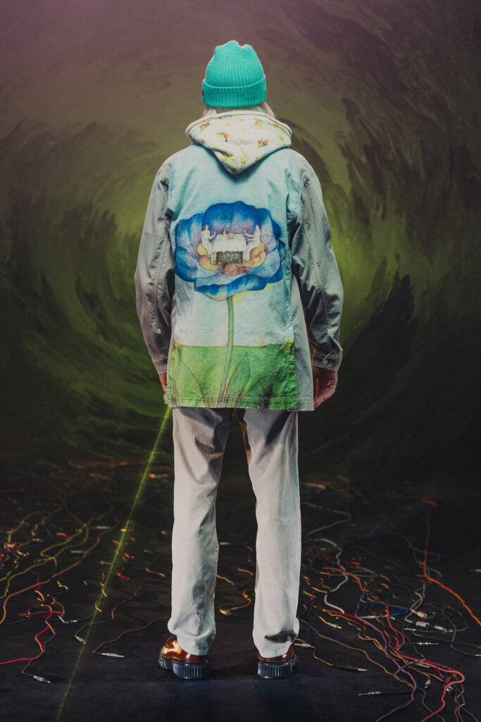 Jun Takahashi, le visionnaire derrière UNDERCOVER, propose une collection Automne-Hiver 2025-2026 qui s’ancre dans un univers mêlant nostalgie musicale et avant-garde futuriste. Inspirée par des groupes emblématiques du rock électronique expérimental des années 1970 et 1980 tels que Faust, Heldon, ou Conrad Schnitzler, cette collection fait revivre une période où la décadence punk se métamorphosait en nouvelle vague.